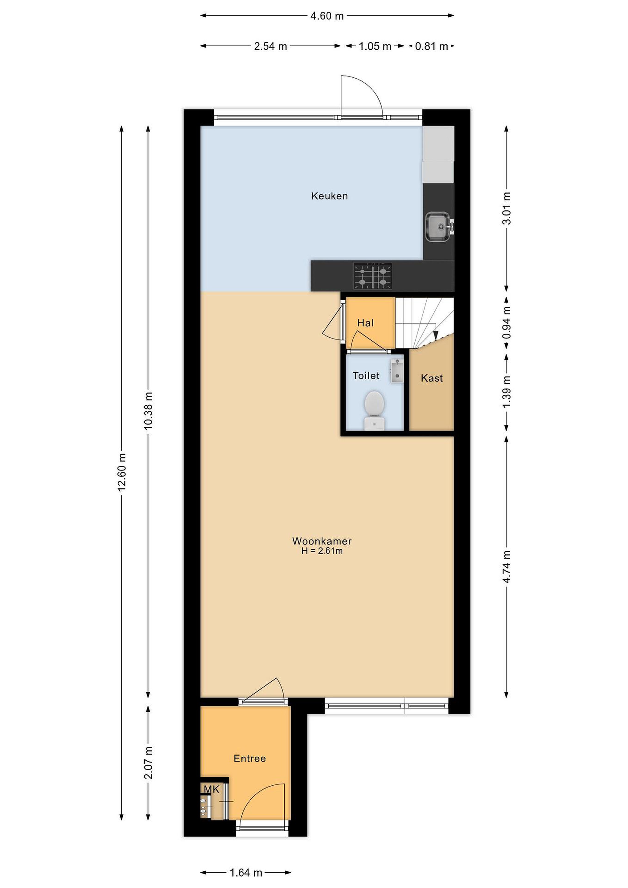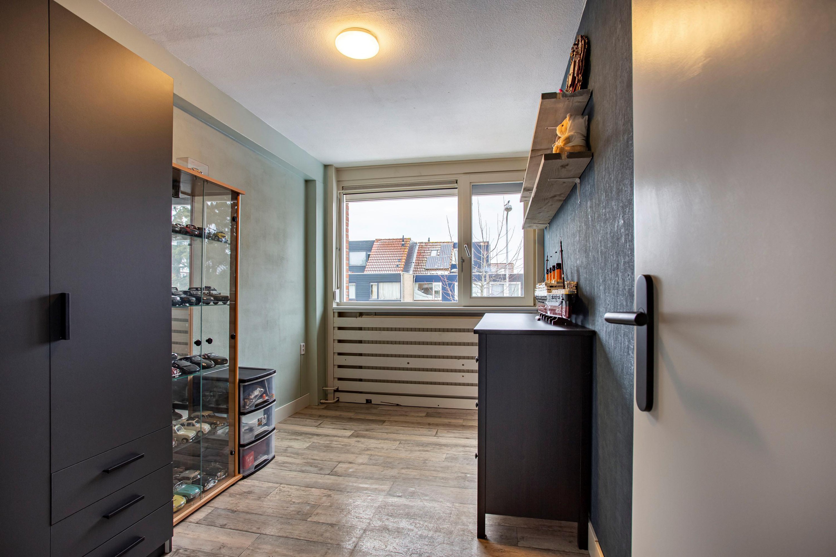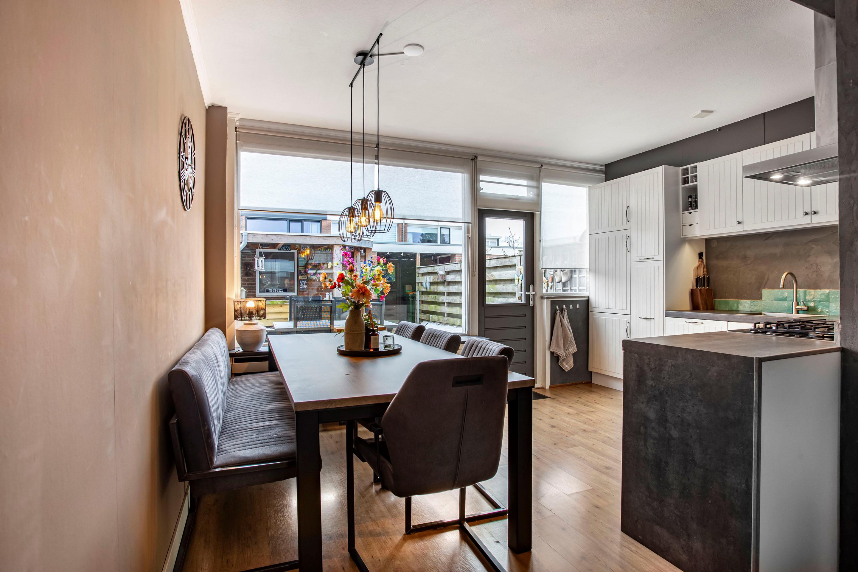 In de entree bevinden zich de meterkast en toegang tot de gezellige woonkamer. Deze ruimte heeft een knusse uitstraling, ideaal voor wie houdt van een behaaglijke, besloten sfeer in huis. Via de woonkamer bereik je de praktische trapkast en de ruim opgezette keuken in lichte kleurstelling. De keuken is voorzien van volop kastruimte en diverse inbouwapparatuur, waaronder een nieuwe koelkast (2025), vriezer, vaatwasser (2019), gaskookplaat, oven en afzuigkap.