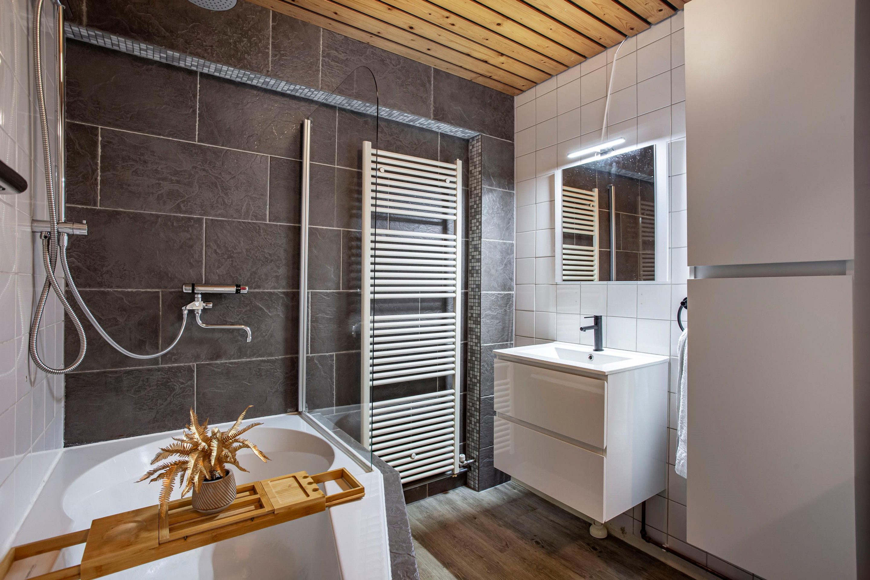 Op de eerste verdieping vind je drie zeer verzorgde slaapkamers, waarvan de ouderslaapkamer een speciale voorzetwand verkreeg waarbij alle elektra-aansluitingen keurig werden weggewerkt en een tweede slaapkamer recent compleet opnieuw is afgewerkt. Tevens is er een mooie badkamer, uitgerust met een ligbad met douchegelegenheid, een vernieuwd wastafelmeubel en ruimte voor wasmachine en droger. Ook hier zijn de aan- en afvoer van water vernieuwd. Extra fijn is de ruime inloopkast op deze verdieping. Voor comfort en privacy zijn alle ramen op de eerste verdieping voorzien van rolluiken.