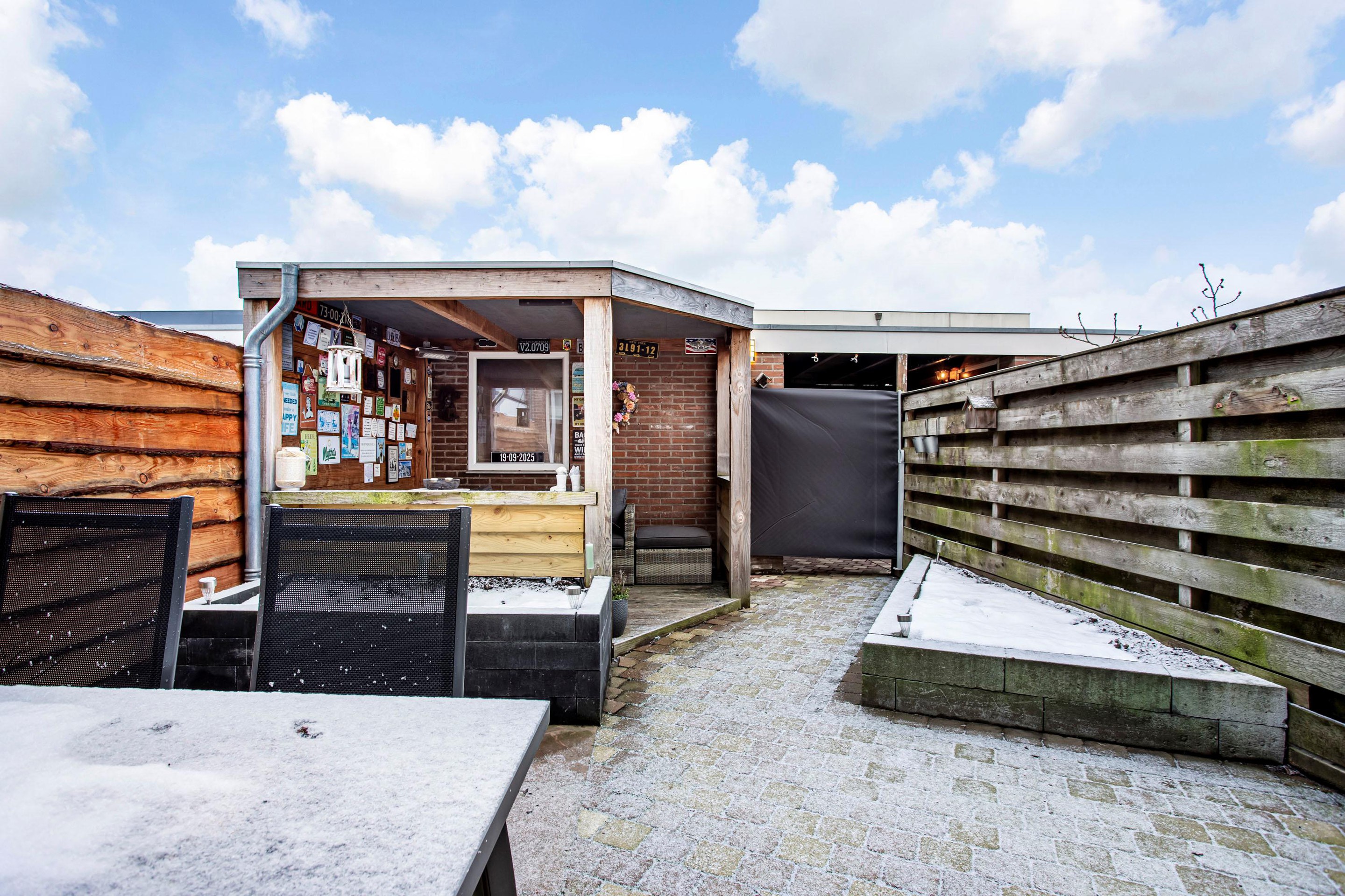 De achtertuin is recent deels opnieuw aangelegd en biedt veel mogelijkheden om buiten te genieten. Er ligt nieuwe bestrating, er is een sfeervolle border aangelegd en achterin staat een ruime, nieuwe veranda: een heerlijke plek om het hele jaar door te ontspannen. De stenen berging biedt praktische opbergruimte, waarbij de elektra van zowel de berging als de veranda onlangs volledig is vernieuwd.