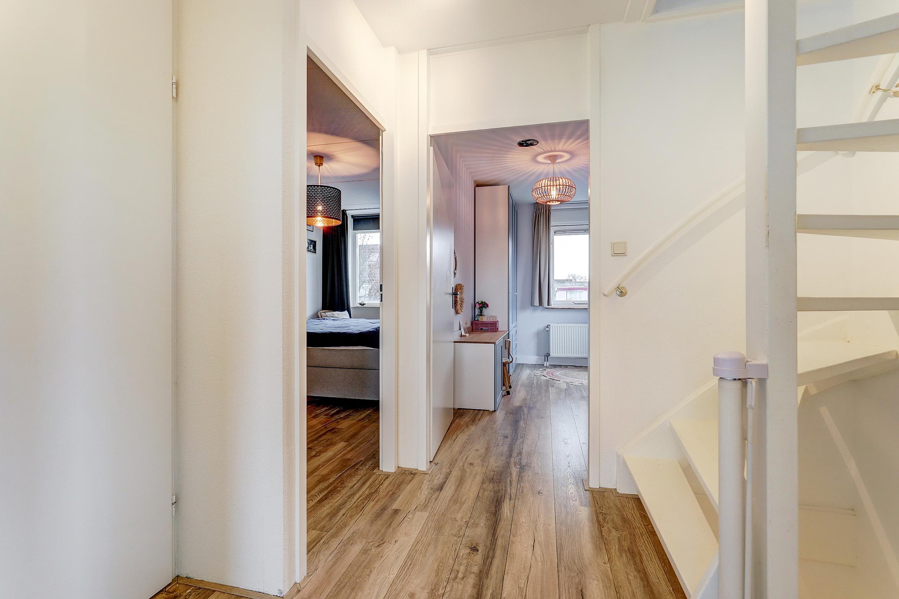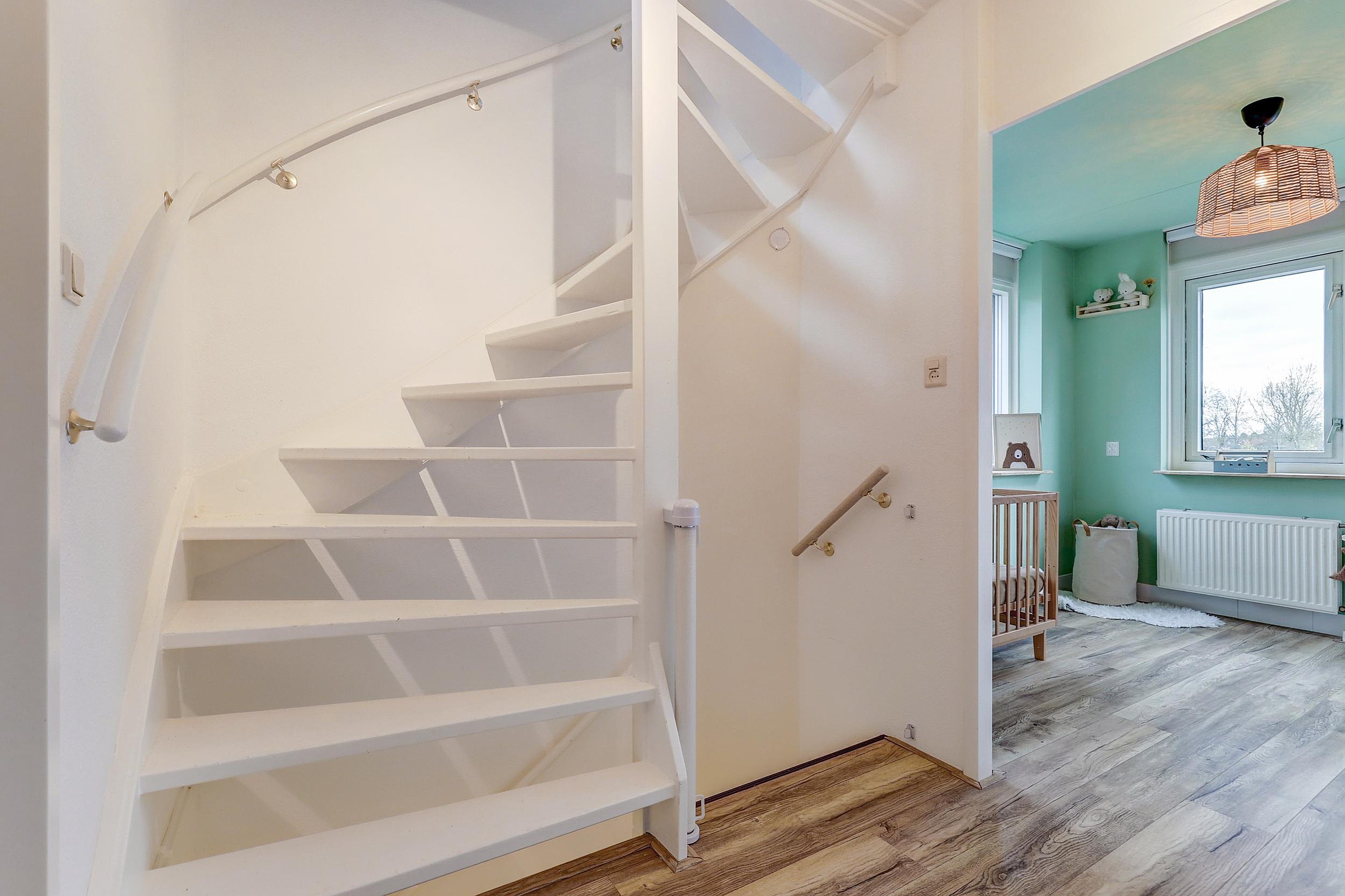 Via een tussenhal in de woonkamer bereik je de trapopgang naar boven.