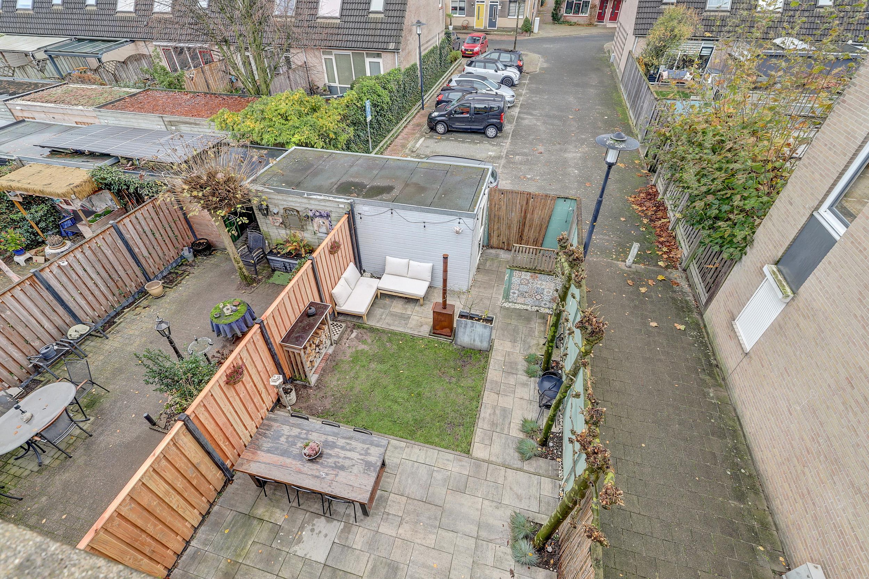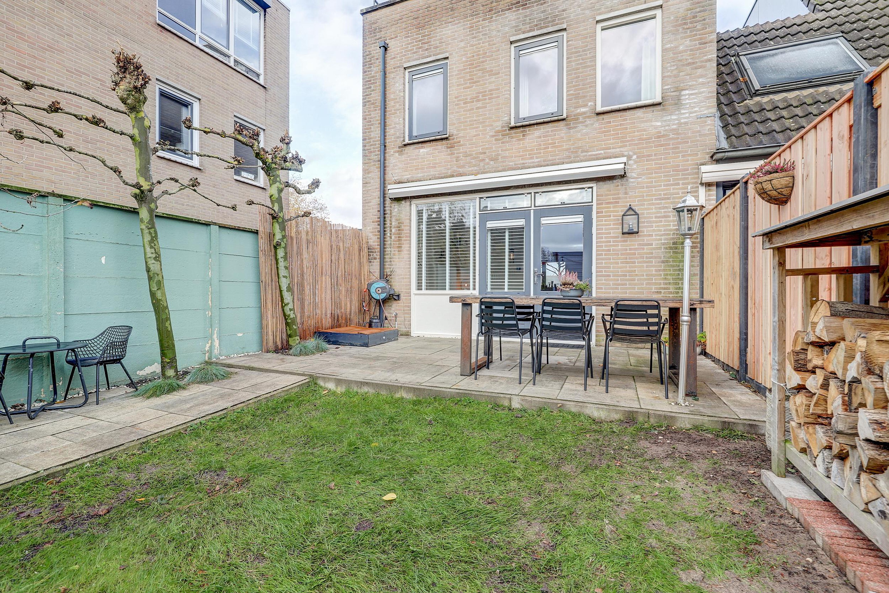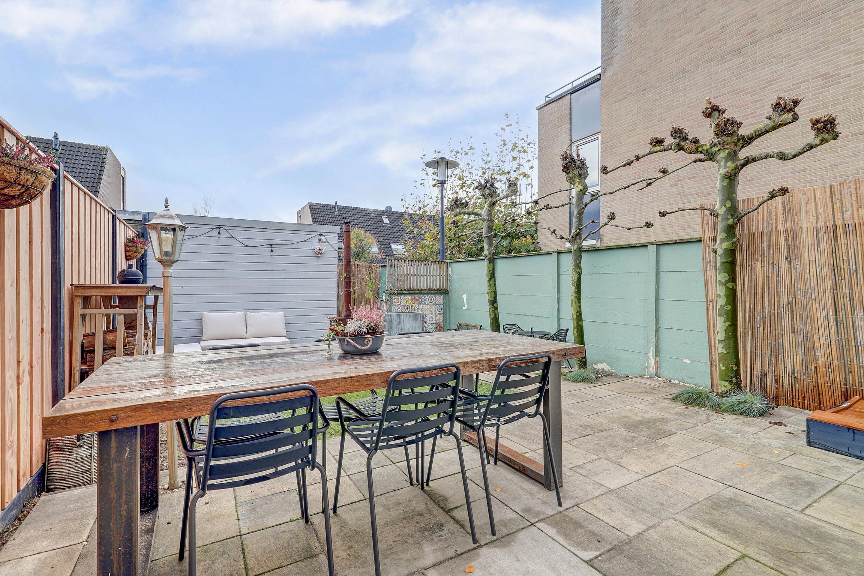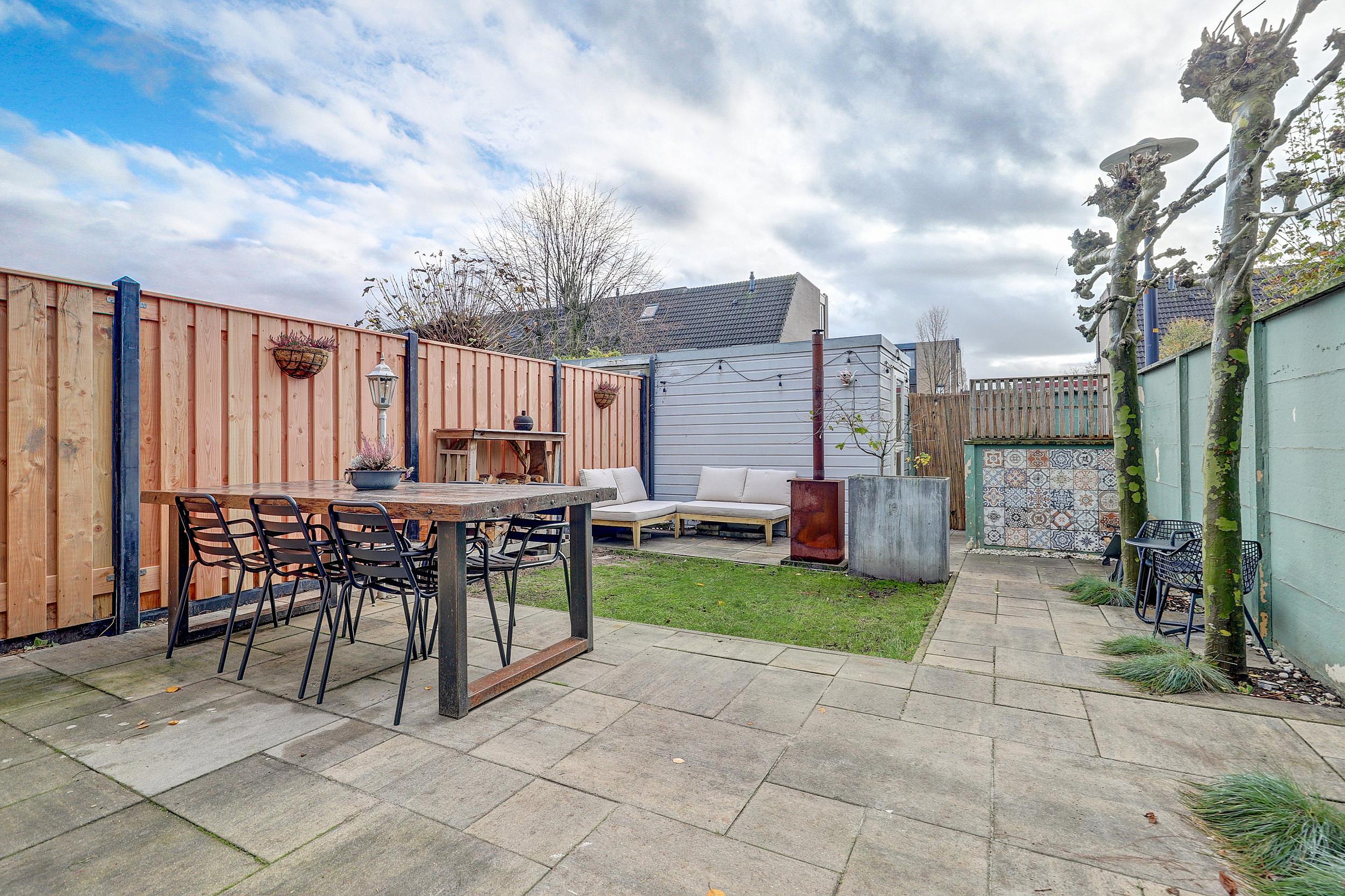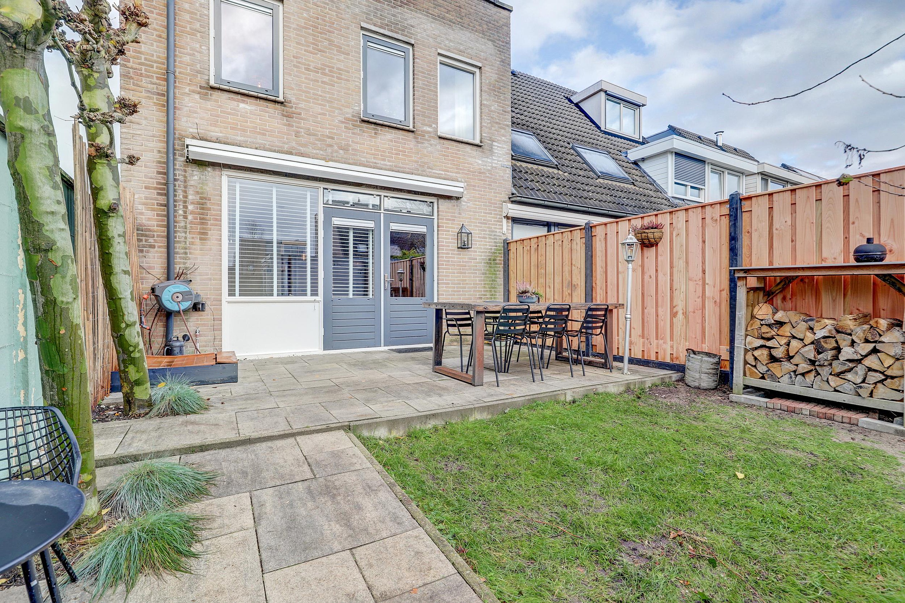 De verzorgde achtertuin (ca. 5,4 meter breed en ca. 10 meter diep) ligt op het zuidoosten en biedt een fijne plek om van de zon te genieten. De tuin is keurig aangelegd en beschikt over een houten berging en een achterom. Recent is er samen met de buren een nieuwe schutting geplaatst.