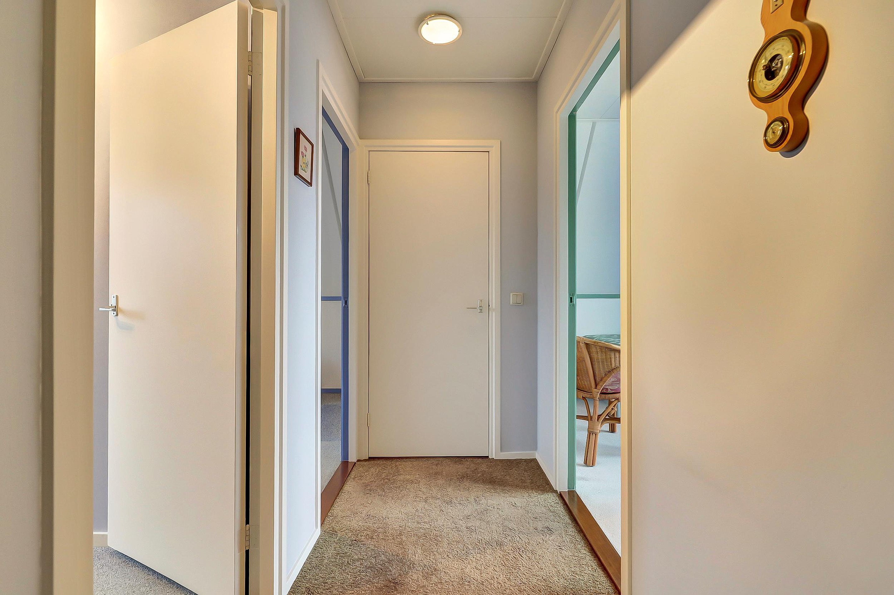 Overloop met toegang tot drie flinke slaapkamers, een inloopkast en een vliering die bereikbaar is middels een vlizotrap. De ouderslaapkamer is gelegen aan de voorzijde van de woning en is circa 15 m2 groot.