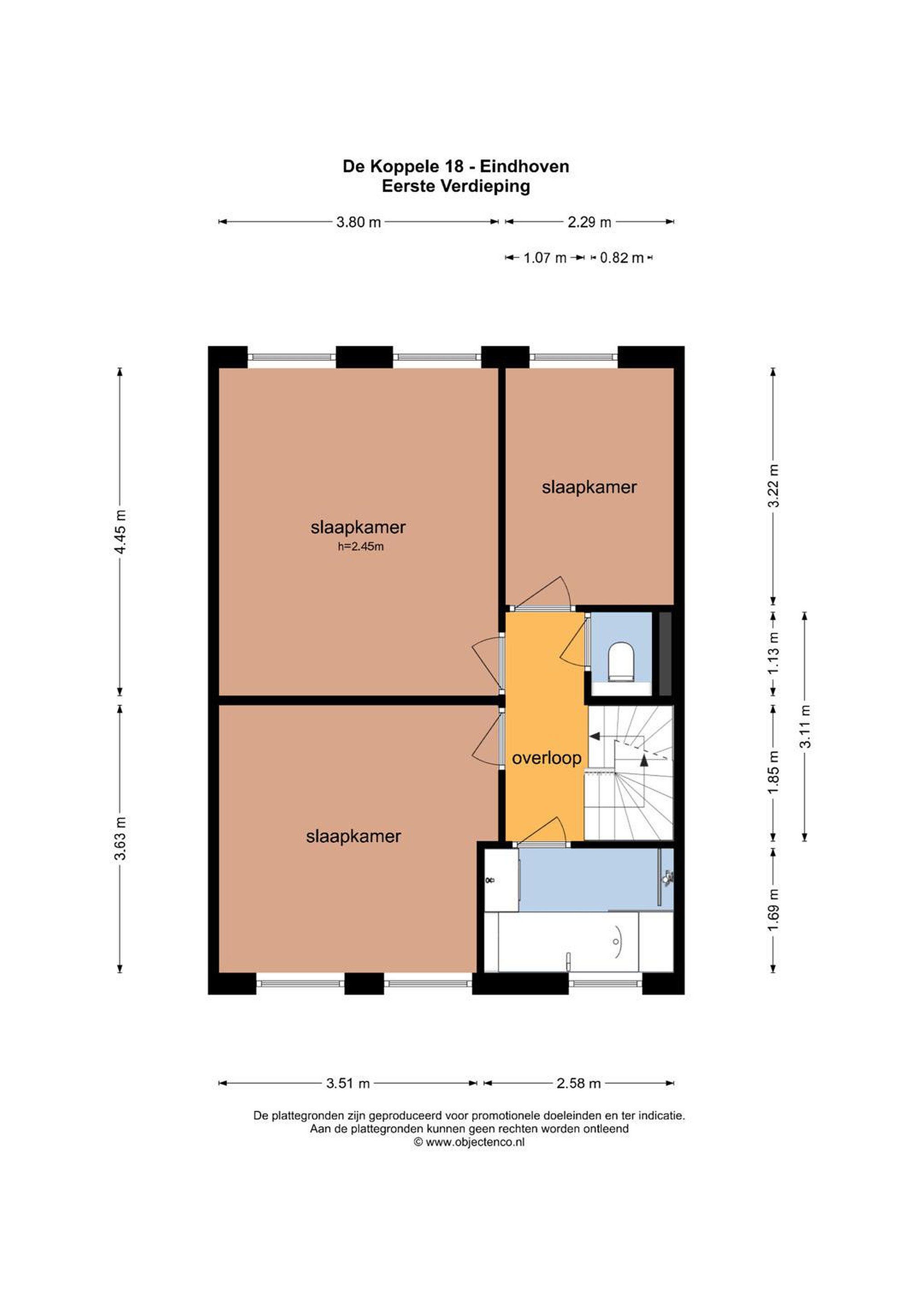 Eerste verdieping De overloop biedt toegang tot drie slaapkamers en de badkamer.