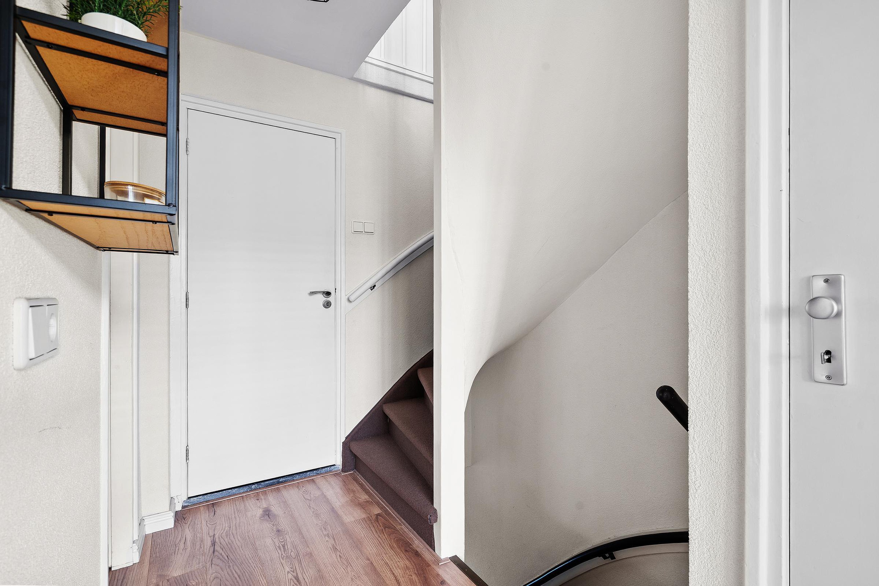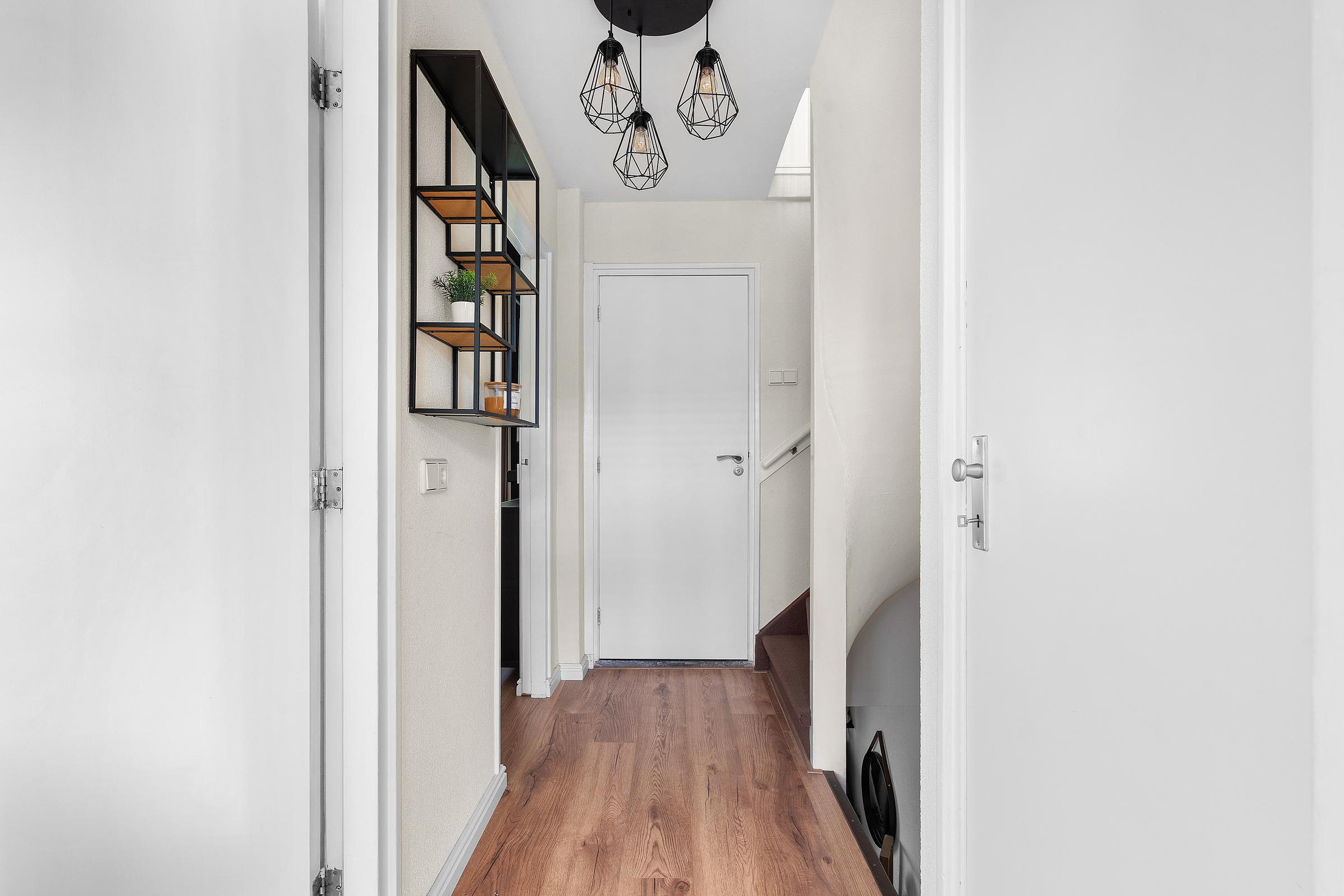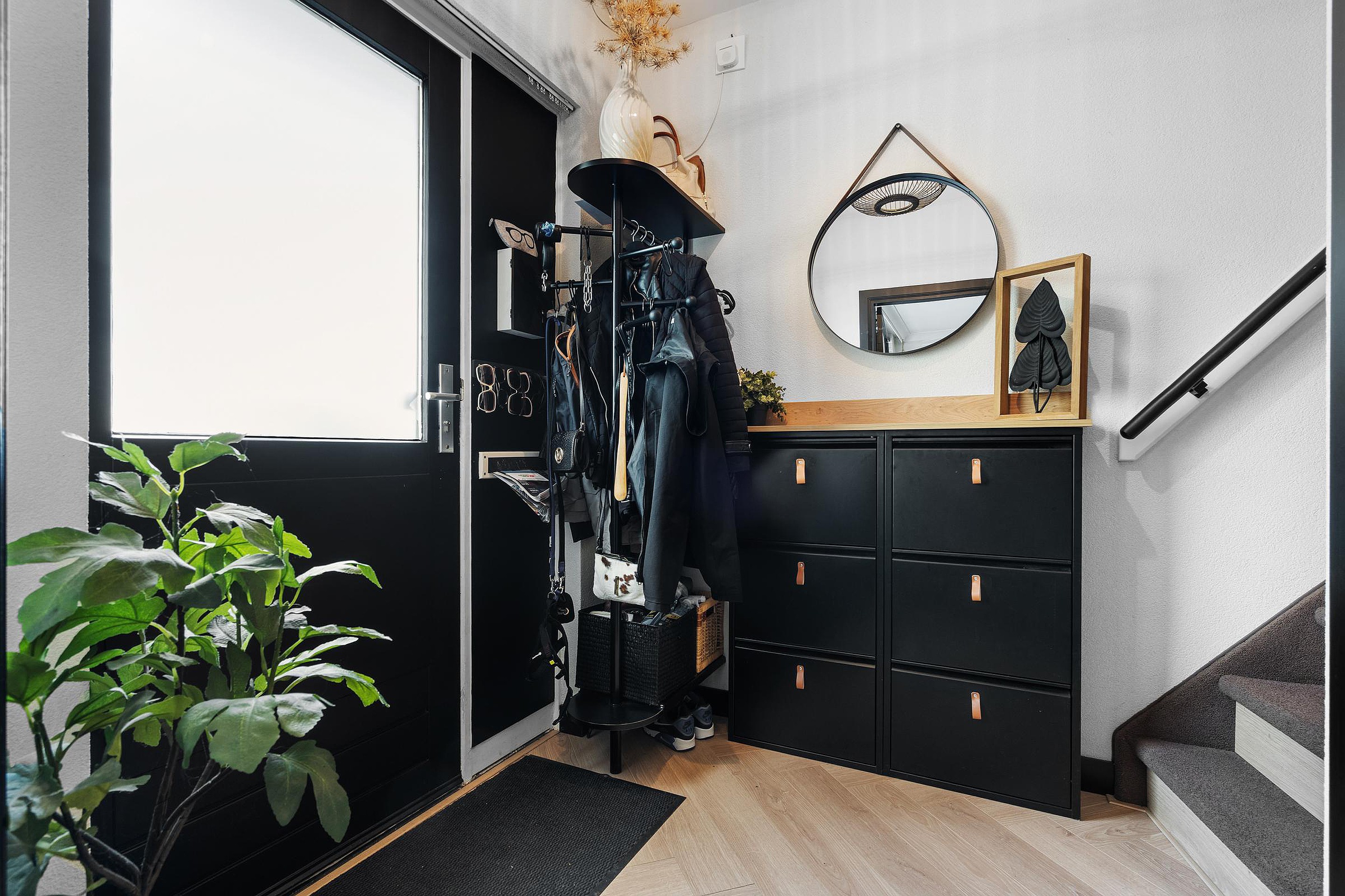 Hal met toegang tot het gastentoilet, de trapopgang naar de verdiepingen en toegang tot de woonkamer. De gehele begane grond is voorzien van vloerverwarming en een onderhoudsvrije visgraat laminaatvloer.