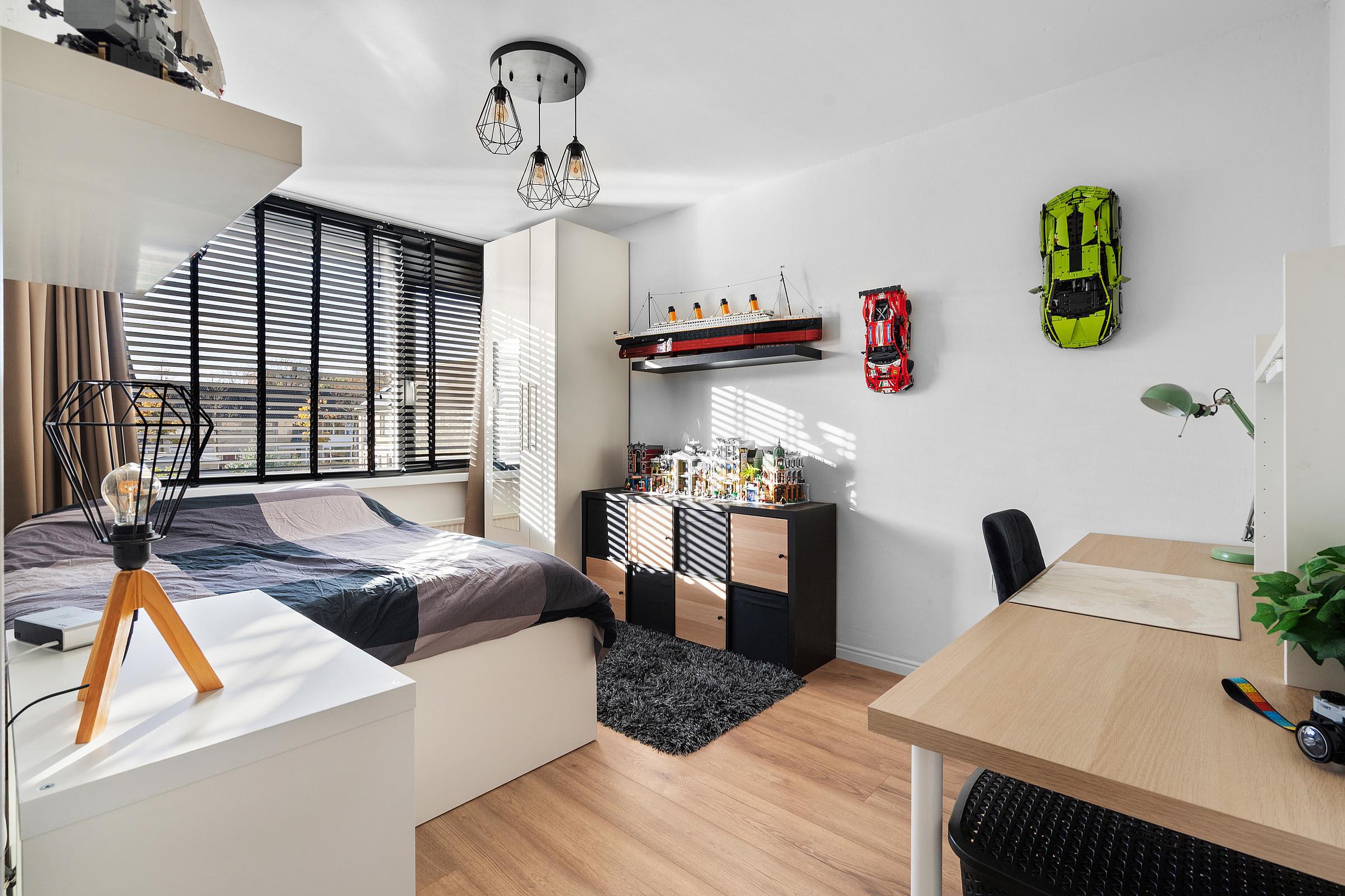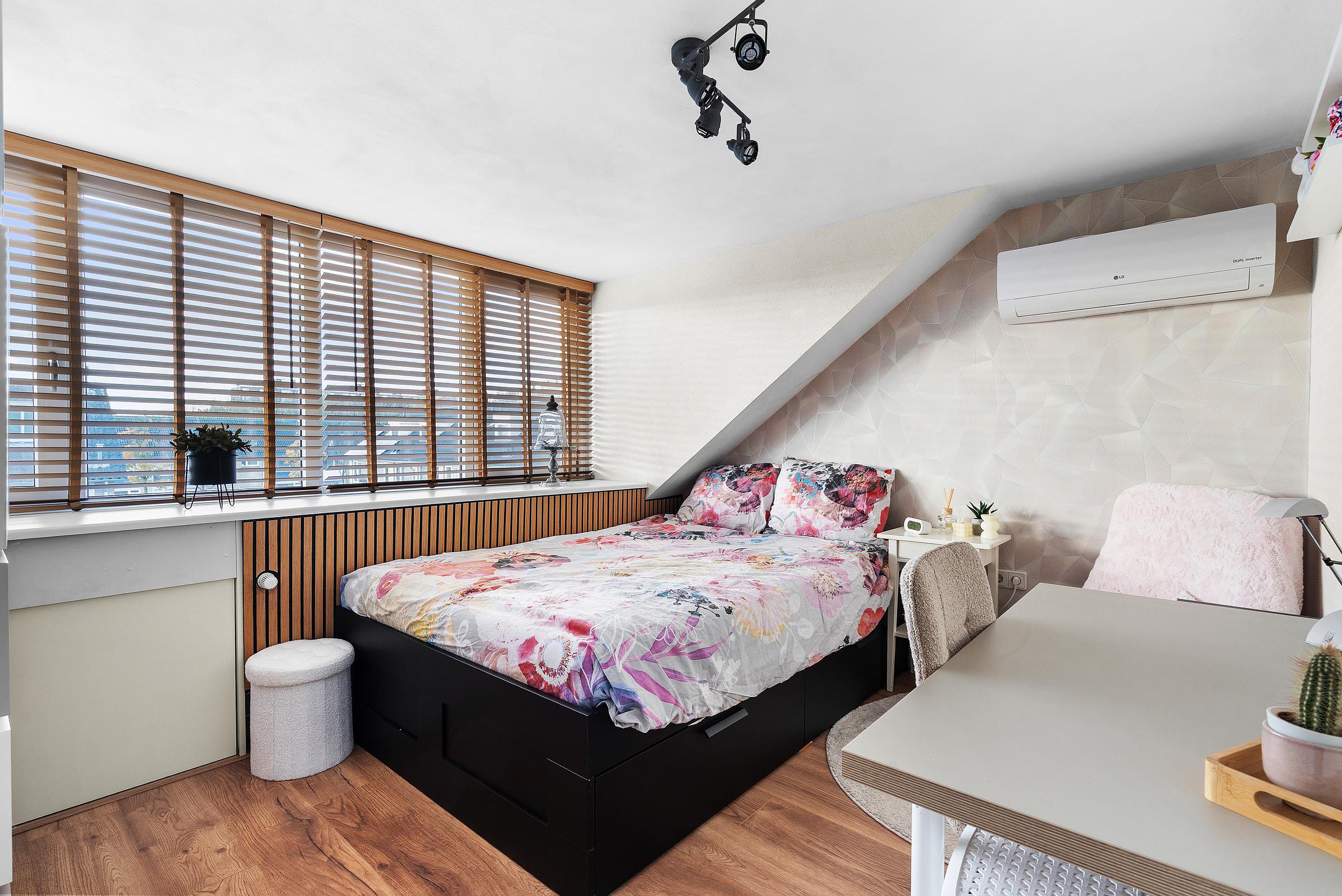 Via een vaste trap is de 2e verdieping bereikbaar. Hier is een comfortabele en perfect afgewerkte woonruimte gecreëerd met een zeer grote dakkapel aan de tuinzijde, verdeeld over de voorzolder en de 4e slaapkamer. Aan de andere zijde is een royaal Velux dakraam voor de 5e slaapkamer. De slaapkamer aan de tuinzijde beschikt ook over een airconditioner. De voorzolder beschikt over een fijne indeling met aansluitingen voor de wasmachine en wasdroger. Verder zijn op deze verdieping de CV-combi (2024), een gootsteen in meubel en de omvormer voor de zonnepanelen te vinden. Ook is er nog een bergzolder tot in de nok van het dak, bereikbaar via een luik. De schuine zijden van de zolder zijn afgewerkt met schuifdeursystemen voor extra bergruimte.