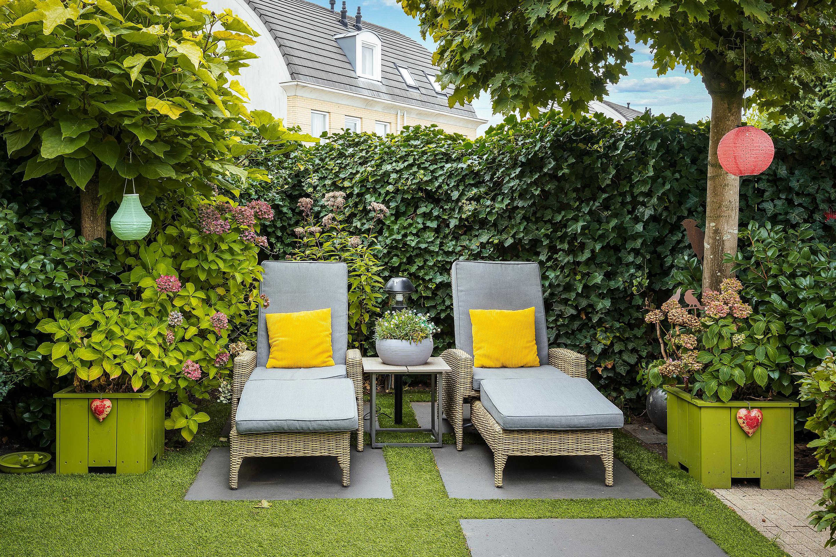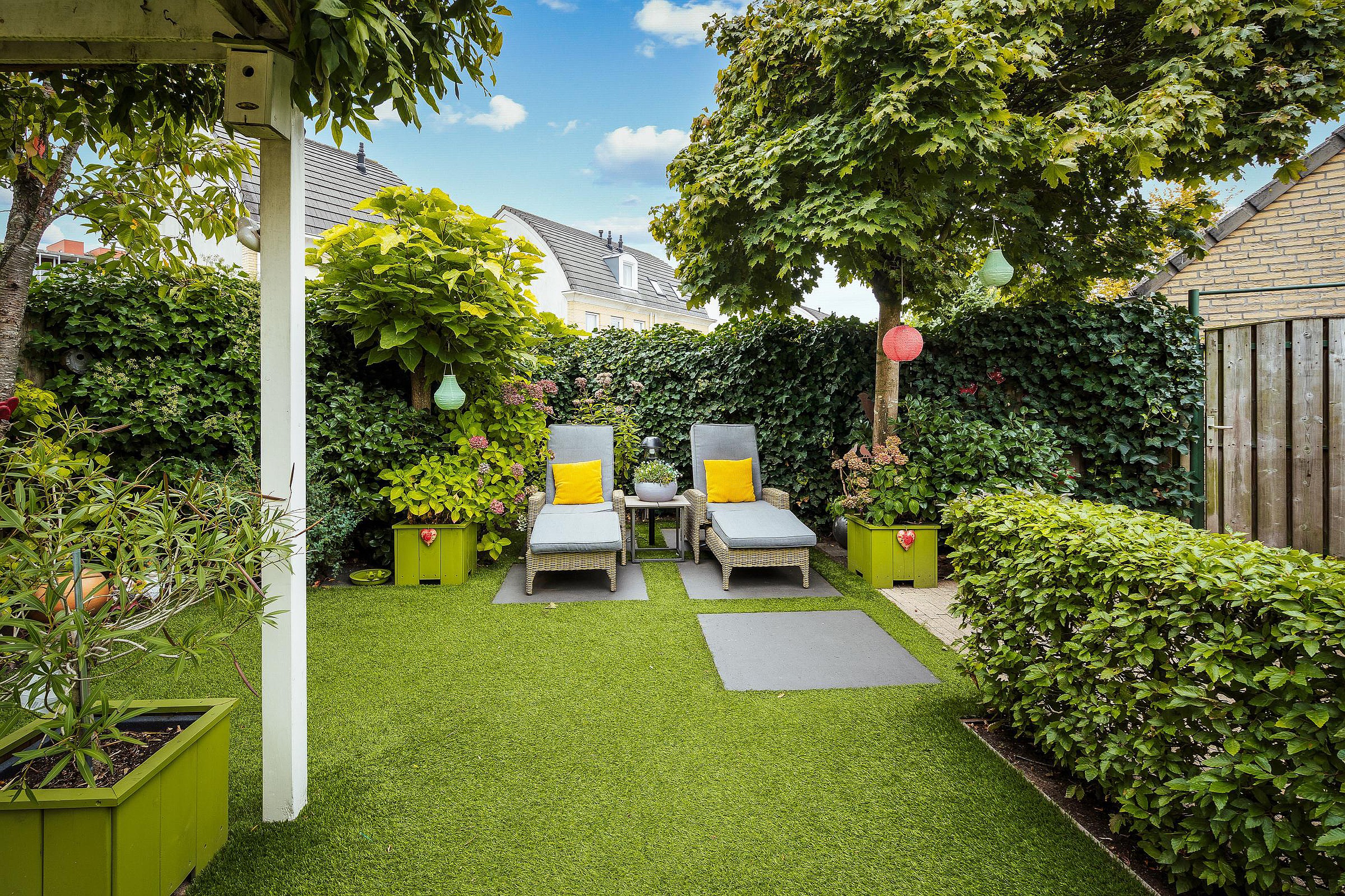 De fraai aangelegde tuin op het zuiden biedt volop privacy en is een heerlijke plek om te ontspannen. Hier geniet je van de zon van ’s ochtends vroeg tot in de avond. In de tuin is ook een houten tuinhuis te vinden, die momenteel in gebruik is als opslag van tuinattributen en -gereedschap. De tuin heeft een achteruitgang. De oprit aan de voorzijde biedt parkeergelegenheid op eigen terrein.