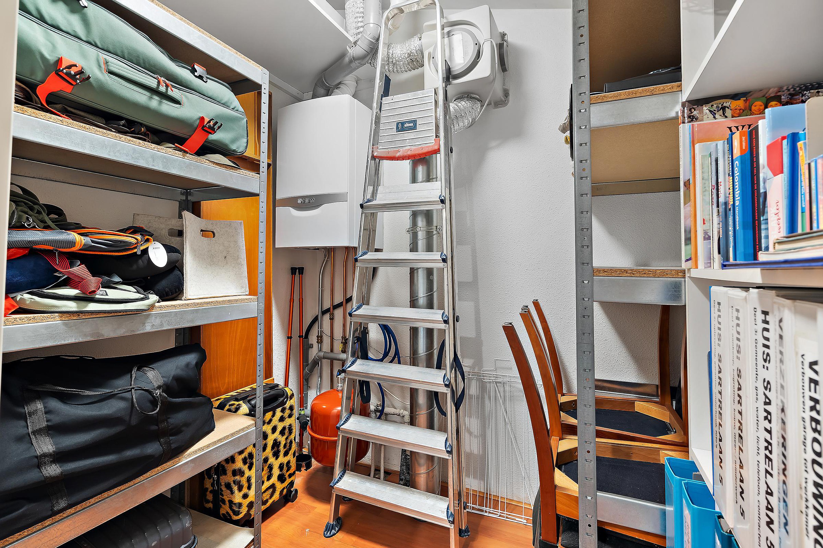 De technische ruimte biedt plaats aan de CV-ketel (2013), de mechanische ventilatie en beschikt over de nodige bergruimte. Alle radiatoren in huis zijn voorzien van slimme thermostaatkranen, waardoor de temperatuur in iedere ruimte individueel en automatisch te regelen is.