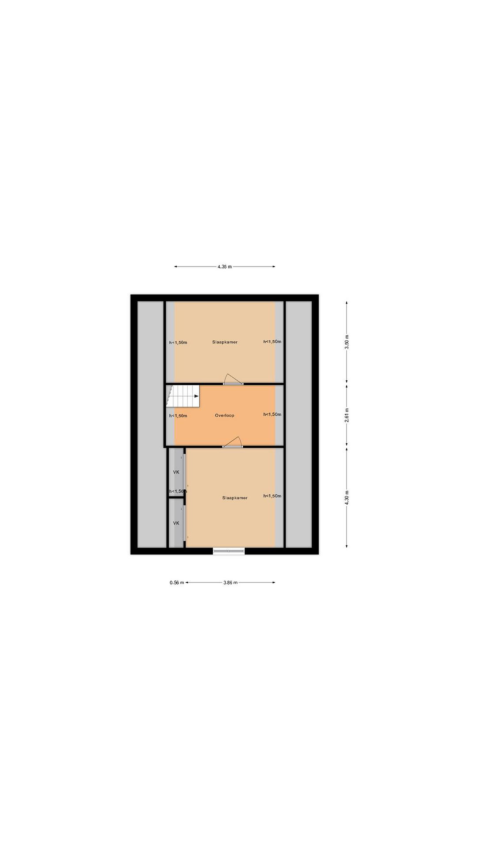 Eerste verdieping Overloop en twee ruime slaapkamers.