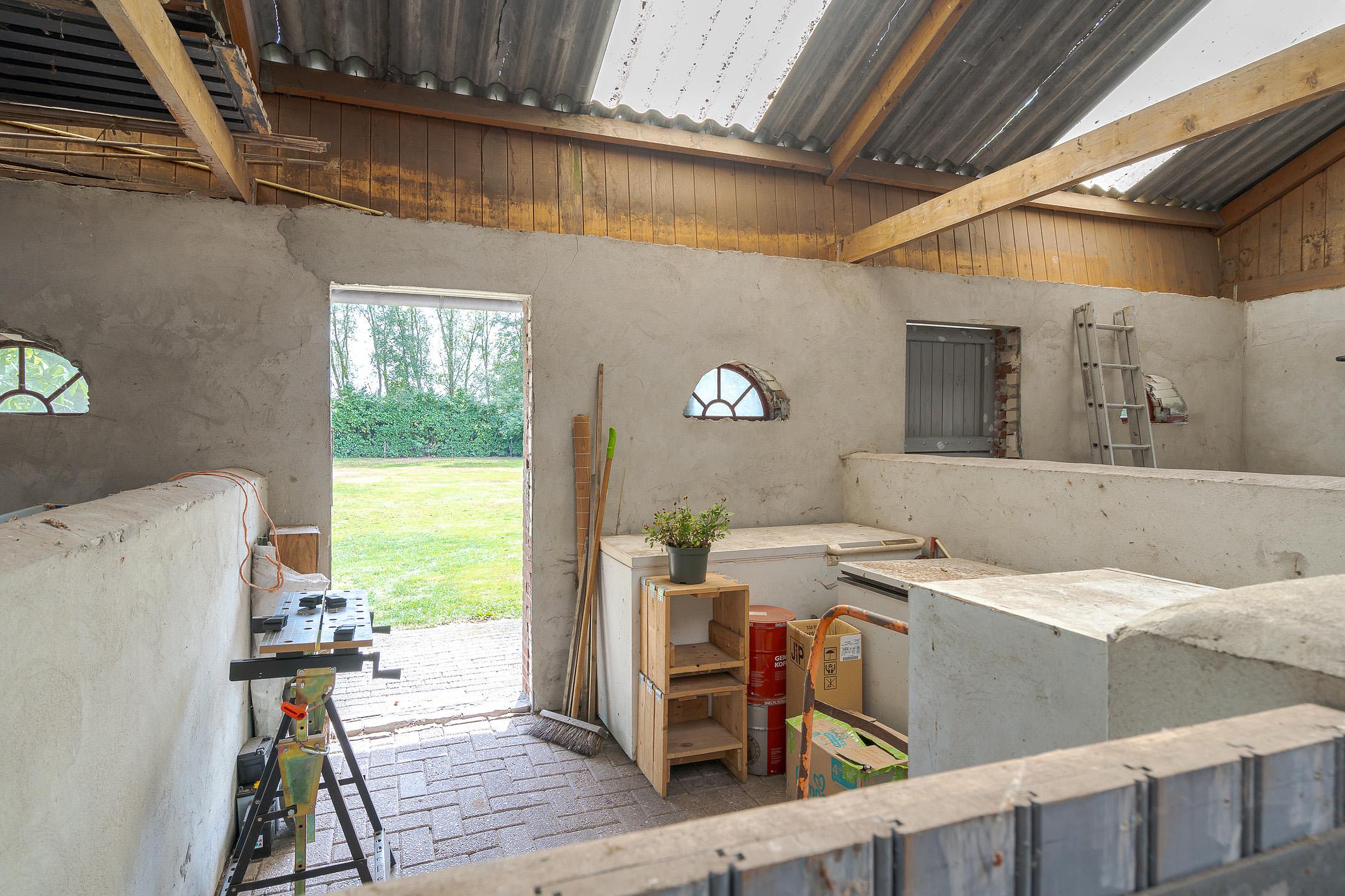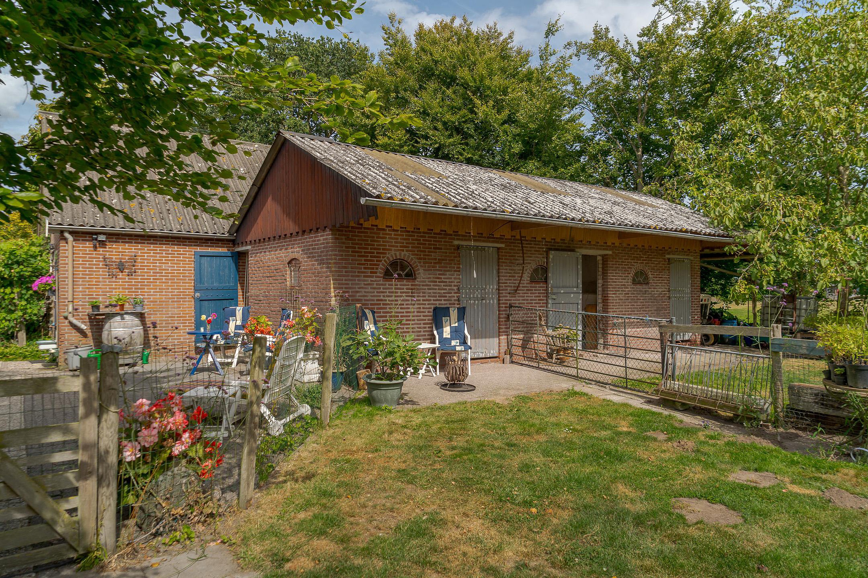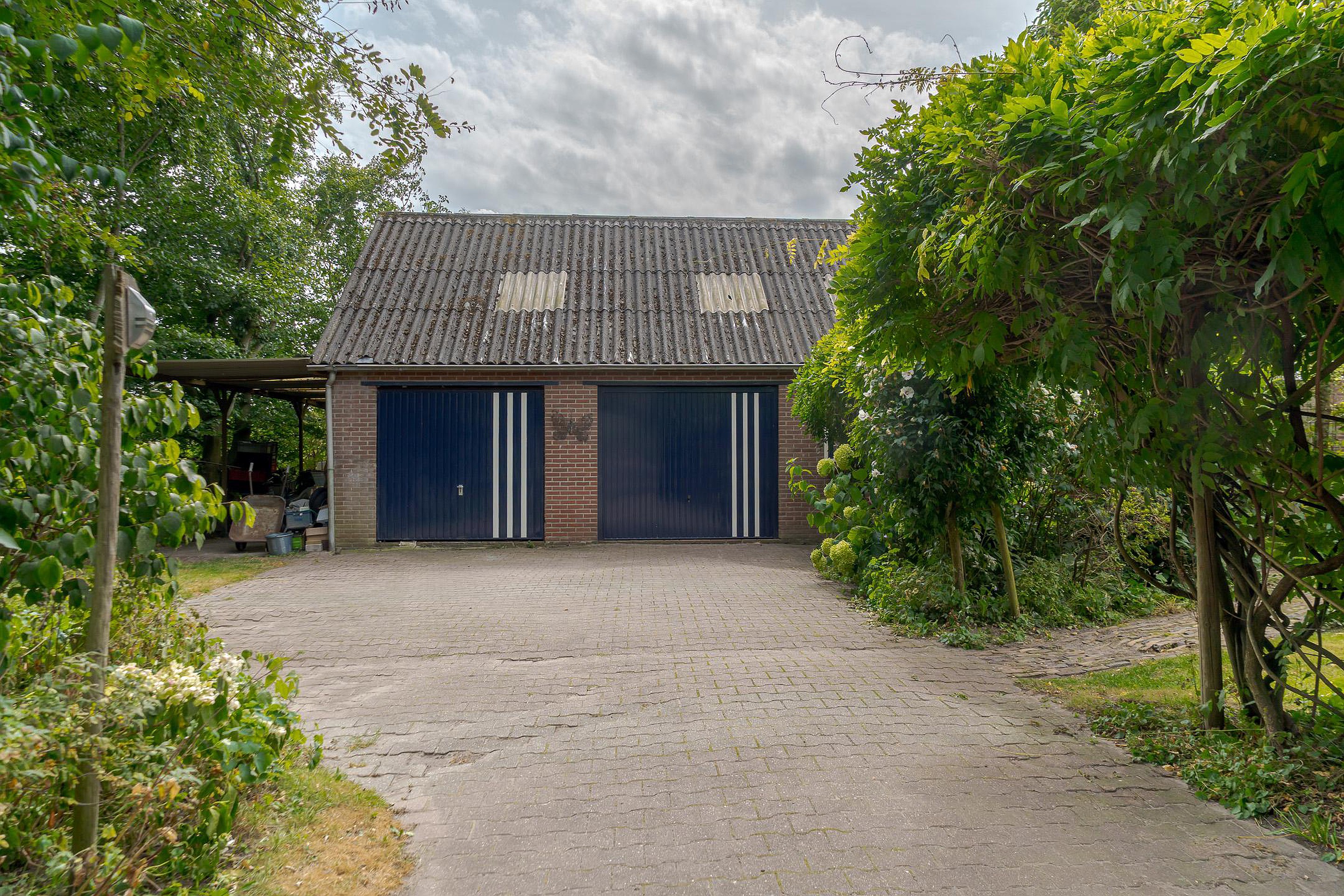 Details Er zijn een dubbele garage met berging, een ruime stal met 3 boxen en een overkapping aanwezig.