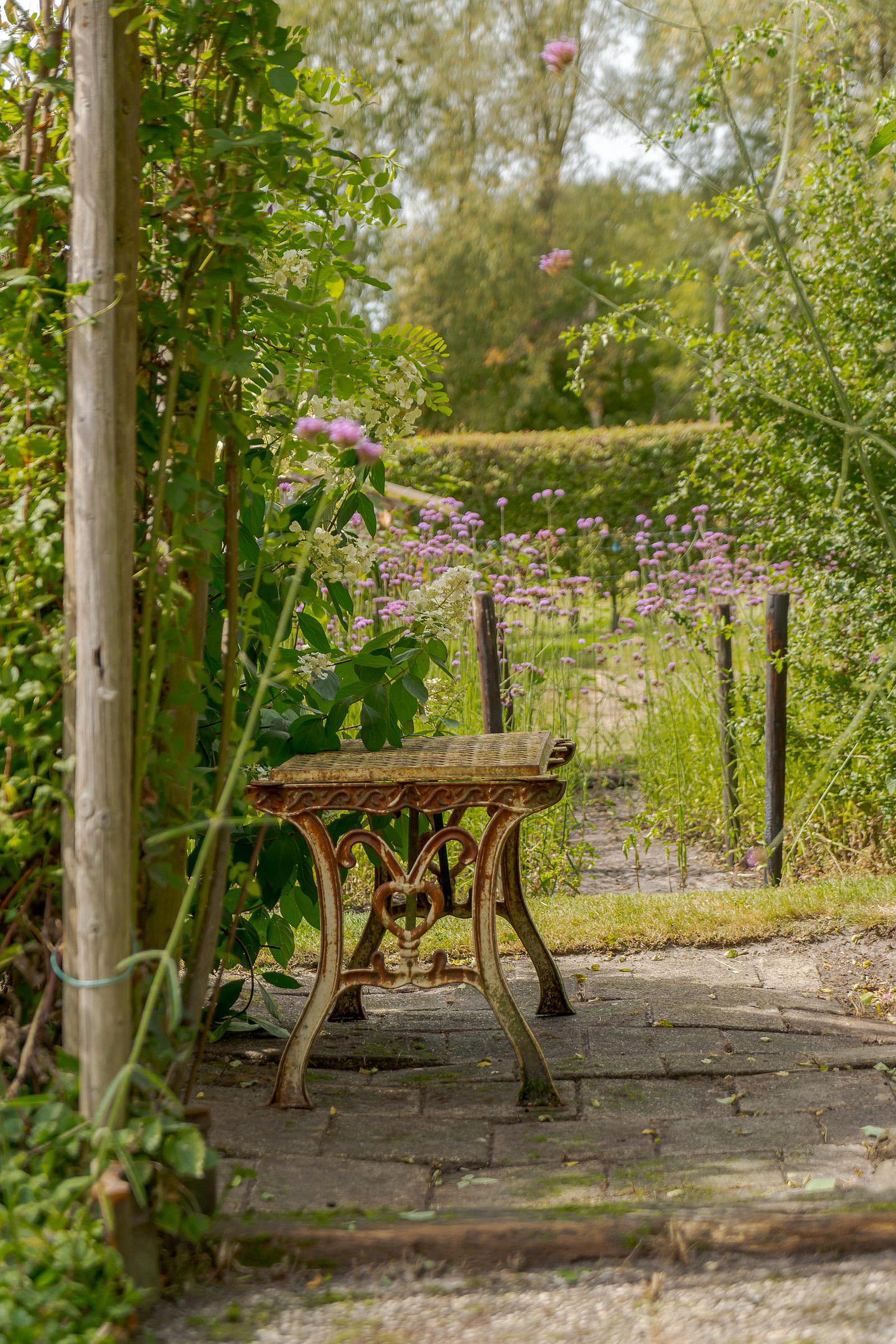 Tuin Rondom de woning ligt de prachtig aangelegde tuin, de Oost- en Westzijde van het perceel zijn ingericht als grasland.