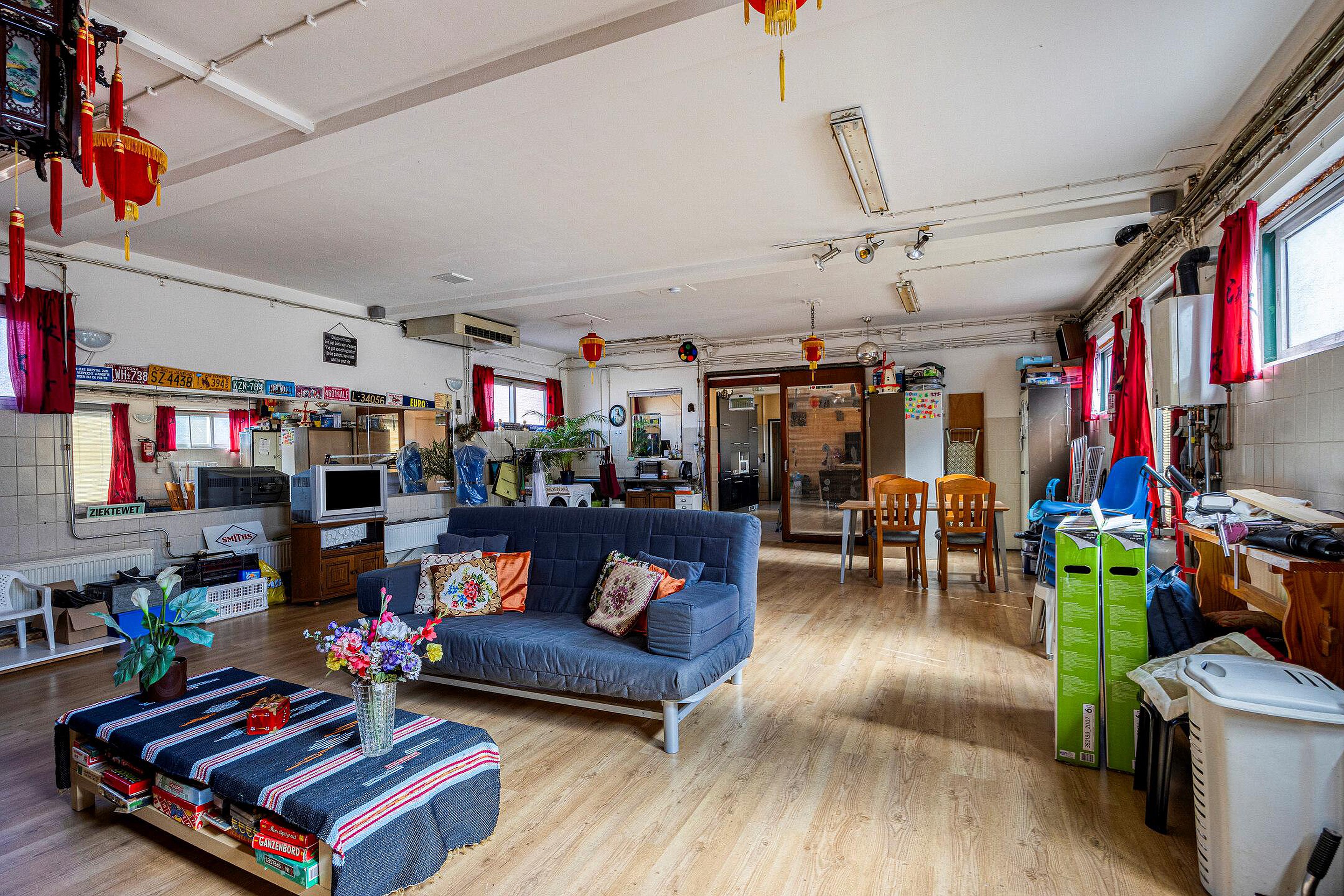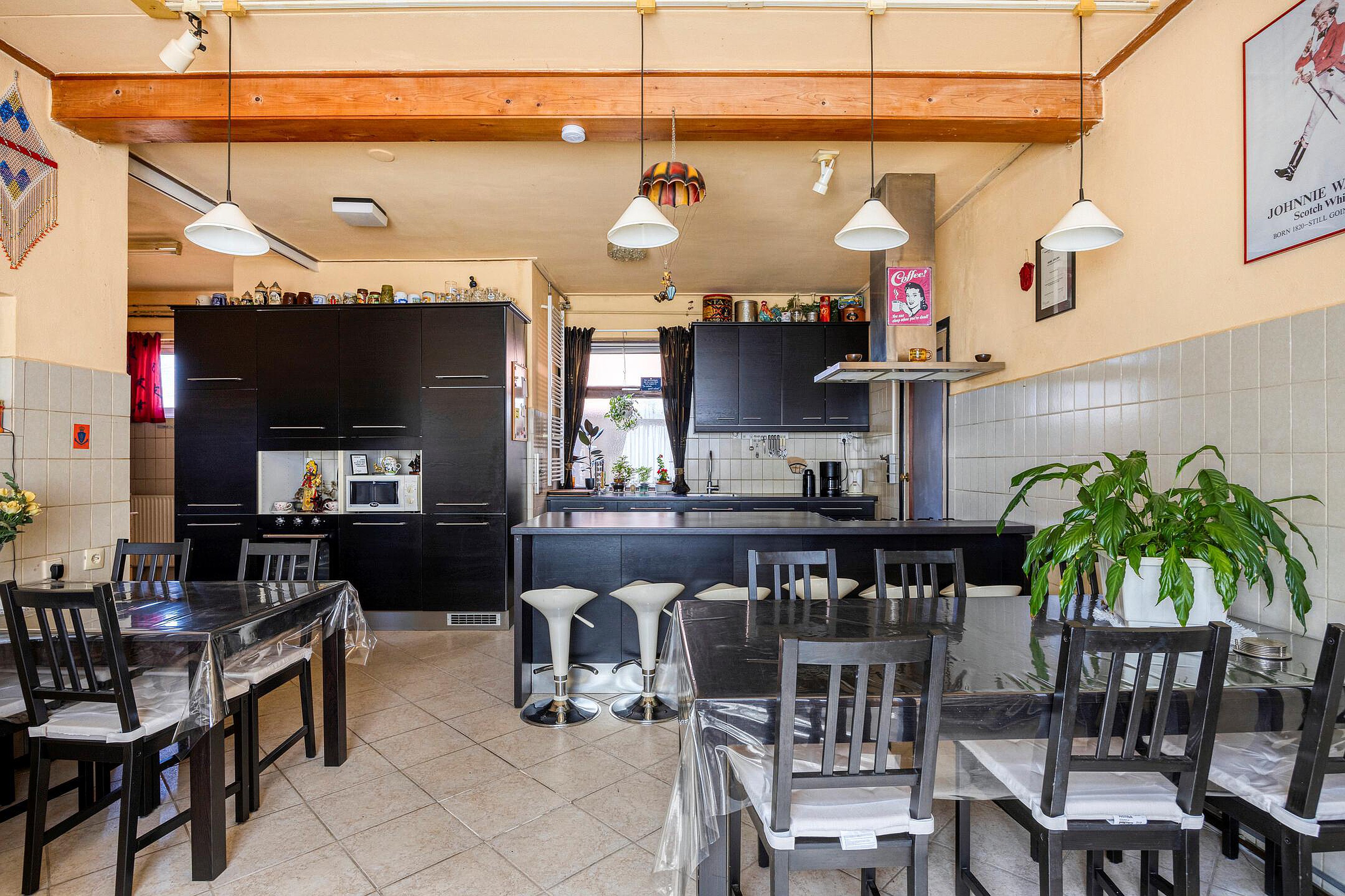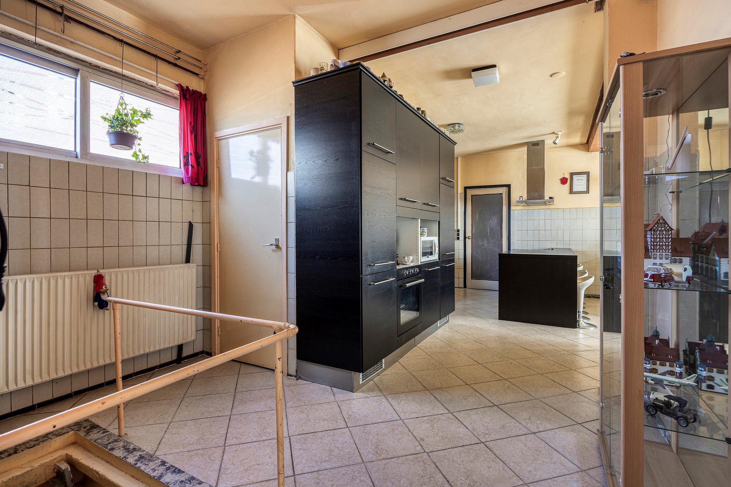 De begane grond is verrassend ruim en bestaat uit een aaneenschakeling van kamers en multifunctionele ruimtes, elk met hun eigen mogelijkheden. Er zijn meerdere woon- en zitgedeeltes, diverse kamers die dienst kunnen doen als slaapkamer, werkkamer of atelier, en verschillende tussenruimtes die flexibel in te delen zijn. De originele details, zoals hoge plafonds en paneeldeuren, zijn op meerdere plekken nog aanwezig en dragen bij aan de nostalgische uitstraling van het huis. De keuken is functioneel en gesitueerd in het centrale deel van de woning. Daarnaast zijn er twee aaneen geschakelde badkamers, voorzien van een dubbele douche, twee toilet, wastafels, ligbad en whirlpool.