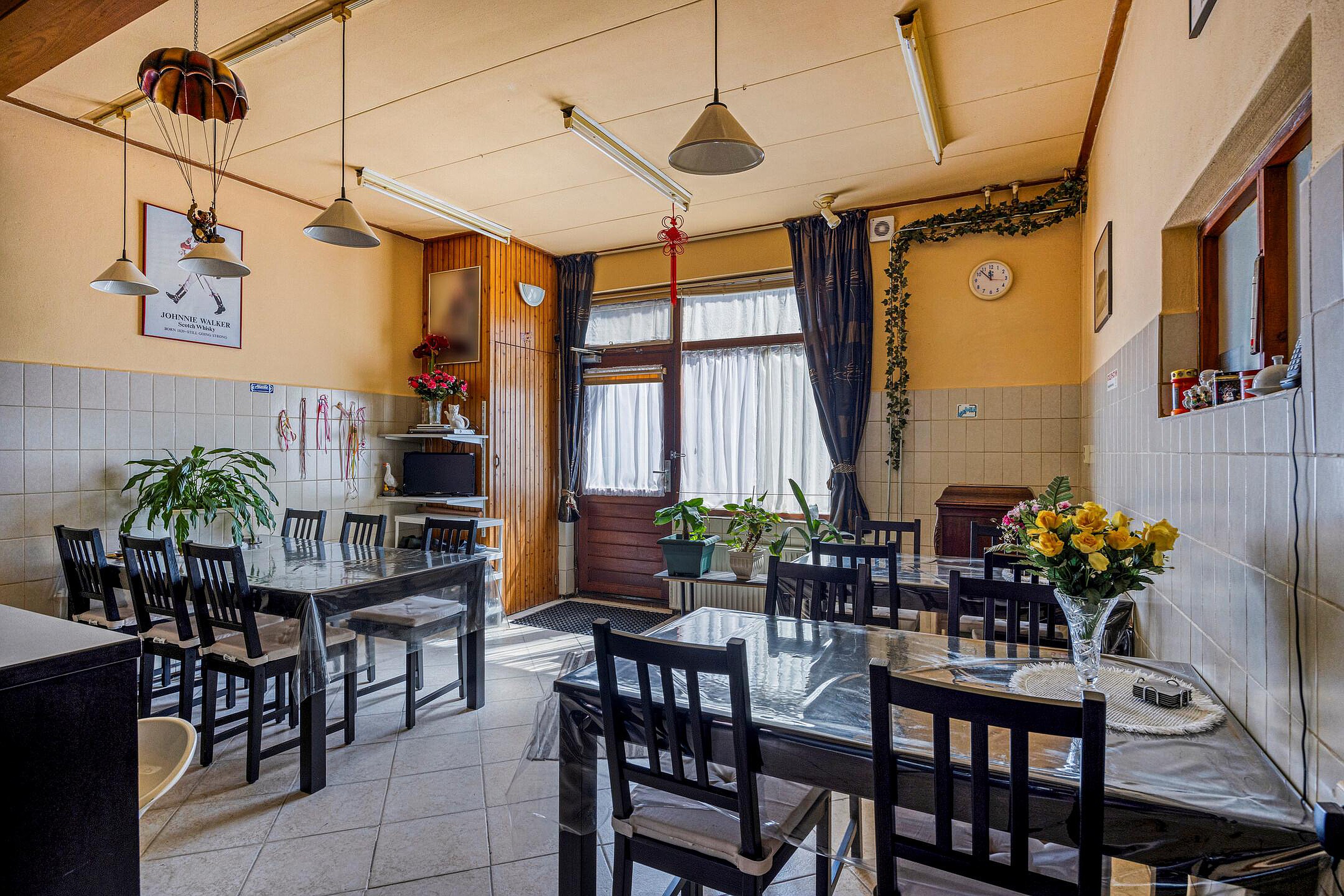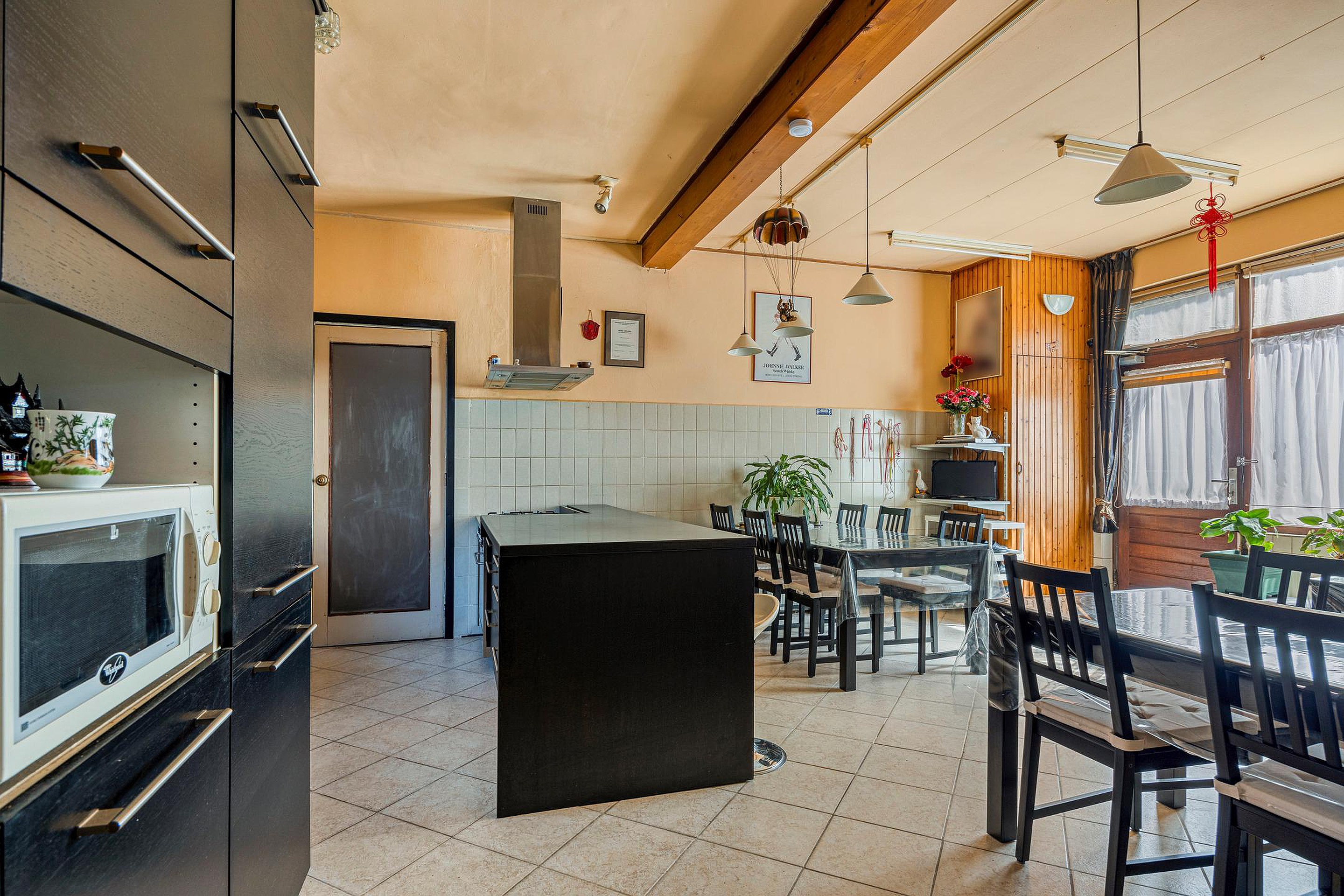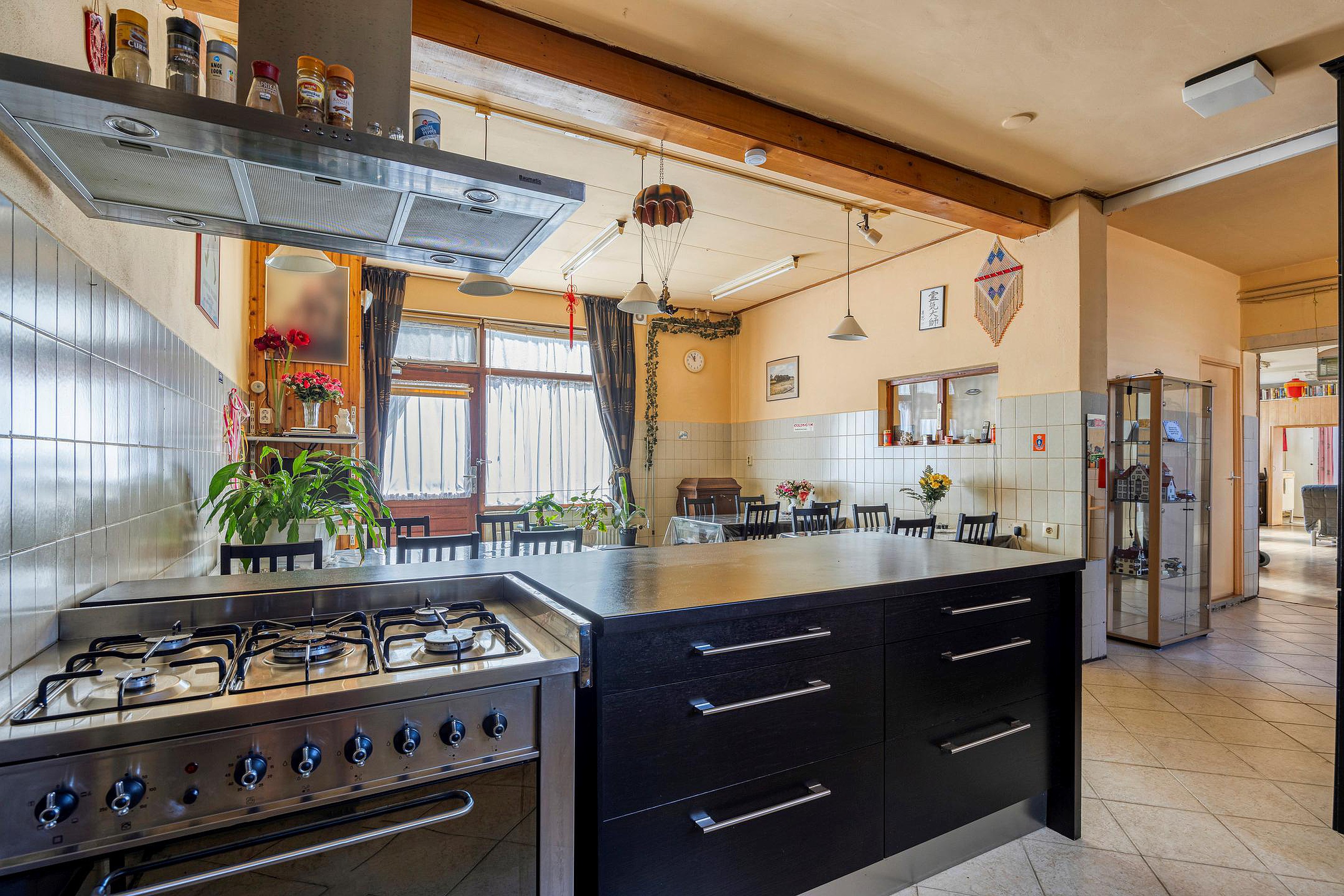De begane grond is verrassend ruim en bestaat uit een aaneenschakeling van kamers en multifunctionele ruimtes, elk met hun eigen mogelijkheden. Er zijn meerdere woon- en zitgedeeltes, diverse kamers die dienst kunnen doen als slaapkamer, werkkamer of atelier, en verschillende tussenruimtes die flexibel in te delen zijn. De originele details, zoals hoge plafonds en paneeldeuren, zijn op meerdere plekken nog aanwezig en dragen bij aan de nostalgische uitstraling van het huis. De keuken is functioneel en gesitueerd in het centrale deel van de woning. Daarnaast zijn er twee aaneen geschakelde badkamers, voorzien van een dubbele douche, twee toilet, wastafels, ligbad en whirlpool.