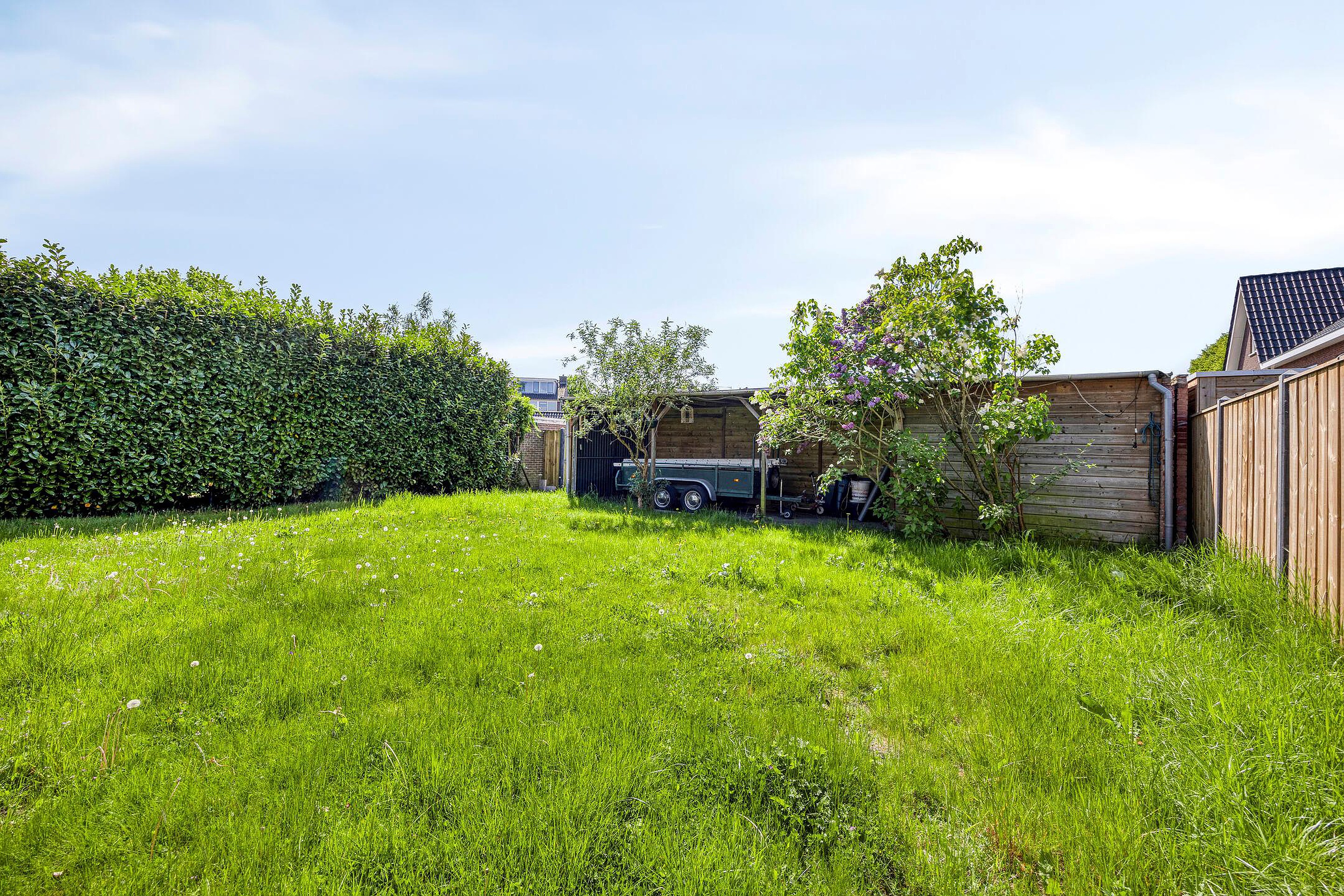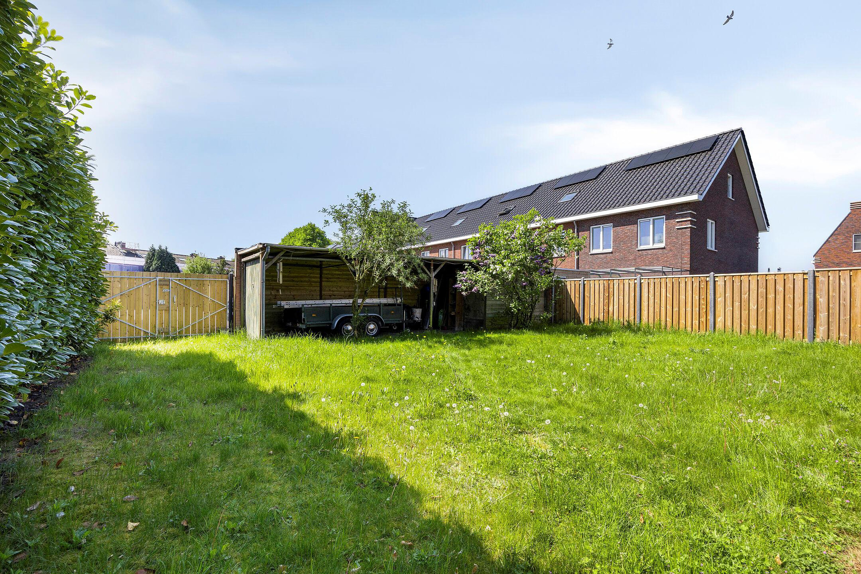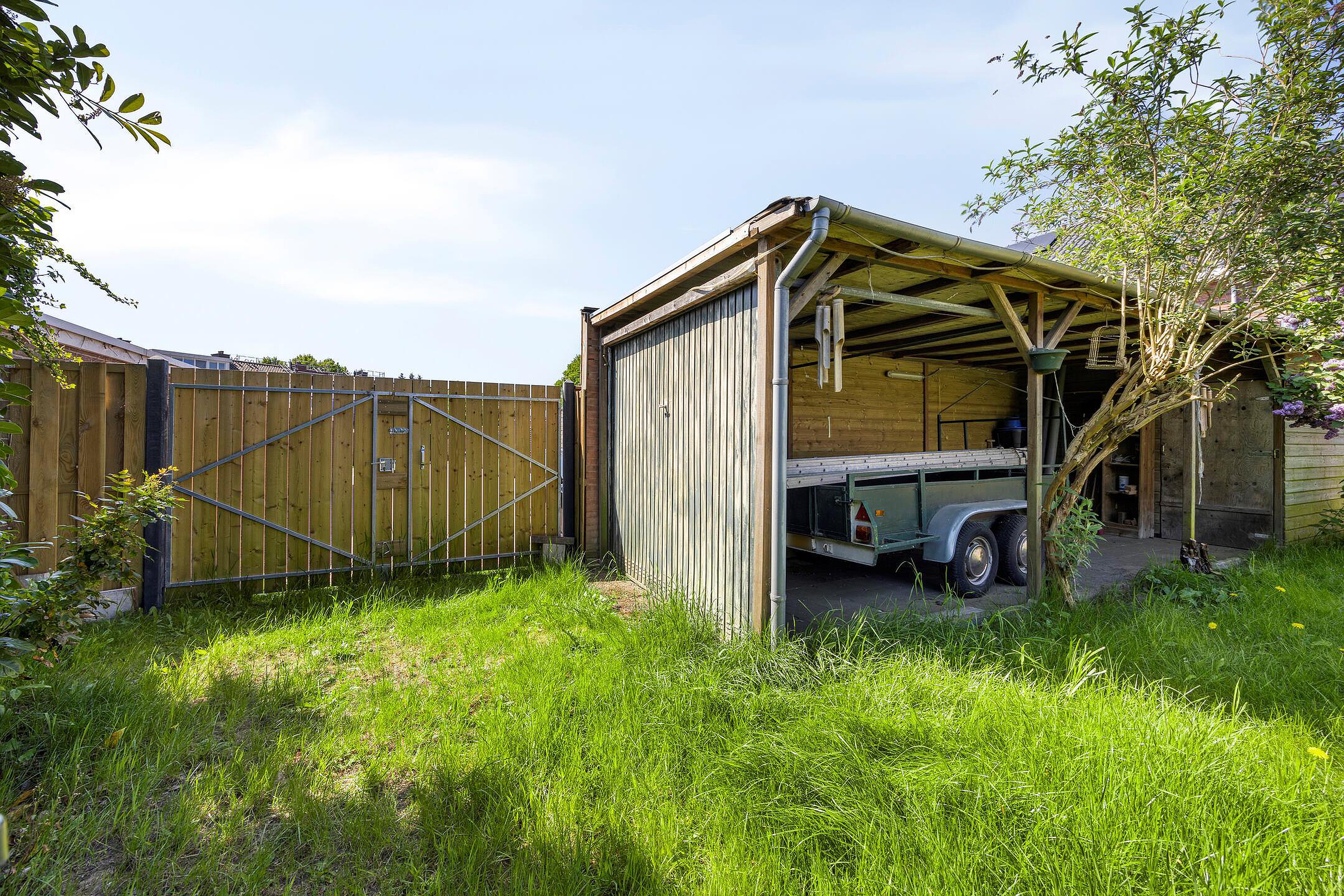 De woning beschikt over een keurige voortuin met ruime oprit en parkeergelegenheid voor meerdere auto’s op eigen terrein. Via de zijkant van het perceel is er een afsluitbare poort die toegang biedt tot de achtertuin. De achtertuin is diep en breed, grotendeels voorzien van gras en bestrating, en biedt volop ruimte voor het realiseren van meerdere terrassen, speelruimte of een moestuin. Dankzij de diepte en ligging ervaart u hier veel privacy en vrijheid. Achter in de tuin is tevens een carport met een berging aanwezig. De buitenruimte vormt daarmee een uitstekend verlengstuk van de woning en biedt tal van gebruiksmogelijkheden. Ook in de achttuin is een poort met toegangsweg aanwezig.