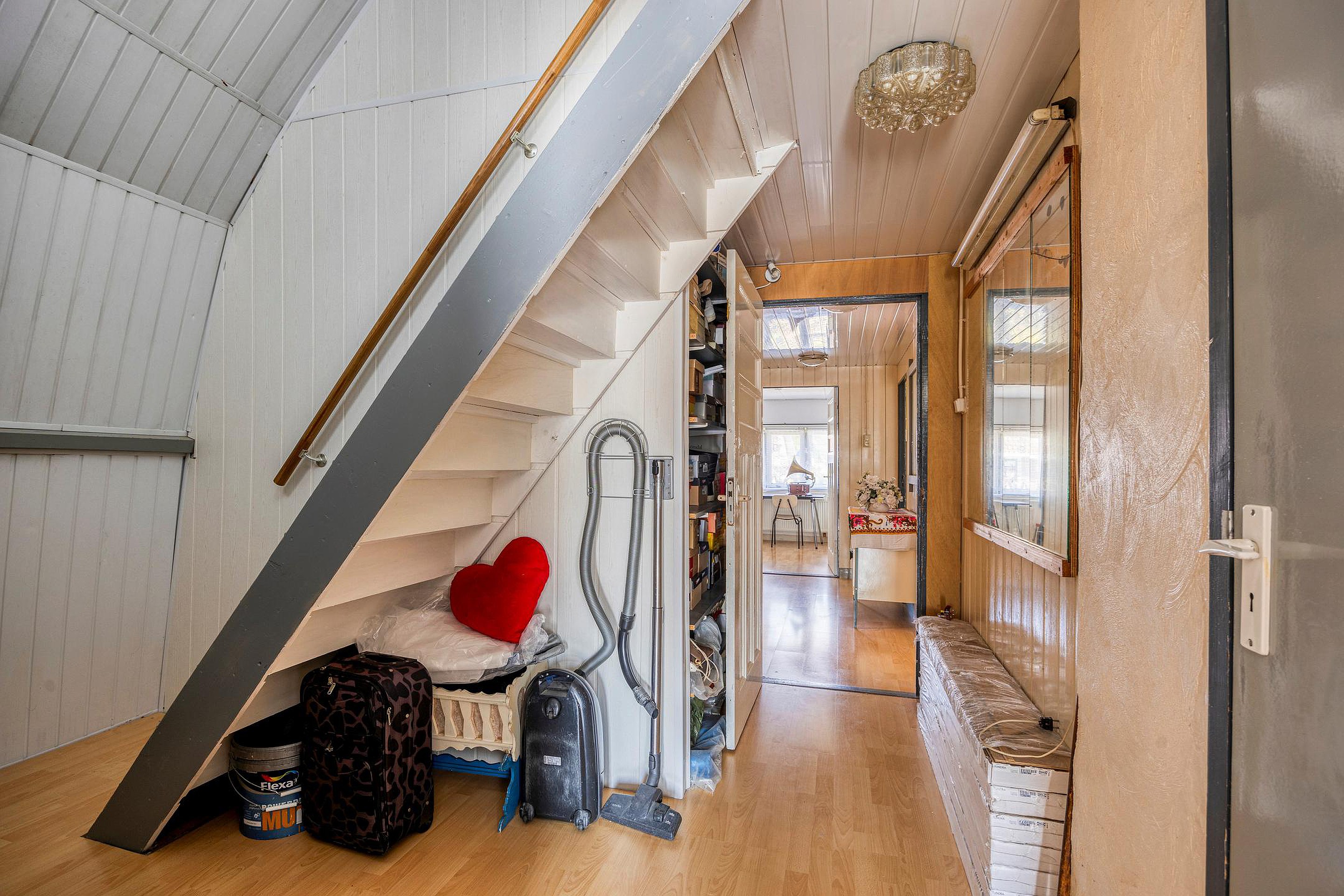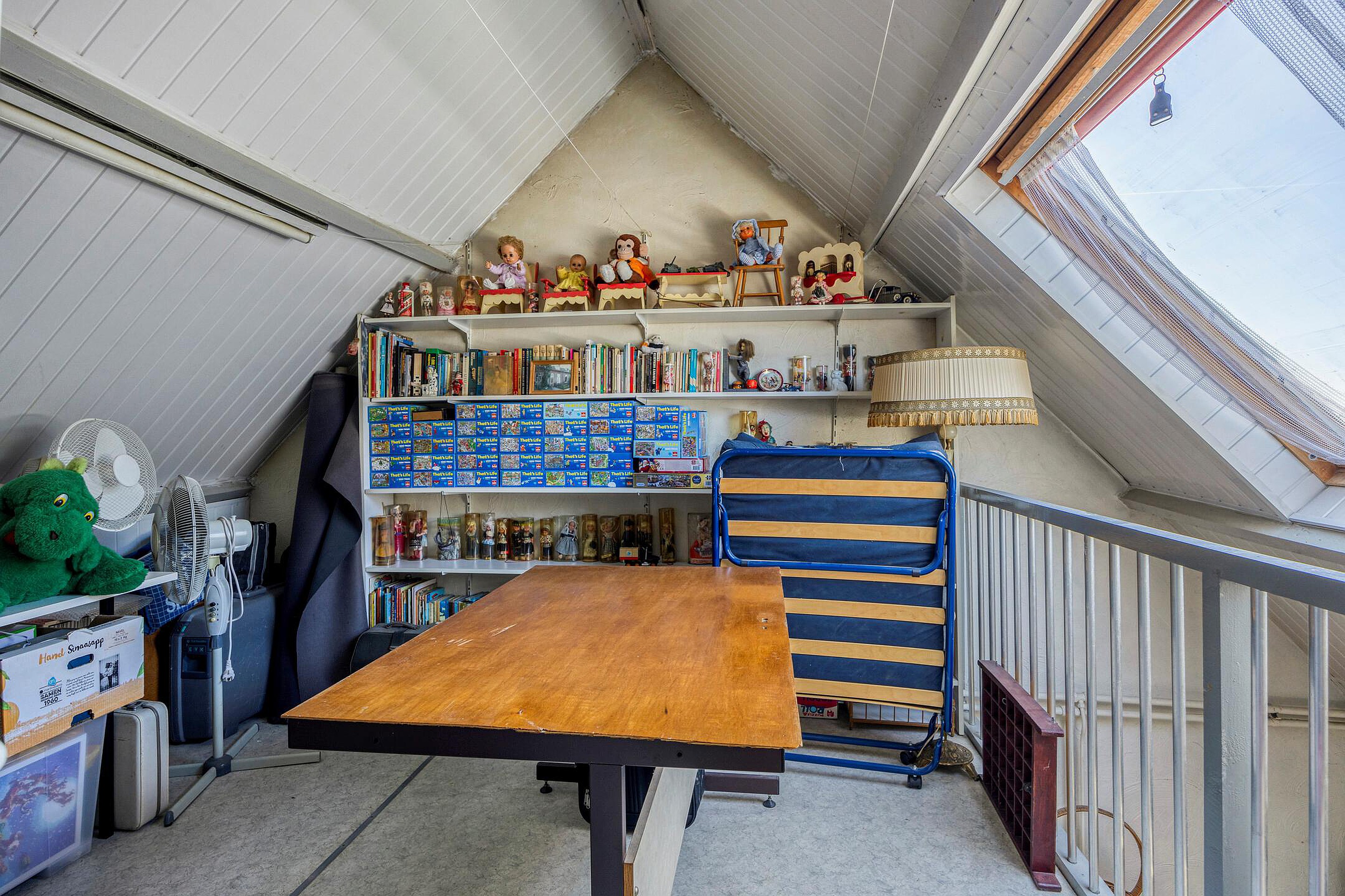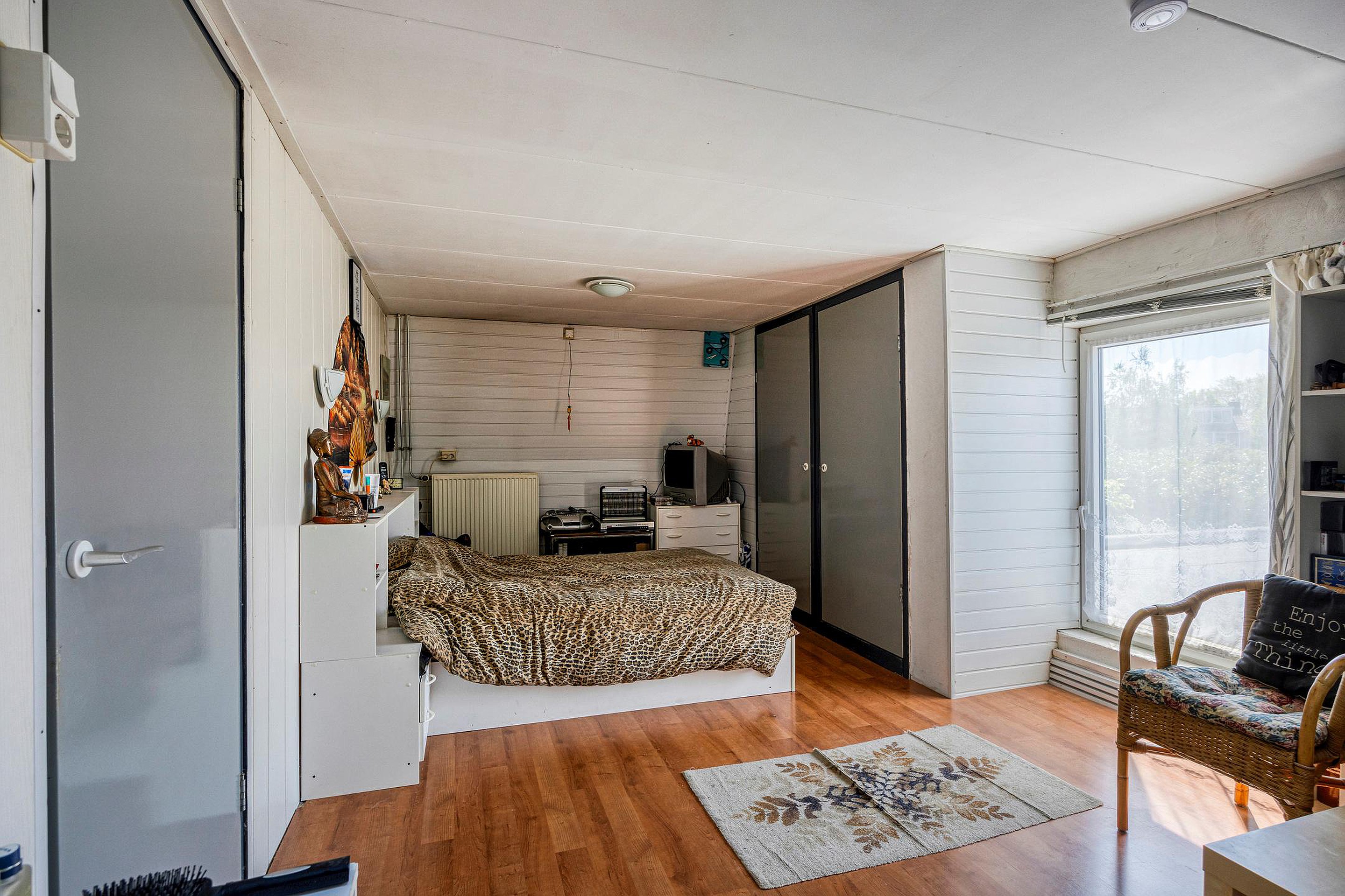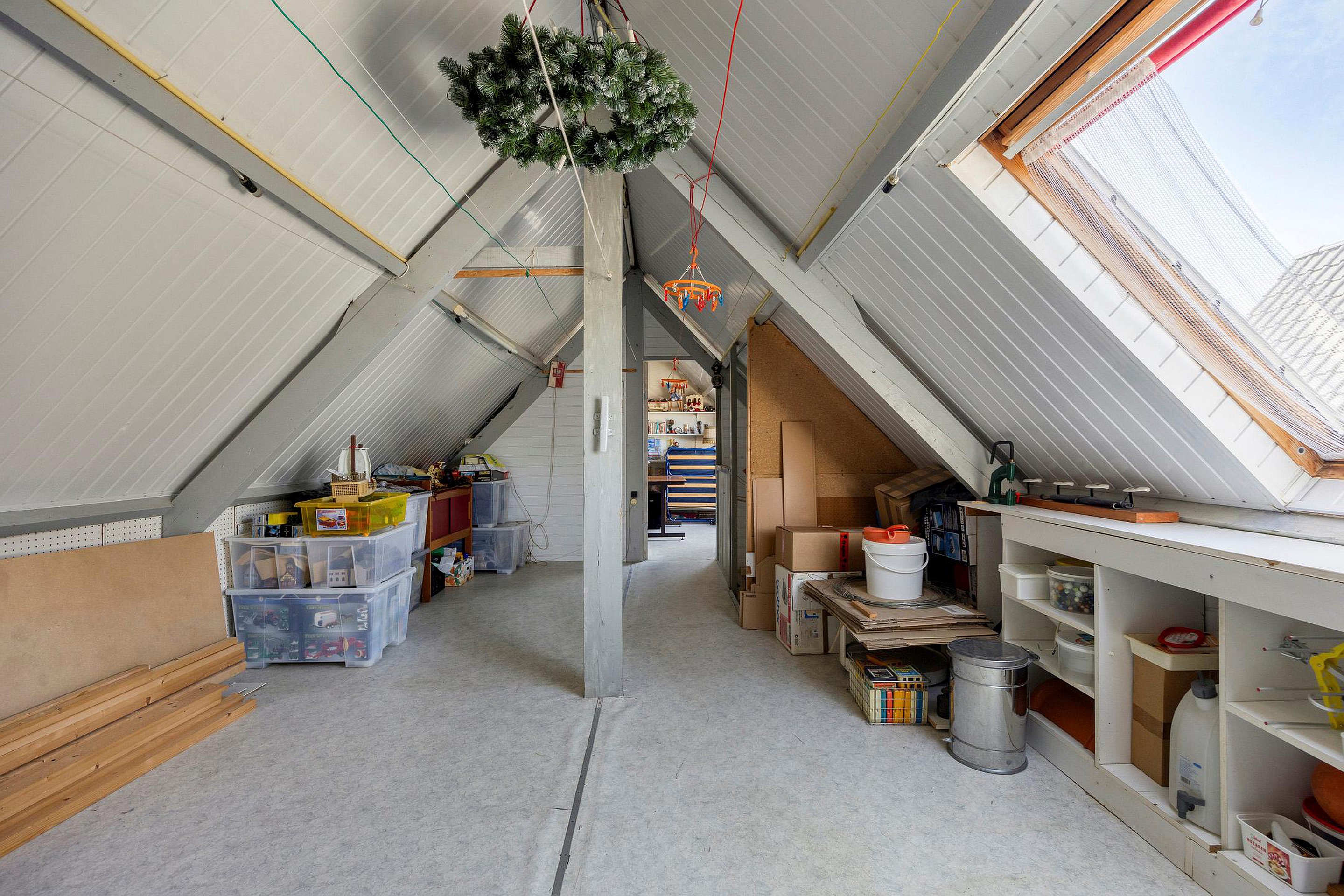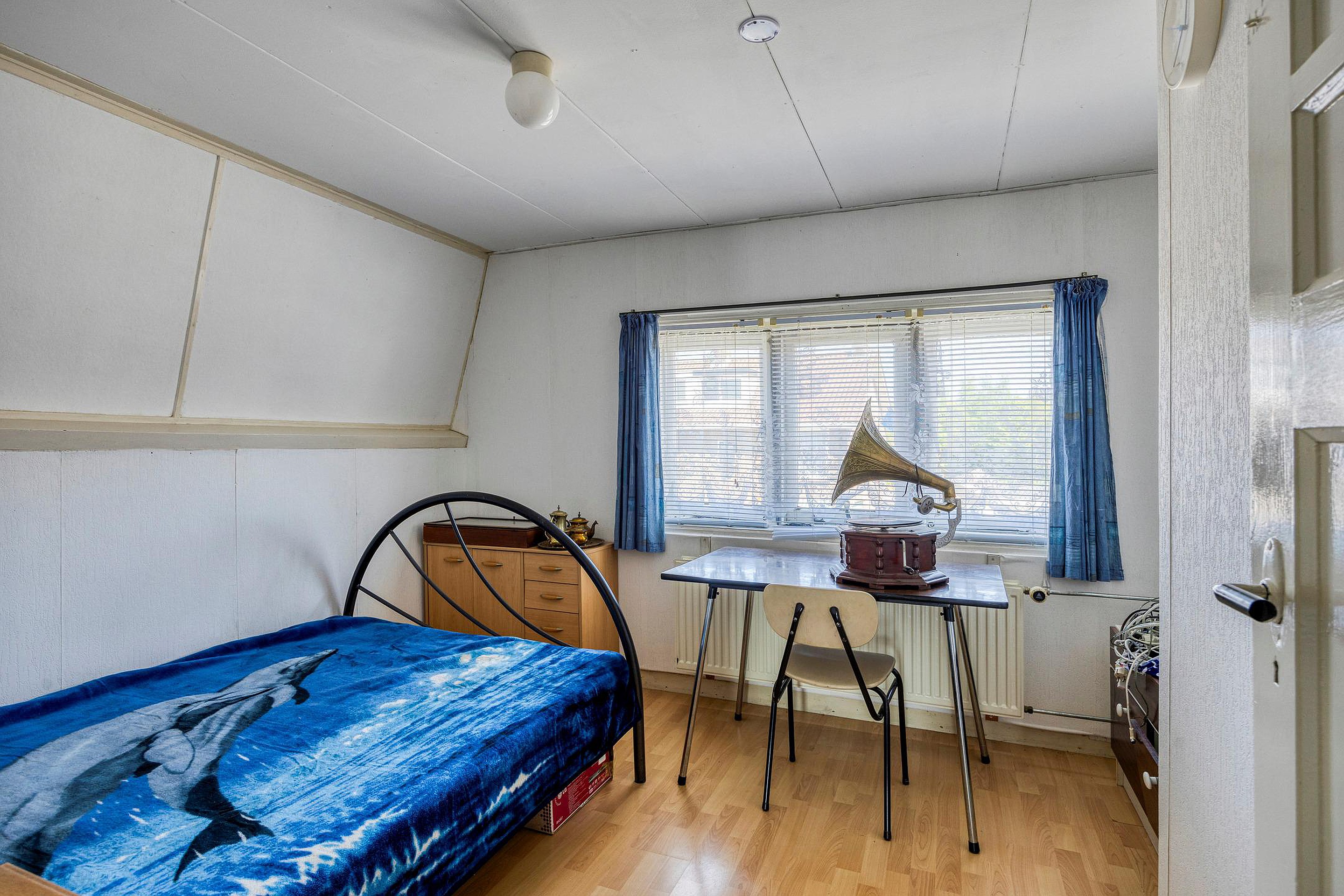 De tweede verdieping is een volwaardige zolderverdieping met een royale ruimte onder de kapconstructie. Er zijn meerdere dakramen aanwezig en de vloeroppervlakte strekt zich uit over de volle breedte van het huis. Deze verdieping leent zich uitstekend voor het creëren van een grote slaapkamer, een werkruimte, speelzolder of zelfs een zelfstandige studio. Ook is er onder de schuine kanten veel bergruimte aanwezig achter knieschotten. Op dit moment zijn er 2 slaap/zolderkamers aanwezig.
