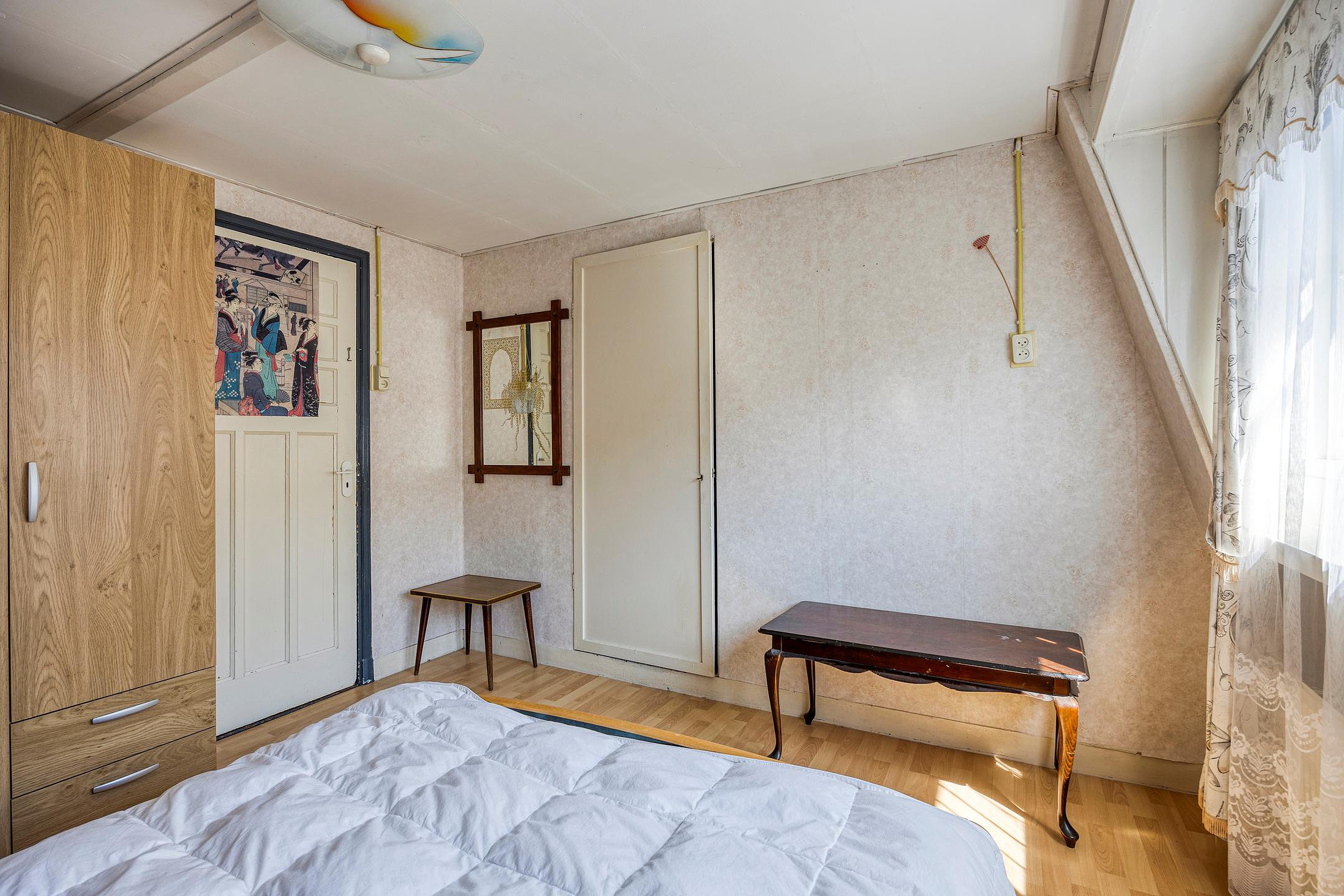 De eerste verdieping beschikt over meerdere kamers met uiteenlopende afmetingen en indelingen. Er zijn in totaal vier volwaardige slaapkamers, waarvan sommige voorzien zijn van dakkapellen of vaste kastruimte. Daarnaast is er een badkamer, kleedkamer, hobbyruimte of extra berging. Dankzij de hoogte onder de kap en de vele raampartijen is er op deze verdieping verrassend veel lichtinval en potentieel. De huidige afwerking is eenvoudig, maar de basisstructuur biedt volop mogelijkheden om hier een comfortabel slaapverdiepingsplan te realiseren met eventueel een extra (tweede) badkamer.