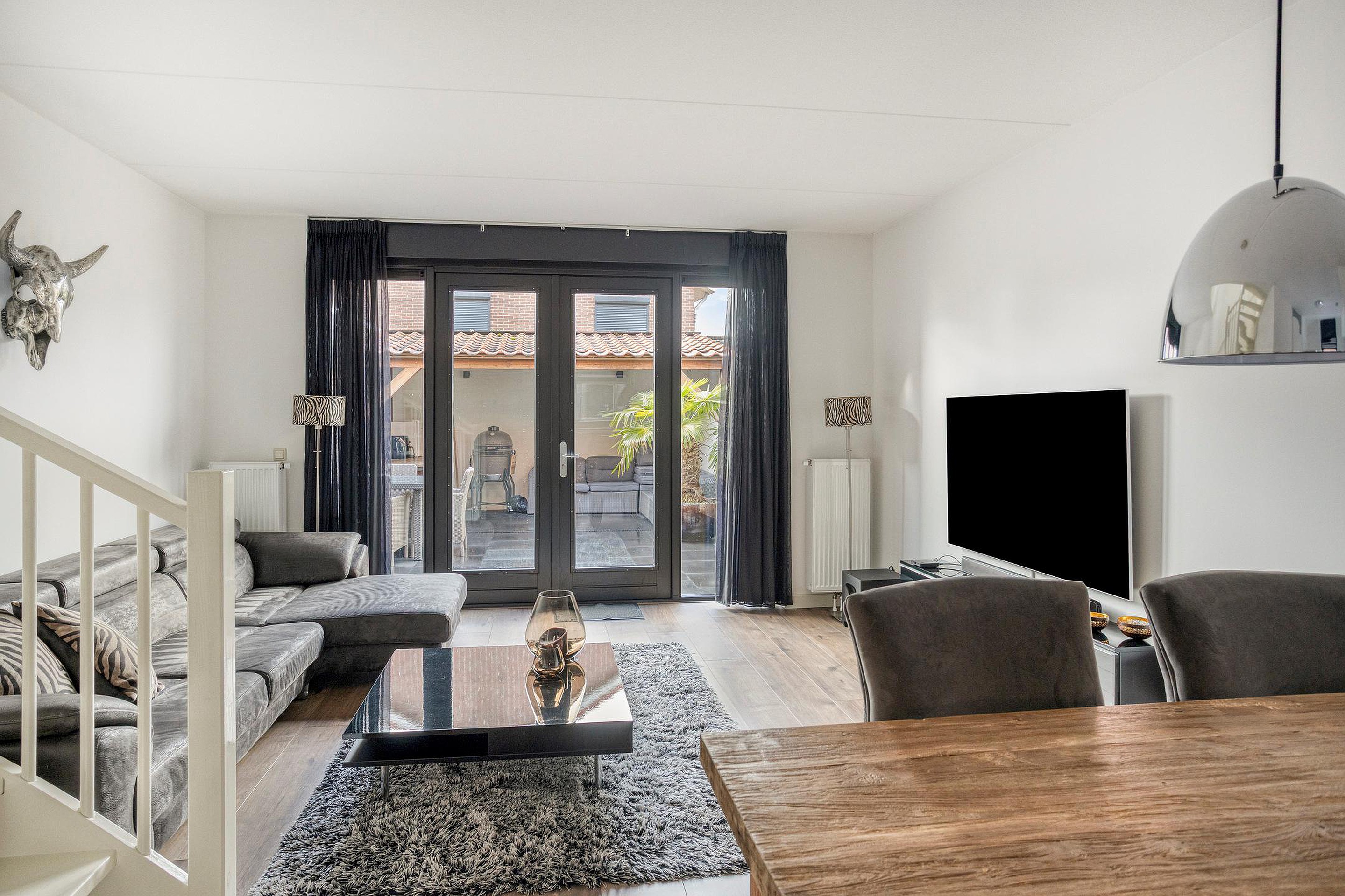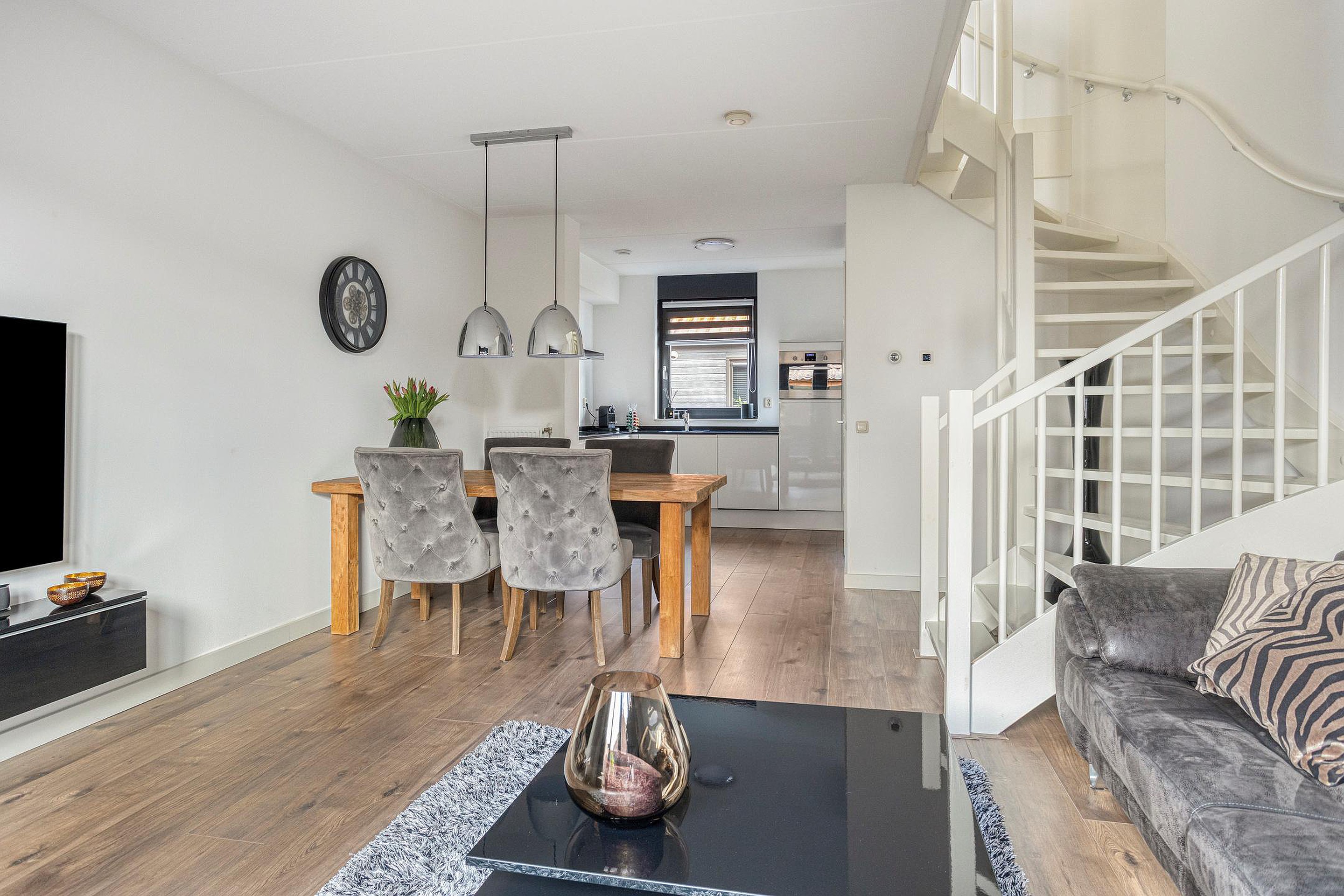 Via de entree komt u binnen in een nette hal met meterkast, modern toilet en toegang tot de woonkamer. Wat direct opvalt, is de doorlopende opzet van het leefgedeelte. Dankzij de raampartijen aan voor- en achterzijde valt het daglicht prettig binnen, waardoor een lichte en aangename sfeer ontstaat. De woonkamer beslaat vrijwel de volledige diepte van de woning en biedt moeiteloos plaats aan zowel een comfortabele zithoek als een royale eettafel. Openslaande deuren aan de achterzijde versterken de verbinding met de tuin en zorgen ervoor dat binnen en buiten op natuurlijke wijze in elkaar overlopen.