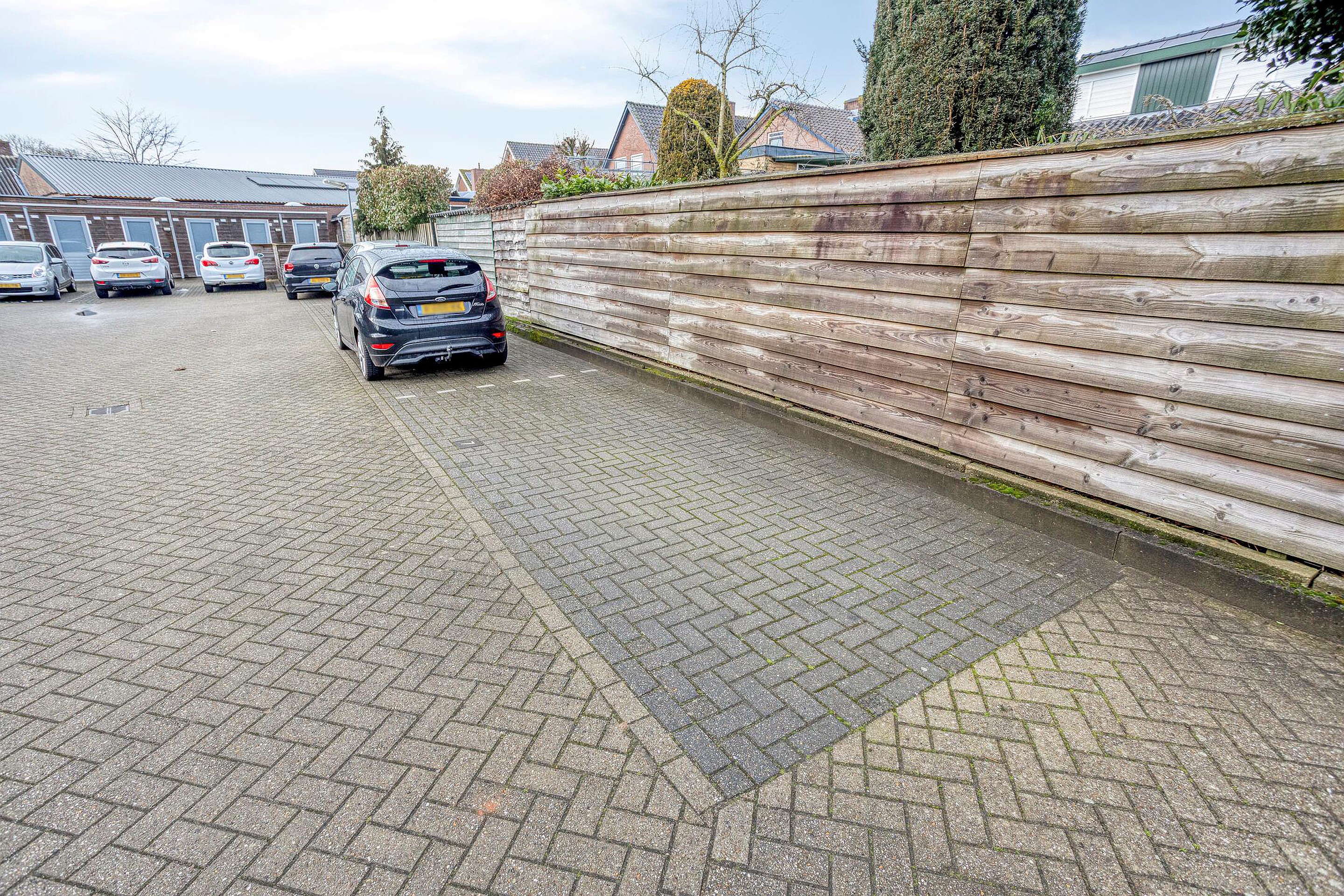 De achtertuin is onderhoudsvriendelijk aangelegd met grote antracietkleurige tegels en volledig omsloten door houten schuttingen, wat zorgt voor privacy. Direct grenzend aan de woning ligt het terras bij de openslaande deuren, waardoor u op zonnige dagen moeiteloos binnen en buiten combineert. Achter in de tuin bevindt zich een sfeervolle houten overkapping met verlichting. Hier is ruimte voor een comfortabele loungehoek, waardoor u beschut kunt genieten, ook wanneer het weer minder stabiel is. De tuin is overzichtelijk, verzorgd en functioneel ingericht — precies passend bij het karakter van de woning.