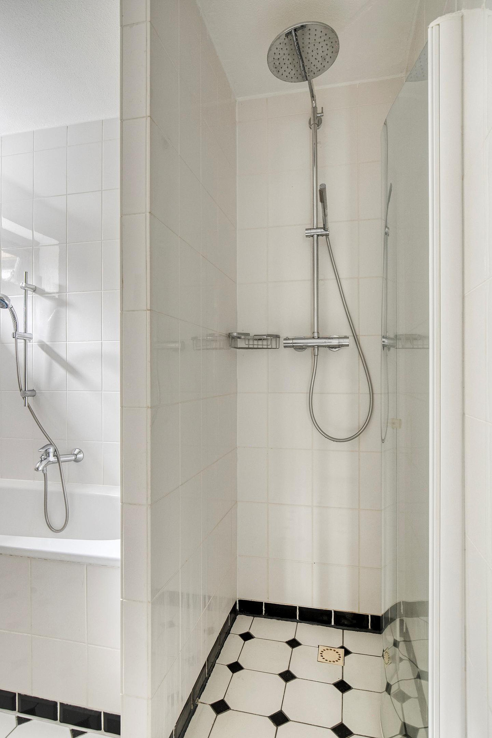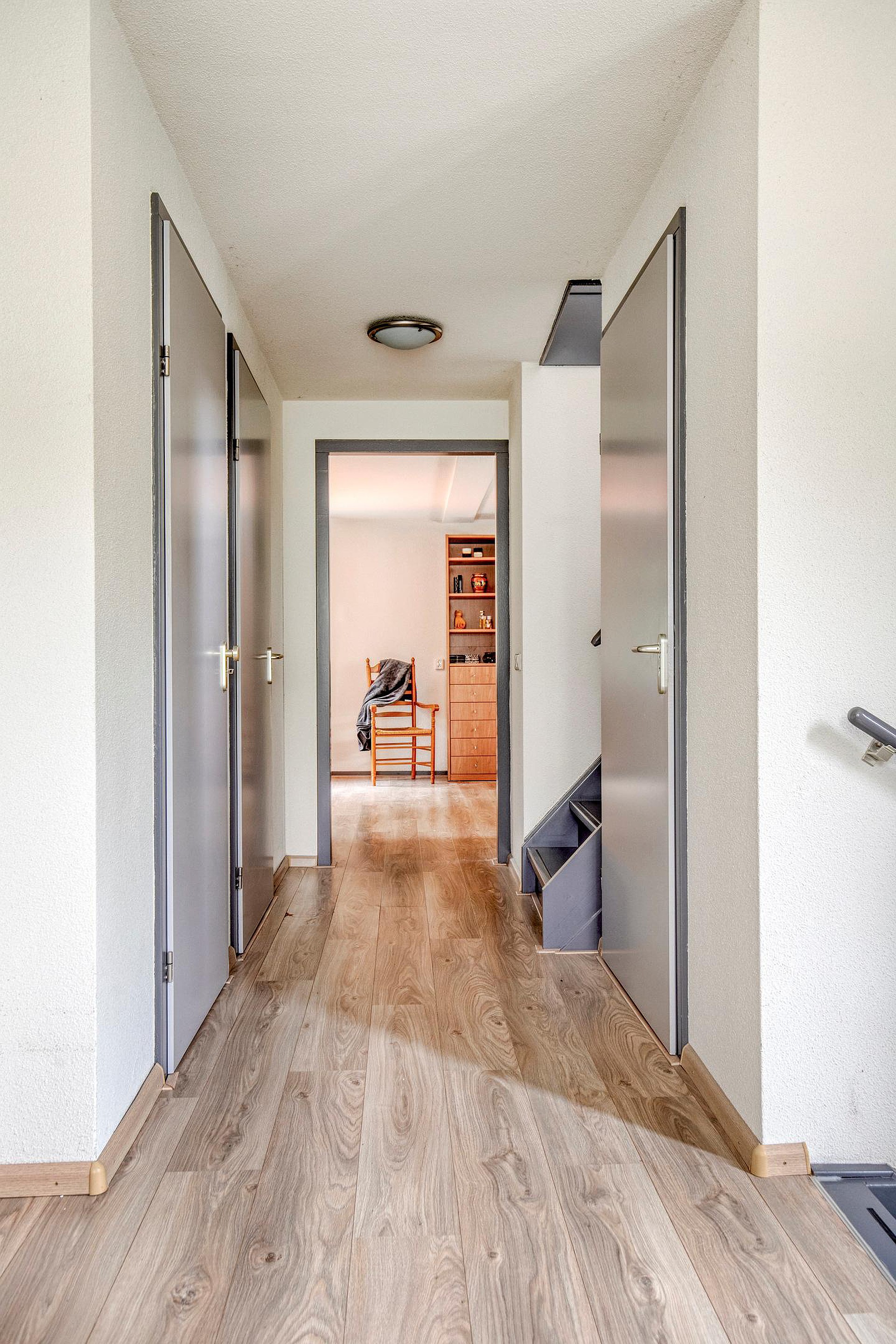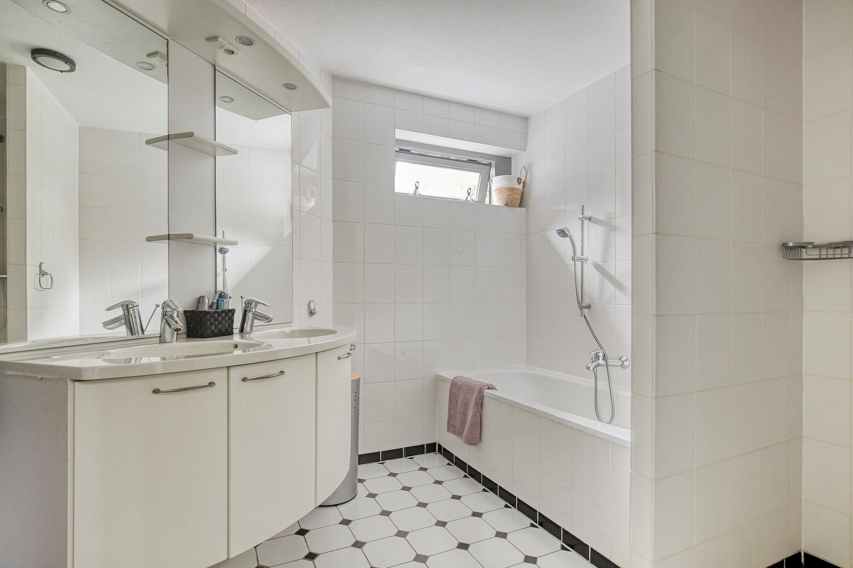 Eerste verdieping De eerste verdieping biedt volop ruimte. De master bedroom is zeer royaal en beschikt over een eigen inloopkast. Daarnaast zijn er nog twee grote slaapkamers, waarvan één eveneens met een inloopkast. Er zijn twee badkamers: één met ligbad, douche en dubbele wastafel, en een tweede badkamer met douche en wastafel. Het toilet is separaat op de overloop.