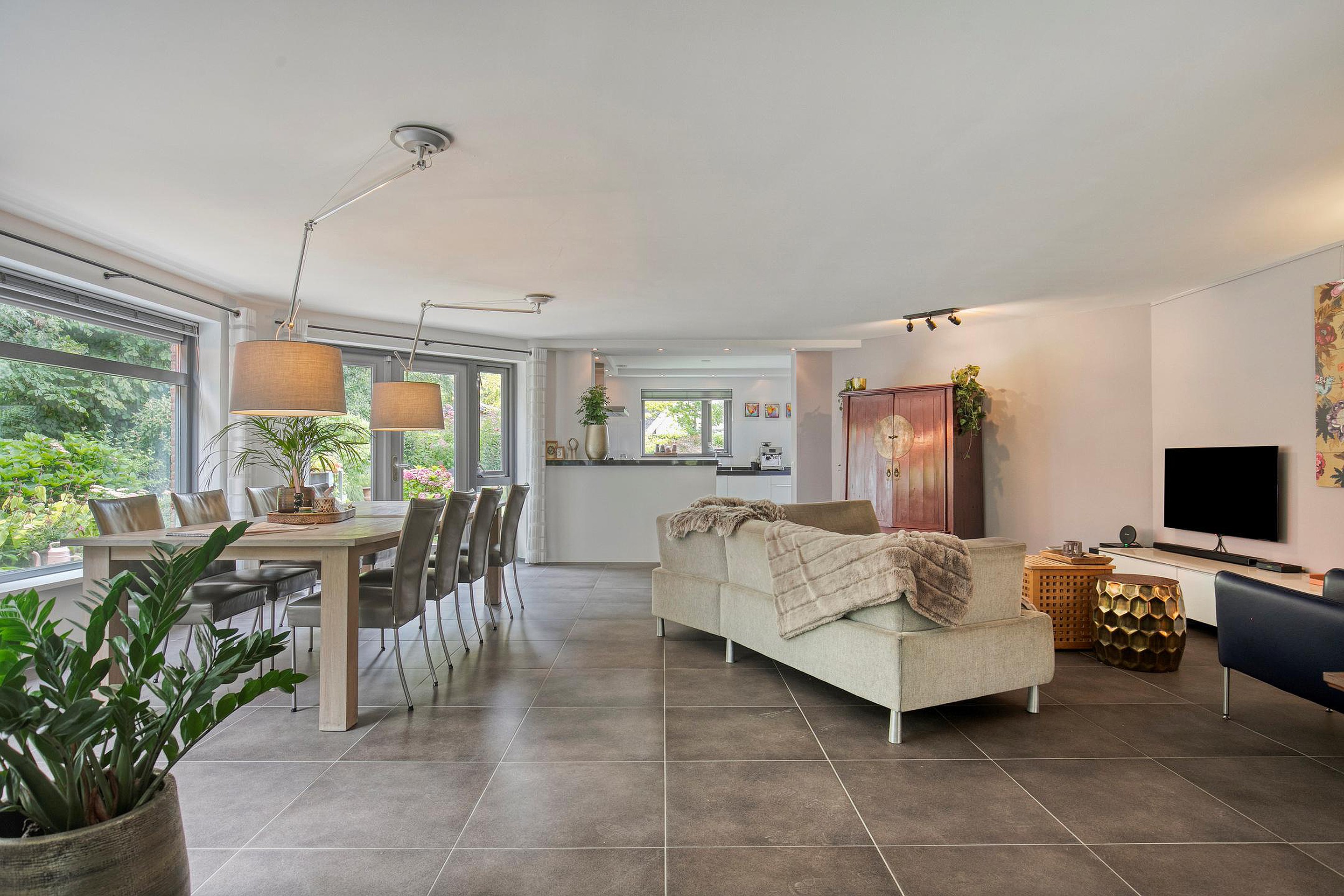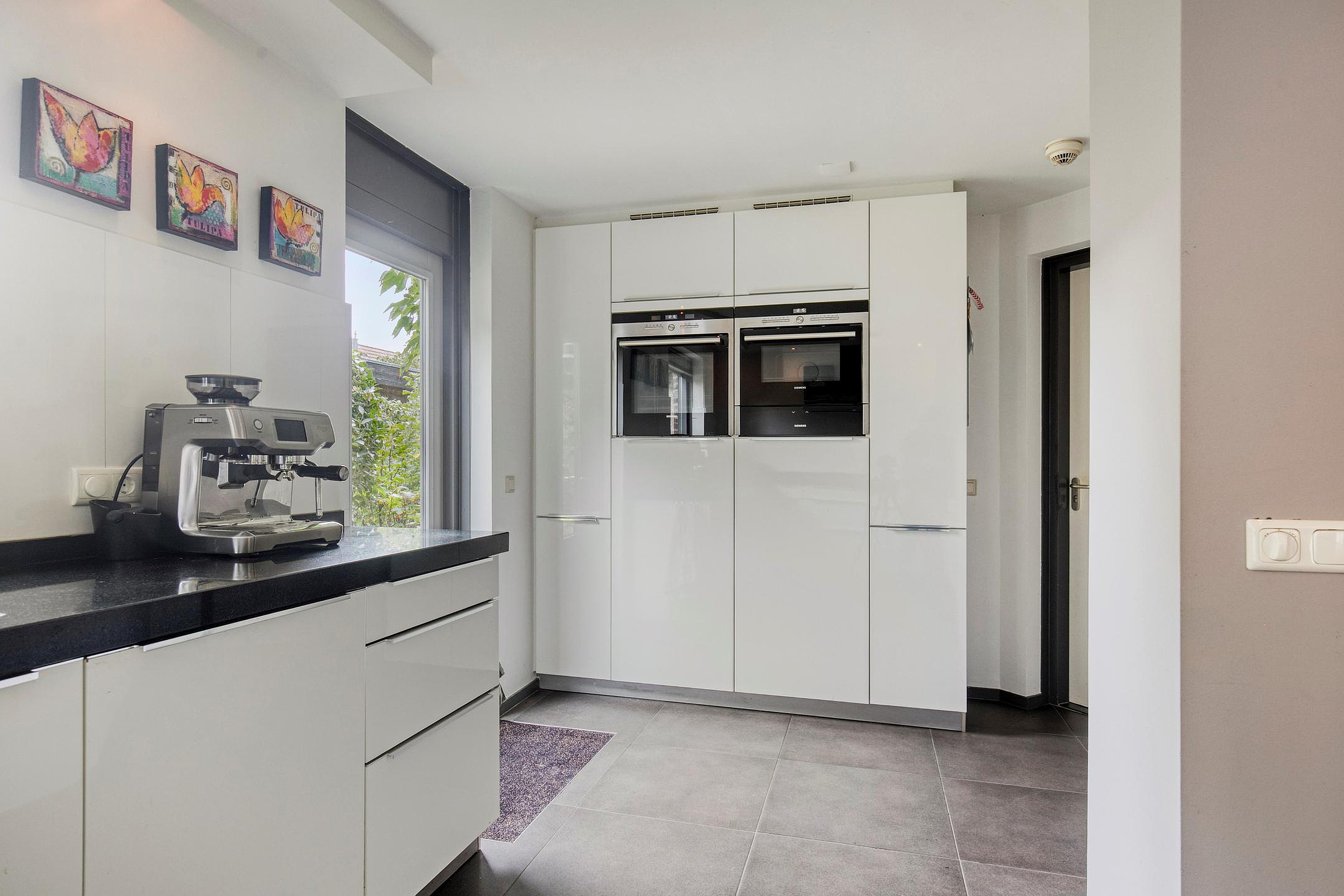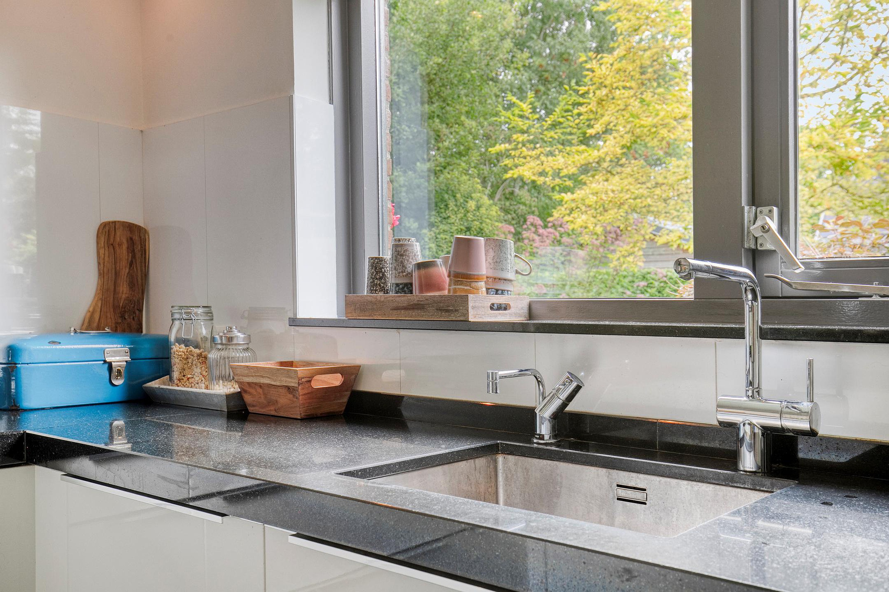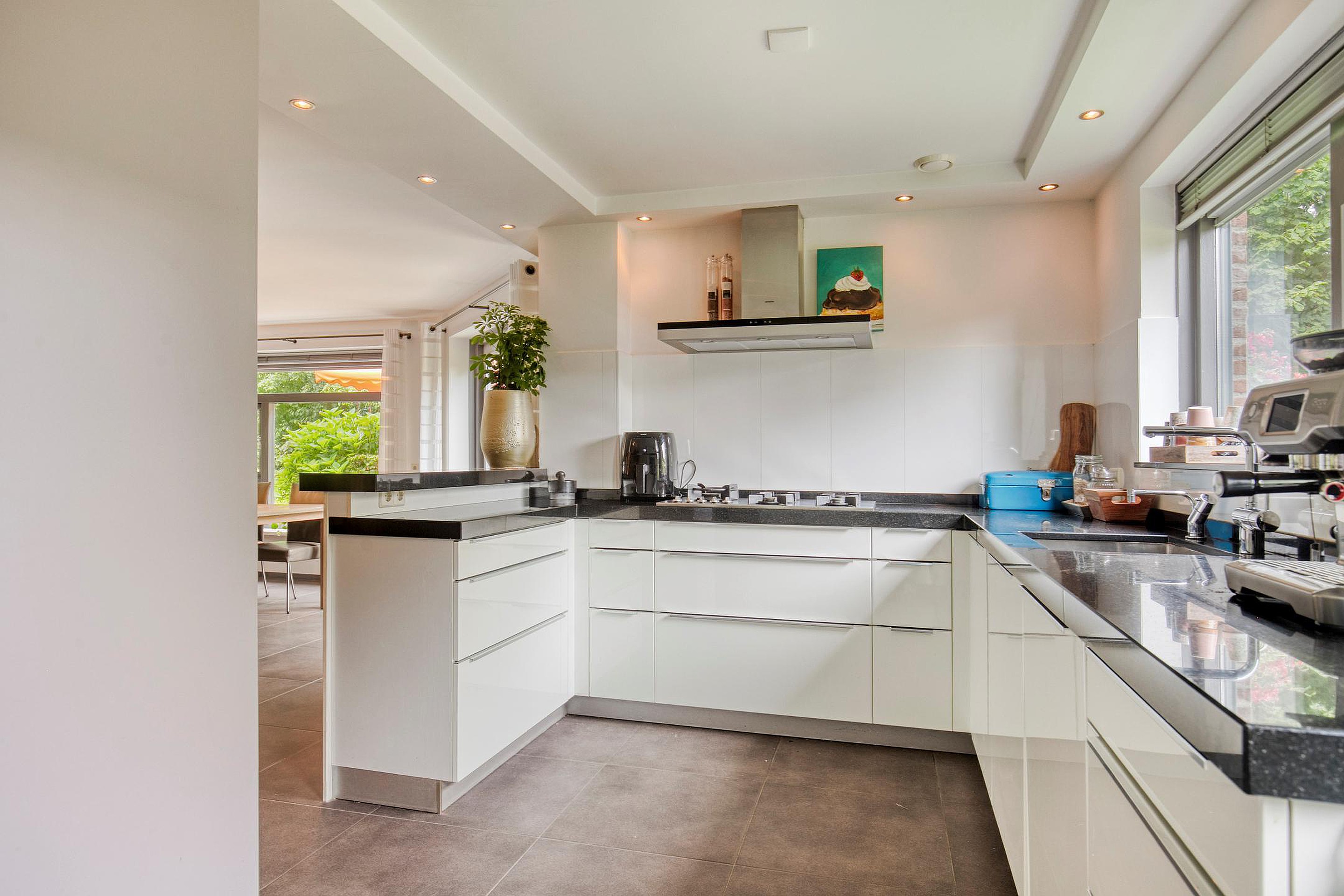 De keuken is een absolute eyecatcher: hoogglans afwerking, een granieten werkblad en luxe inbouwapparatuur. Openslaande tuindeuren leiden u rechtstreeks naar het terras en de tuin. Vanuit de woon-leefkeuken loopt u door naar de sfeervolle voorkamer, voorzien van een gashaard en grote raampartijen die de ruimte laten stralen in licht. Dubbele deuren met glas verbinden beide leefruimtes op stijlvolle wijze.