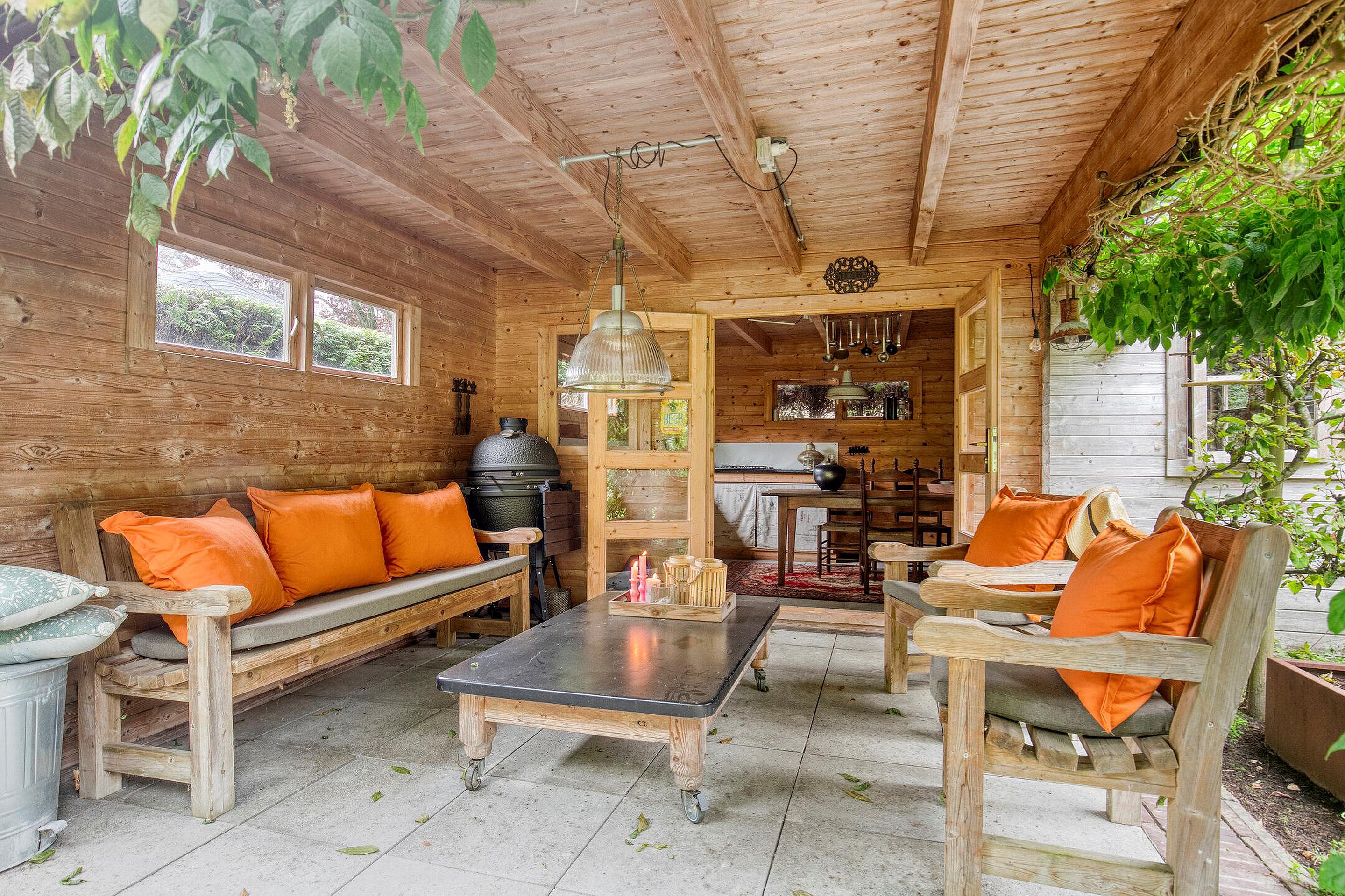 Tuin En dan de tuin… Wat een genot! Rondom de woning ligt een prachtig aangelegde, parkachtige tuin met veel privacy. Hier vindt u ruimte, groen en rust. Het houten buitenverblijf nodigt uit tot lange zomeravonden, barbecues en gezellige momenten met familie en vrienden.