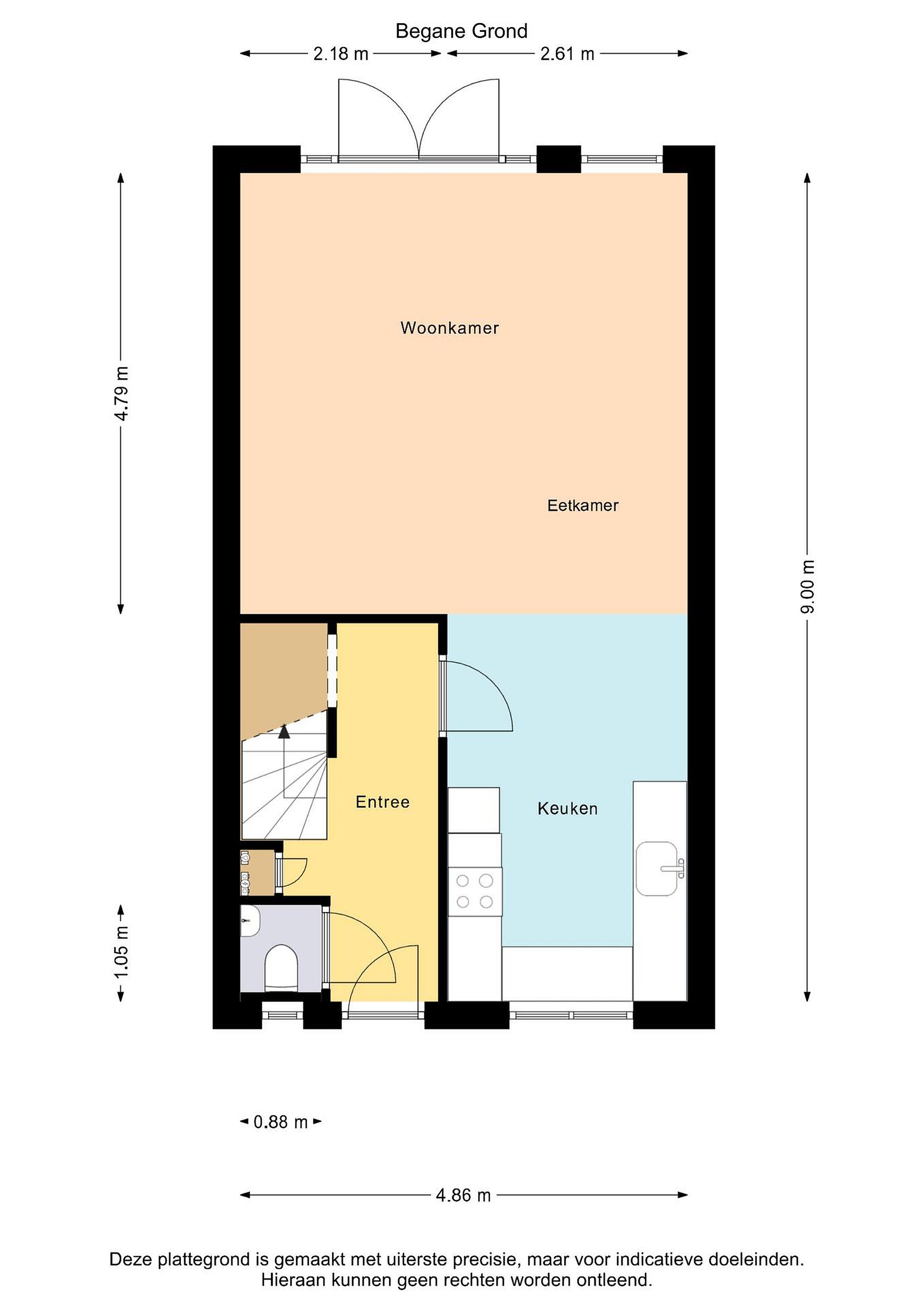 - Hal met toilet, (vernieuwde) meterkast, trapkast en toegang naar de woonkamer/keuken