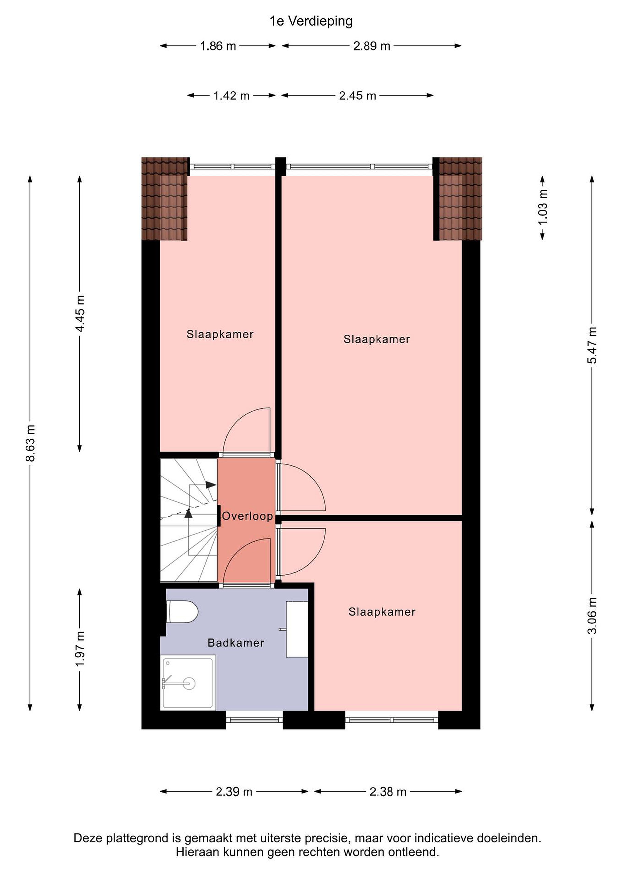 Op de verdieping vindt u een overloop, drie slaapkamers en één badkamer. De moderne badkamer is voorzien van een douchecabine, design radiator, tweede toilet, wastafelmeubel en vloerverwarming.