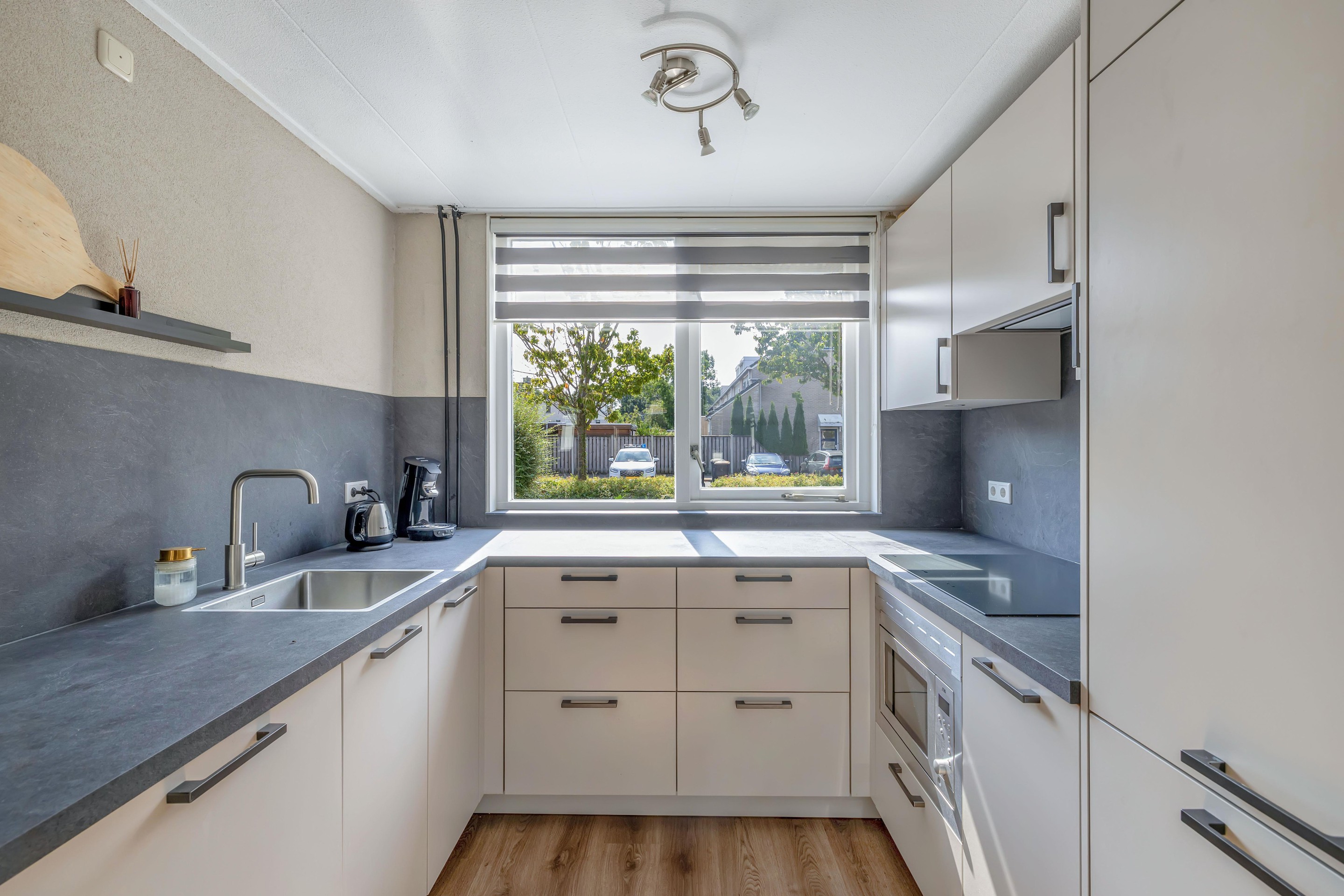 De halfopen keuken is vernieuwd in 2021, ligt aan de voorzijde en is uitgerust met een inductiekookplaat, afzuigkap, magnetron en vaatwasser.