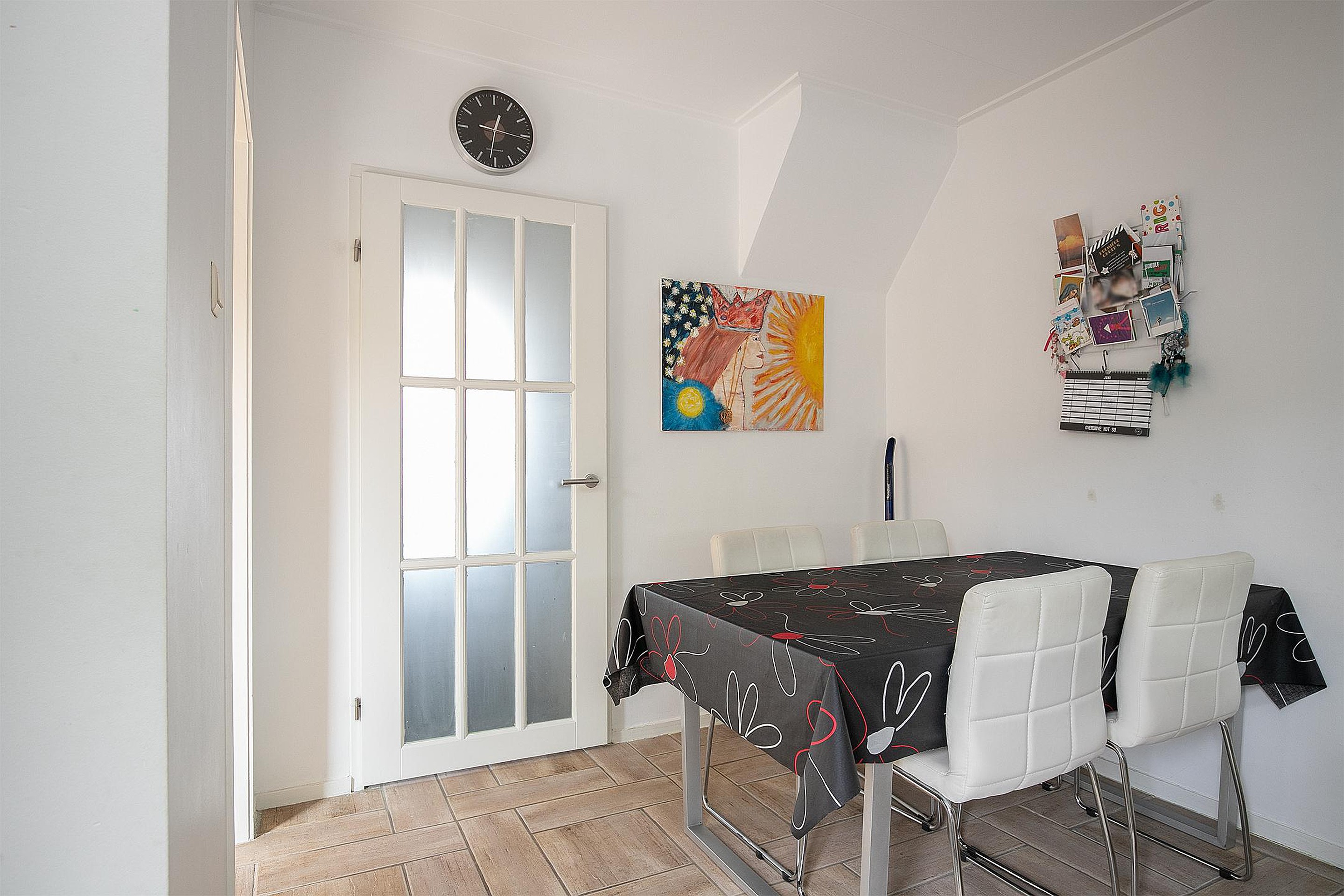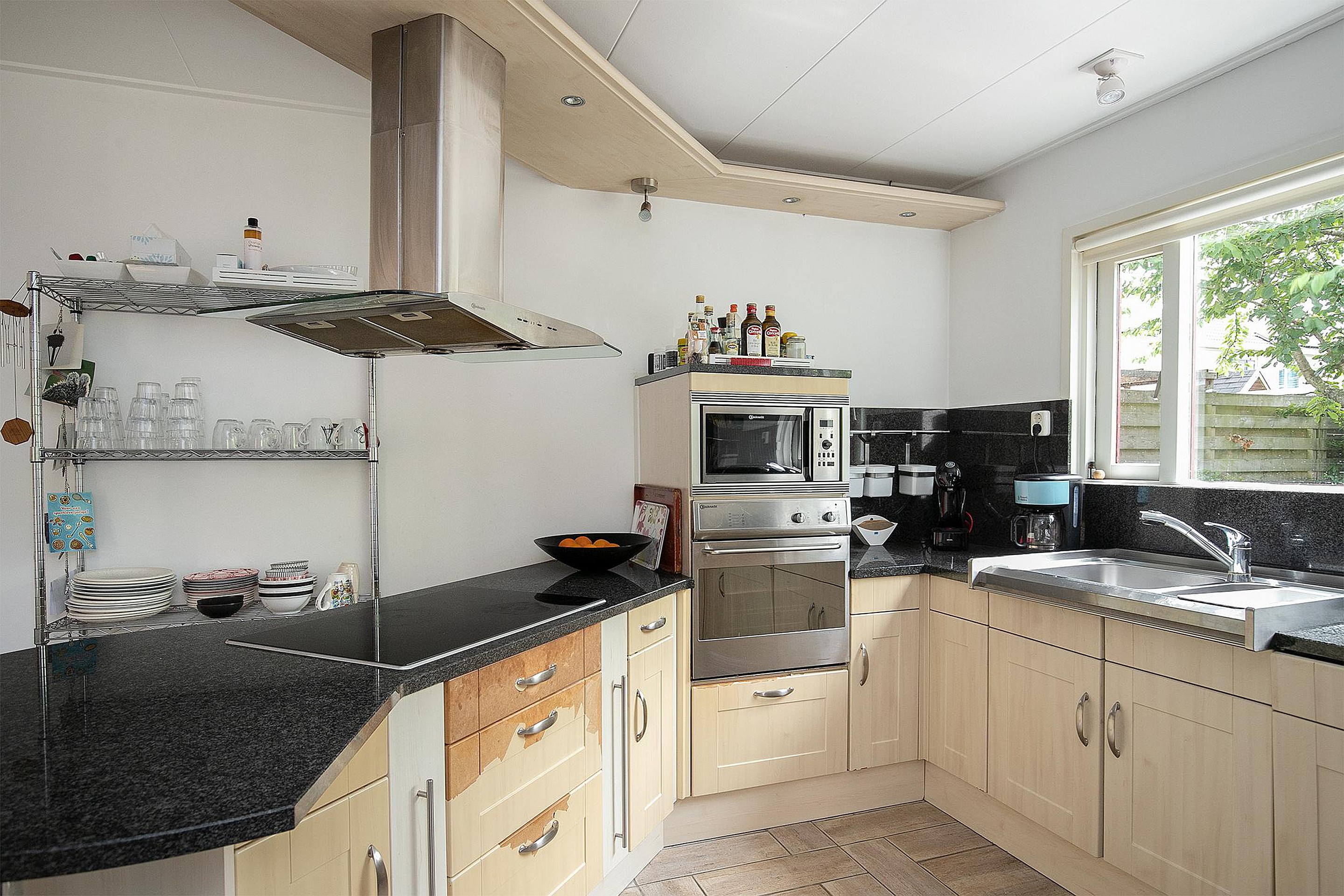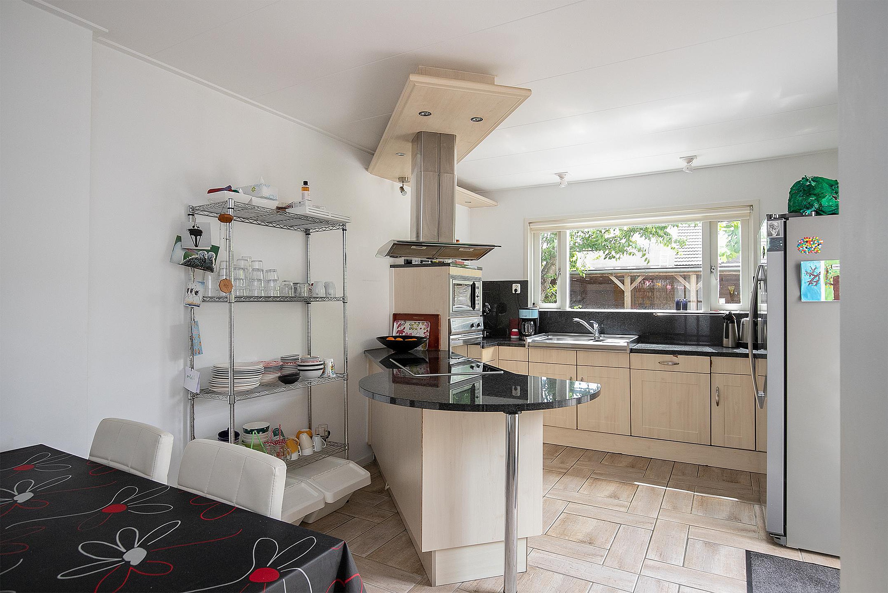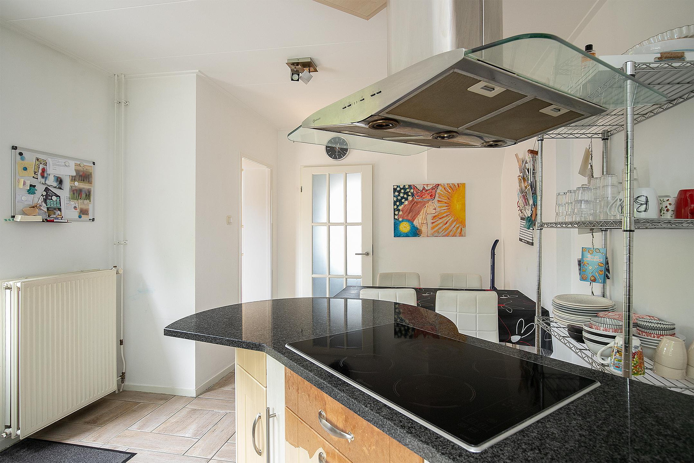-Gesloten woonkeuken in de voormalige garage, voorzien van hoekopstelling met oven, magnetron, inductiekookplaat, afzuigkap, koelkast/vriezer en vaatwasser. Vanuit de keuken directe toegang tot de tuin.
