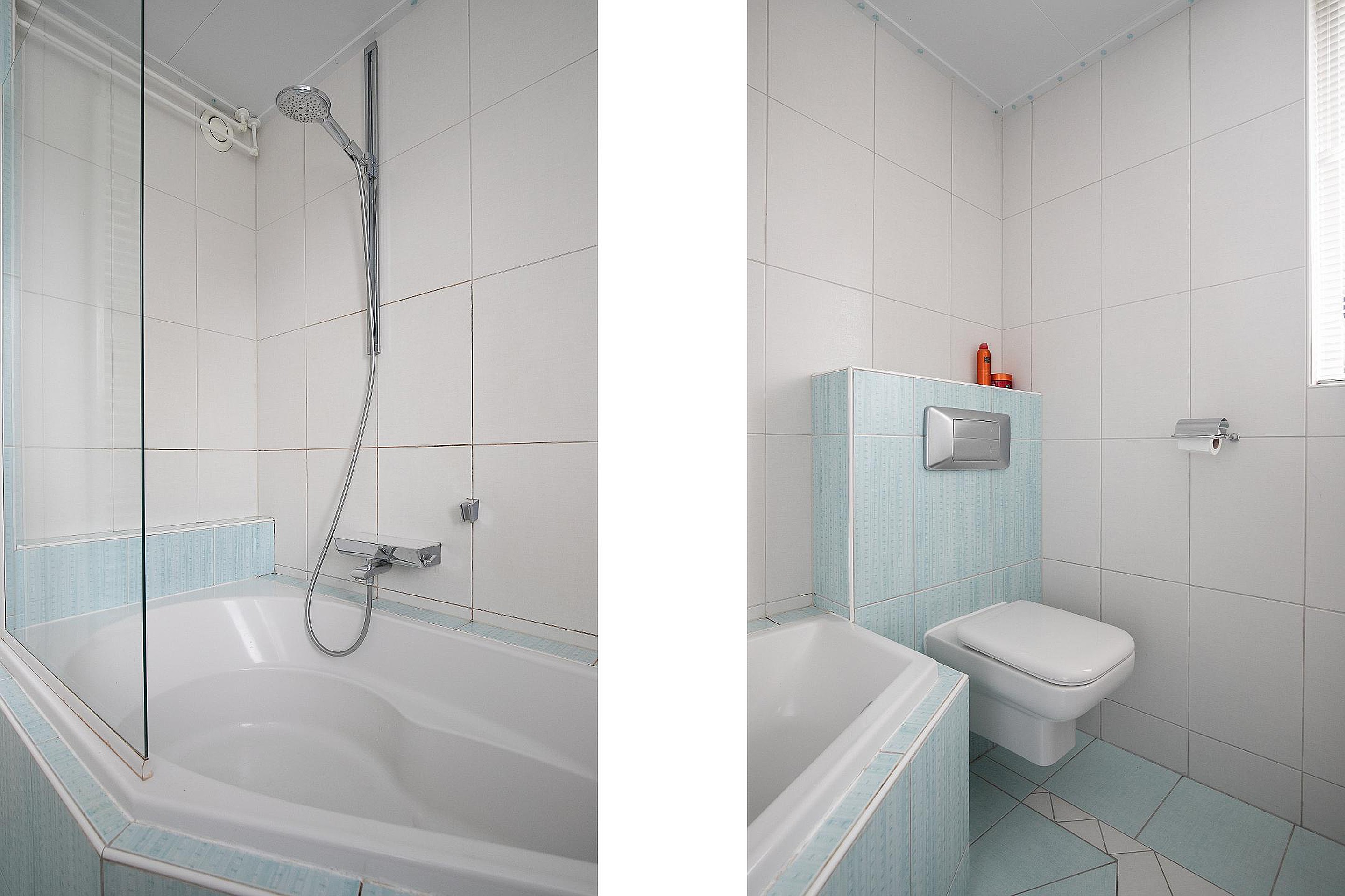 -Badkamer met douchehoek, wastafelmeubel en tweede toilet.