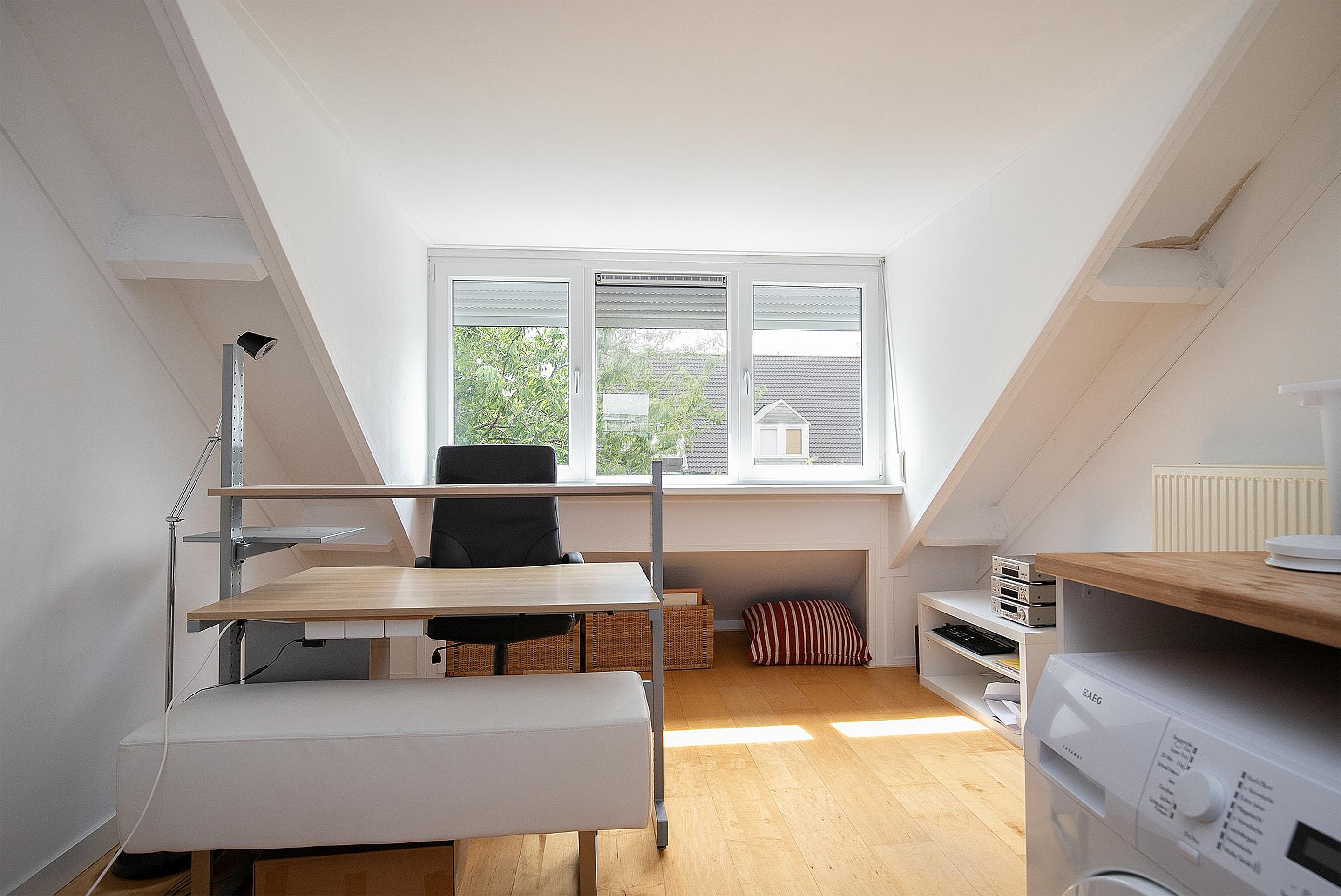 -Ruime slaapkamer met groot dakkapel en ingebouwde boekenkast. Hier bevinden zich tevens de aansluitingen voor witgoed en de CV-ketel (2013).