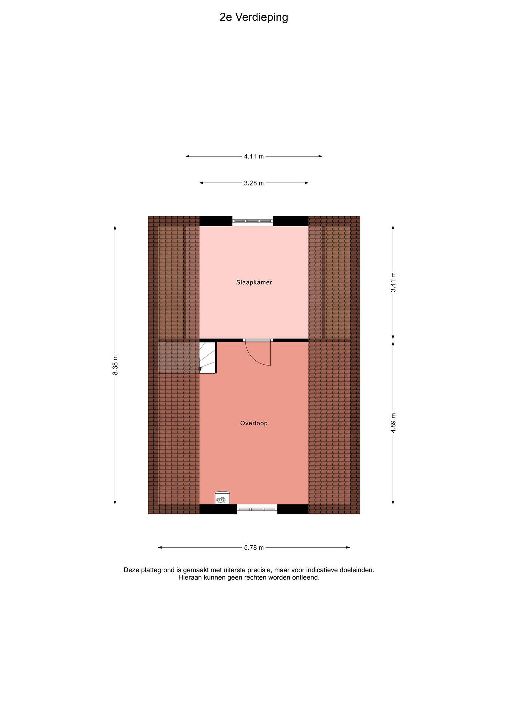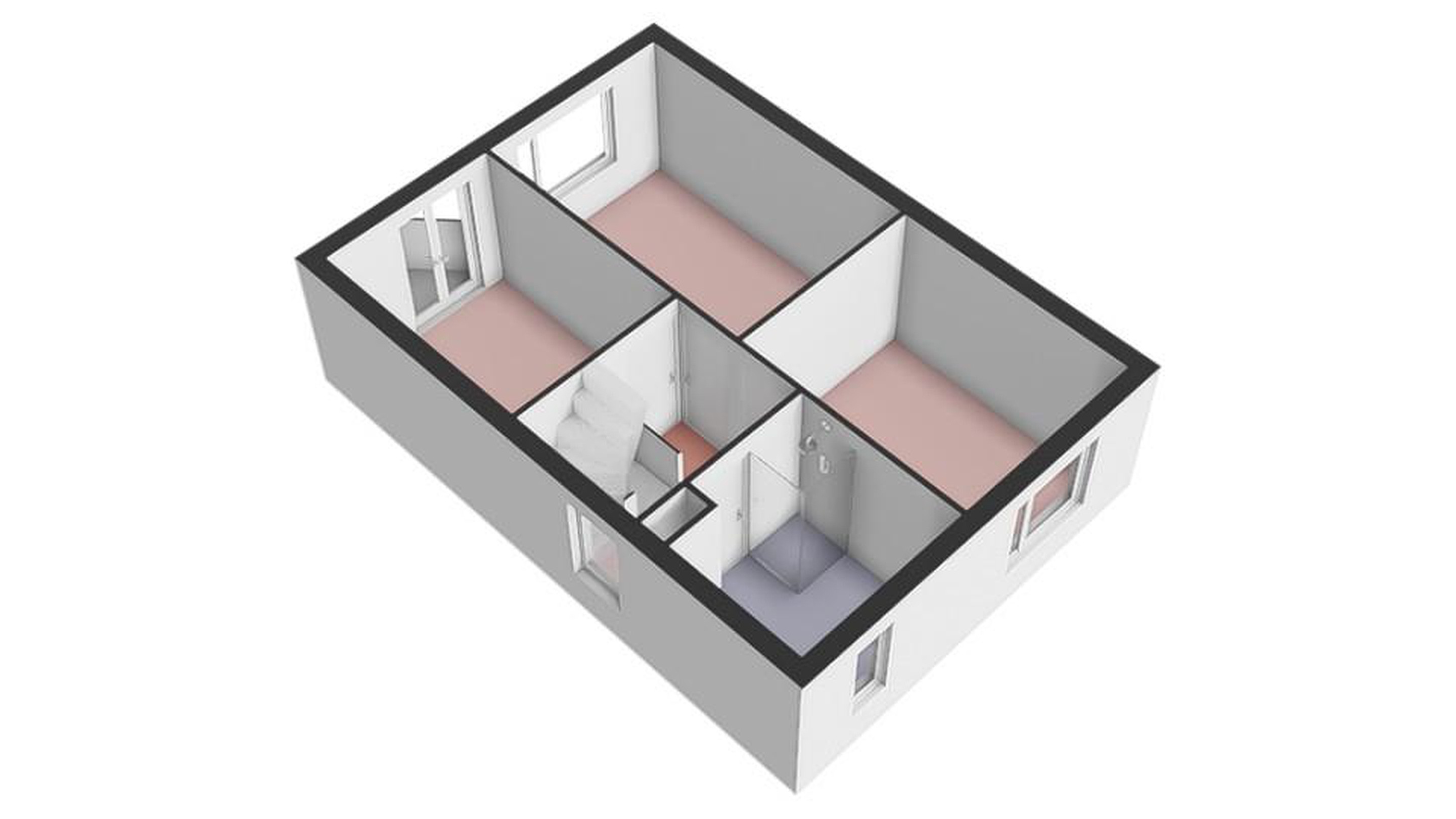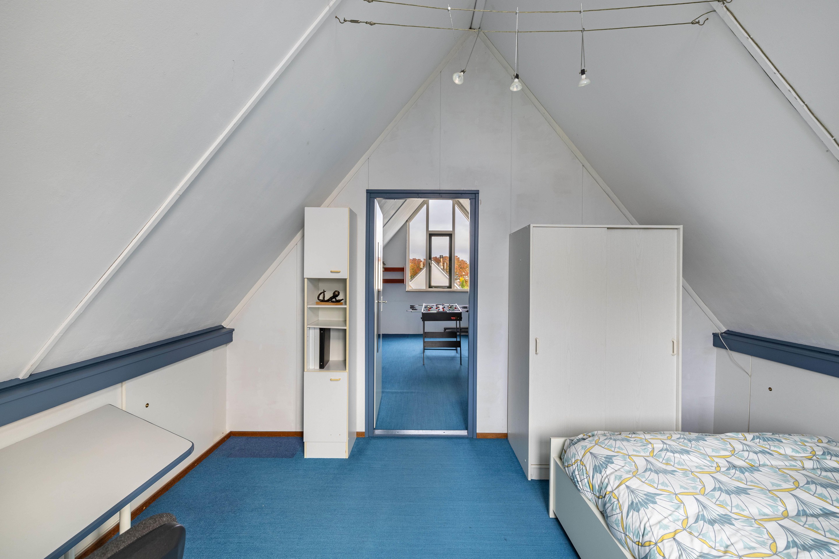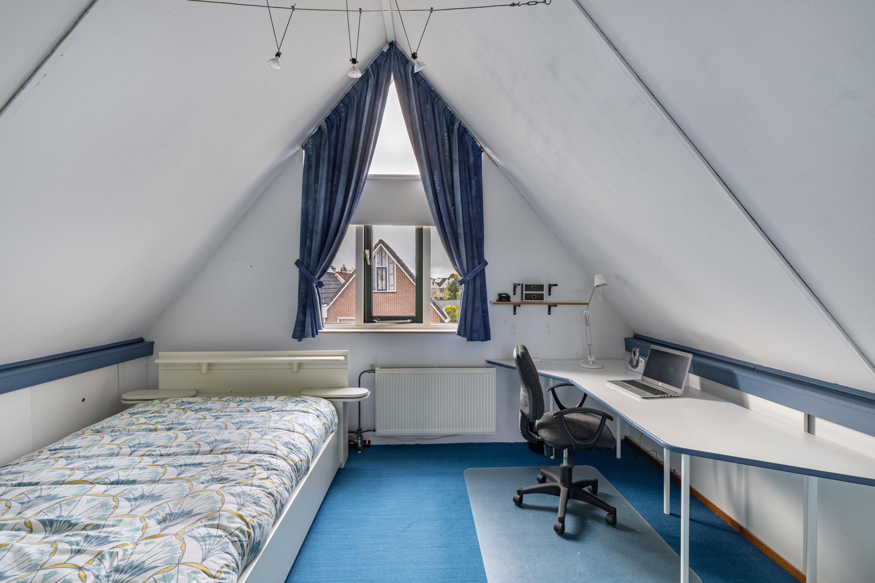 Op de tweede verdieping is nog een slaapkamer aanwezig en een grote overloop. Deze verdieping is bereikbaar via een vaste trap. Vanwege de knieschotten is hier erg veel bergruimte en er is eventueel de mogelijkheid om nog een slaapkamer te creëren.