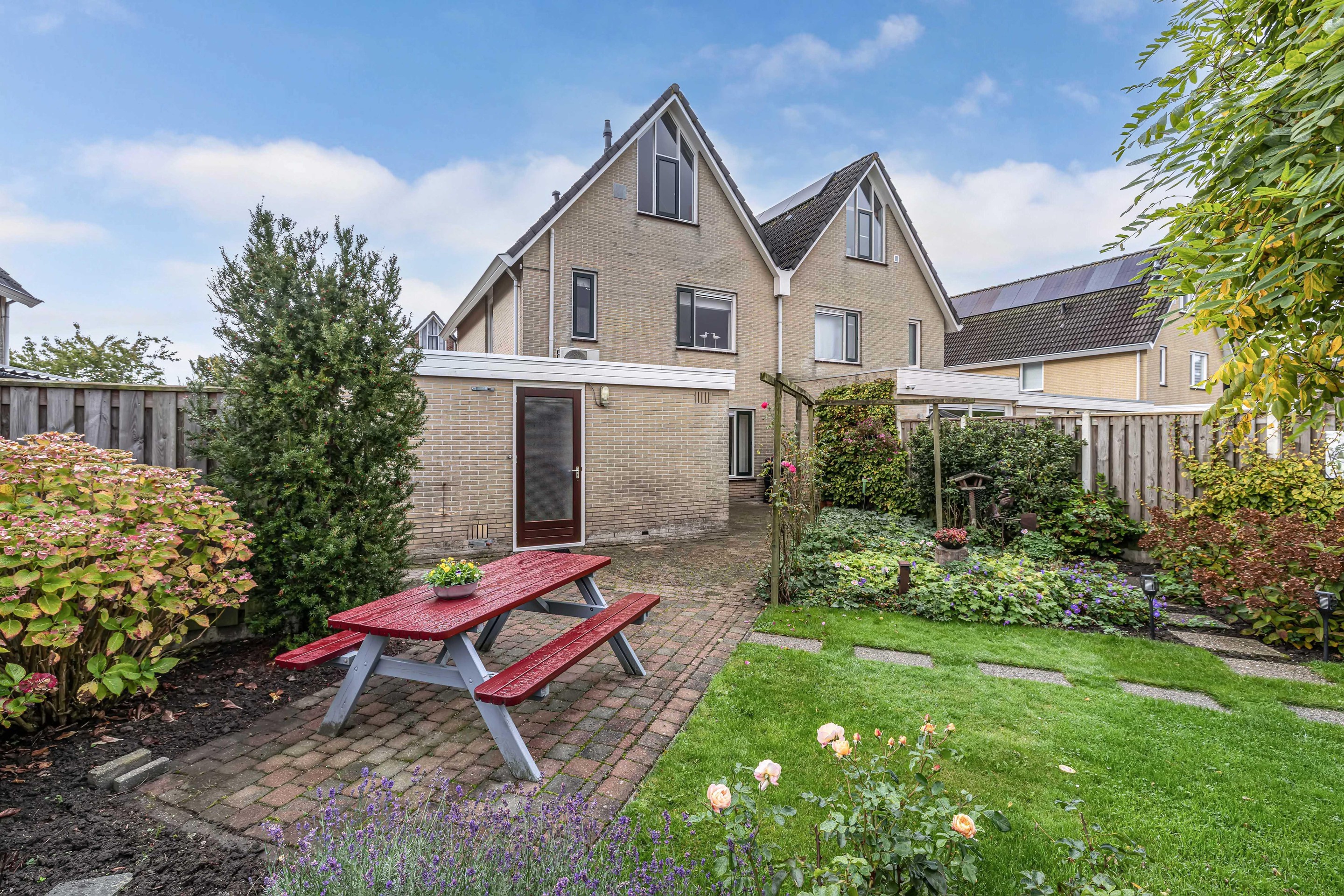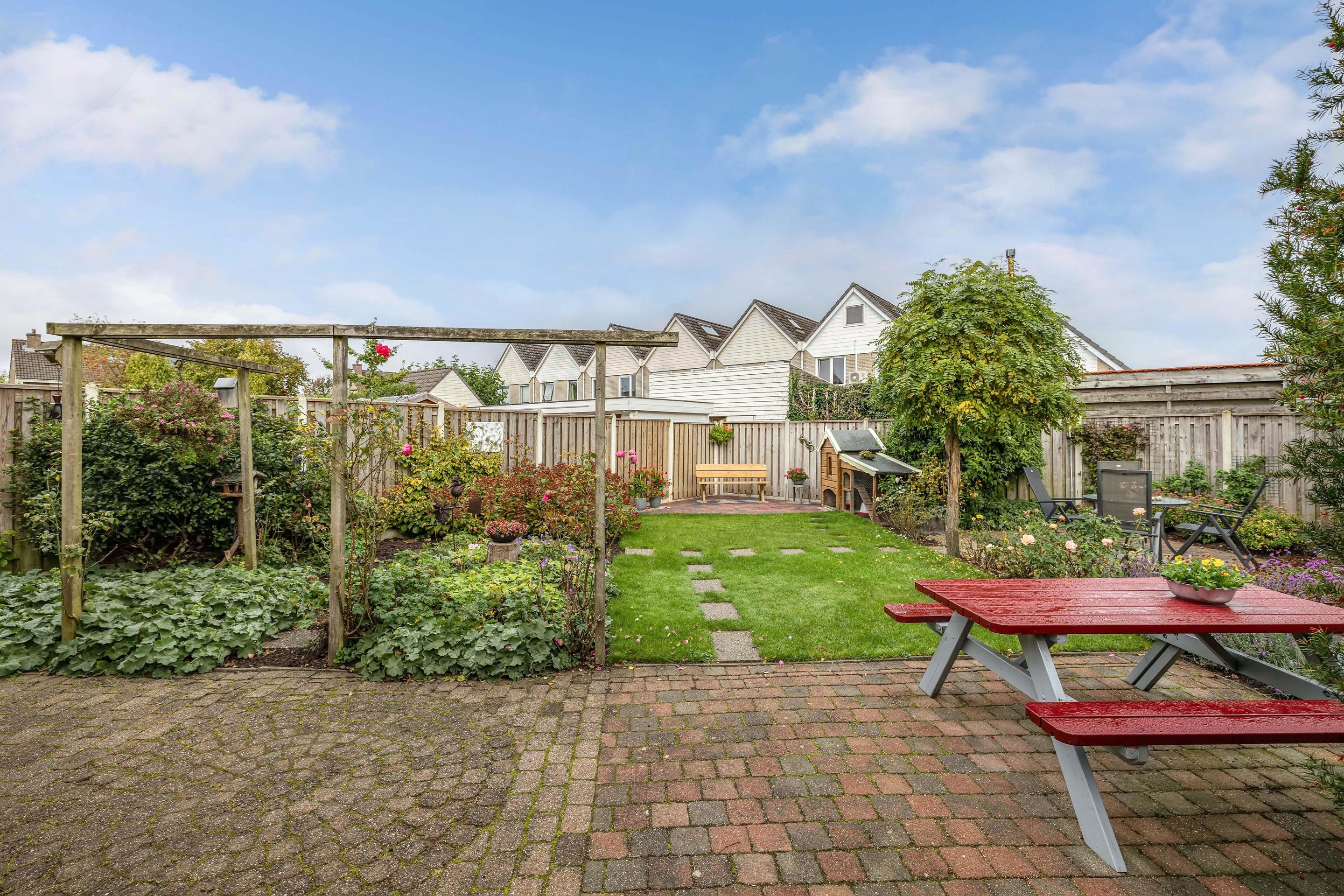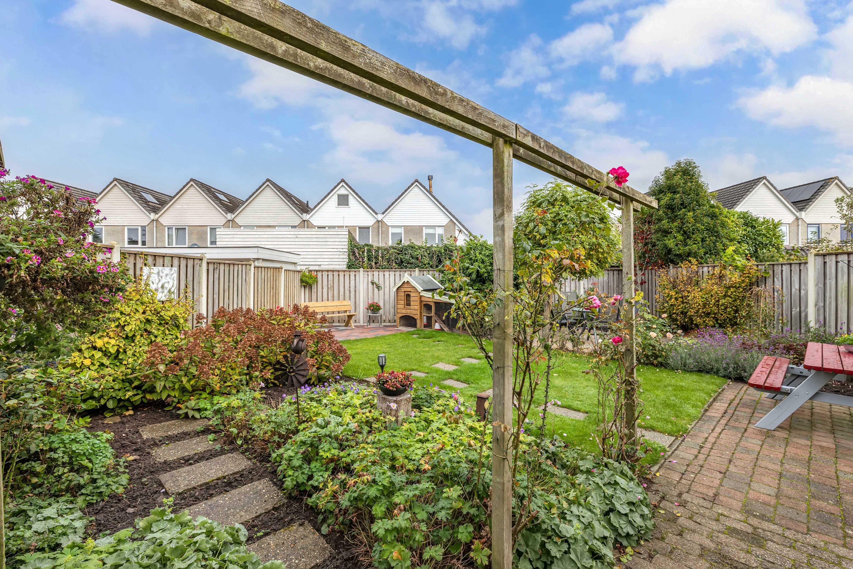 De ruime tuin is keurig aangelegd en goed onderhouden. De achtertuin ligt op het noorden, er zijn meerdere plekjes ingericht om lekker in de ochtend- of avondzon te zitten. Aan de zijkant is ook een stuk tuin waarmee je buitenom naar de voorzijde van de woning kunt gaan. Voor de garage is een oprit aanwezig waarop je twee auto’s kunt parkeren. In de straat is er ook nog genoeg parkeergelegenheid.