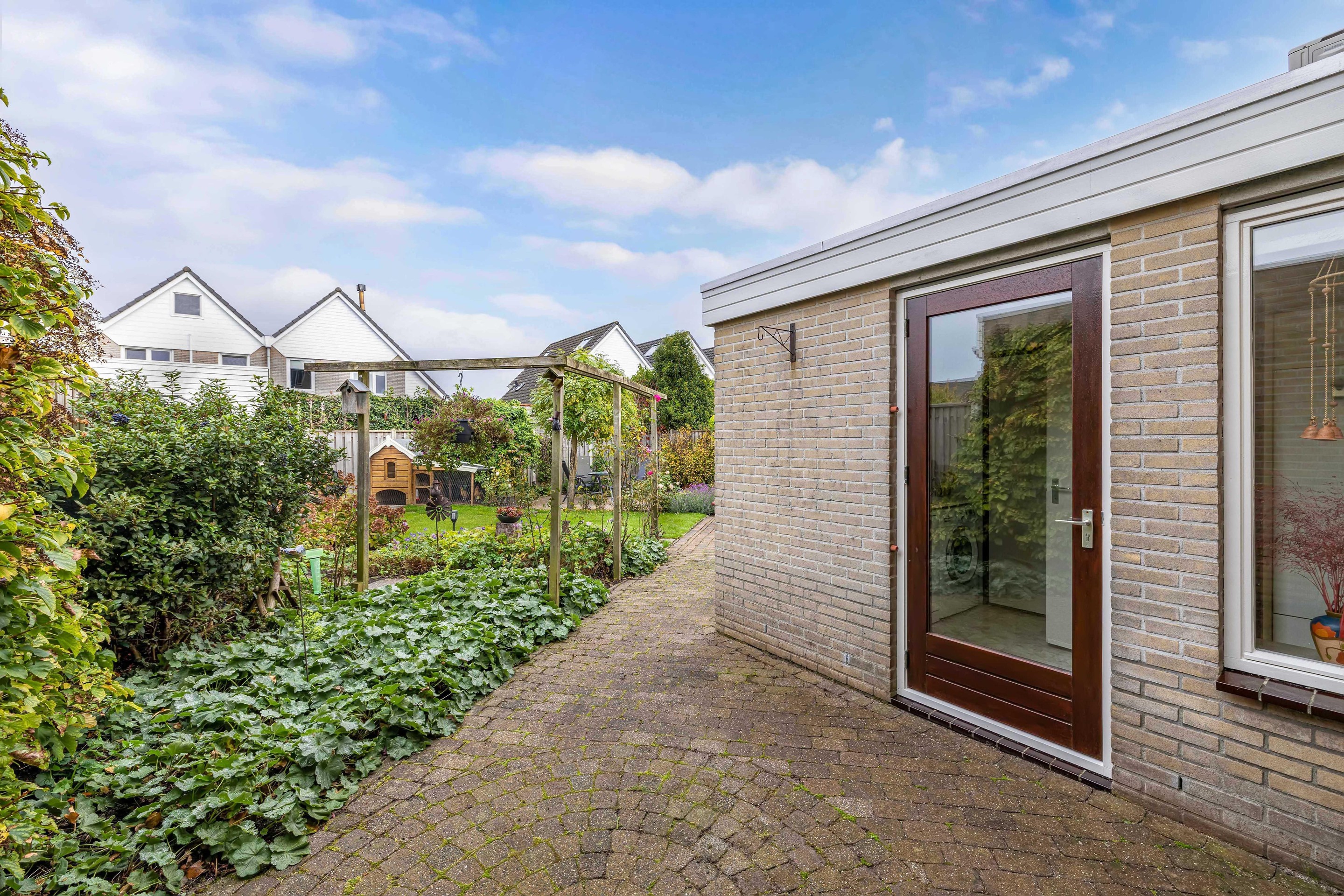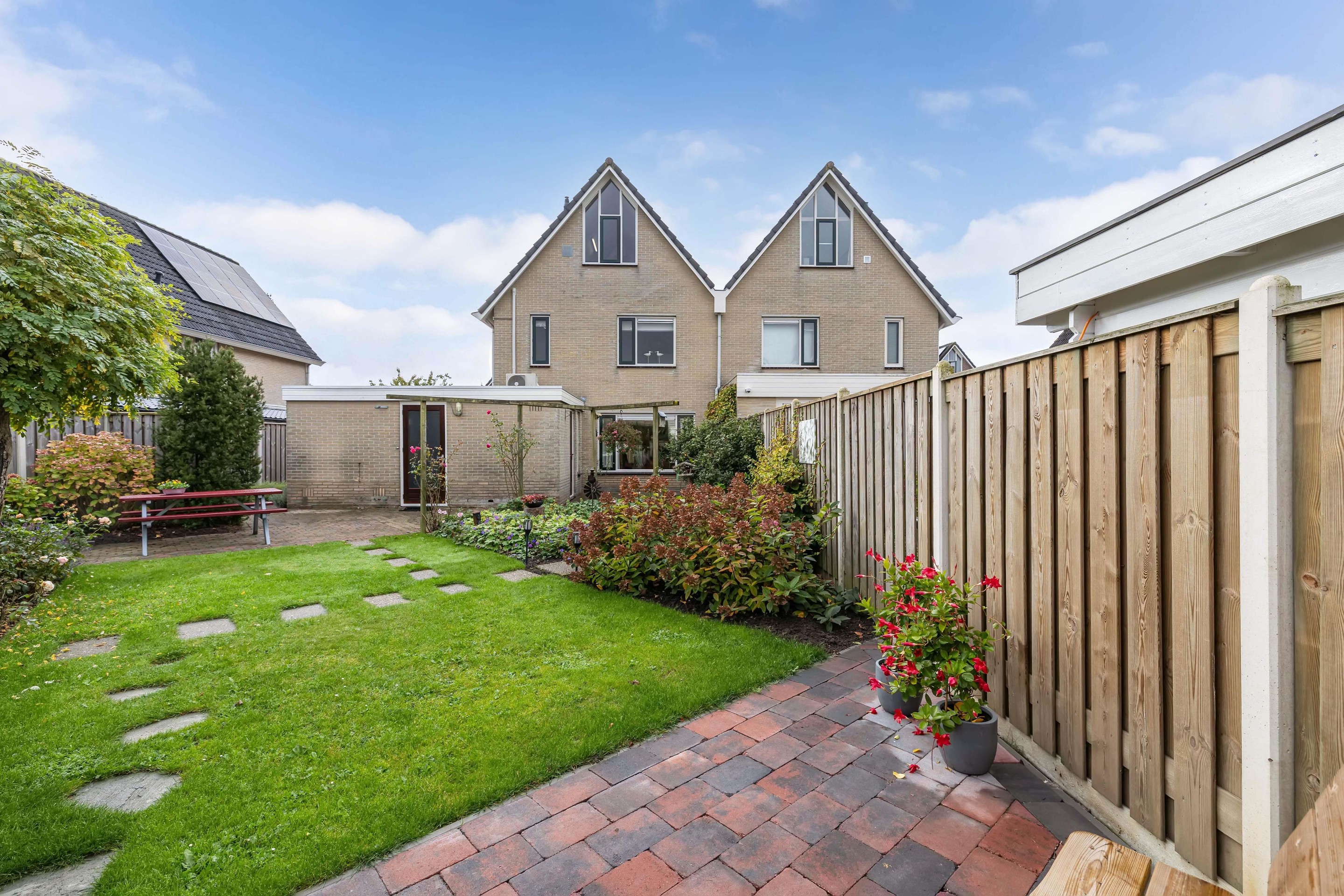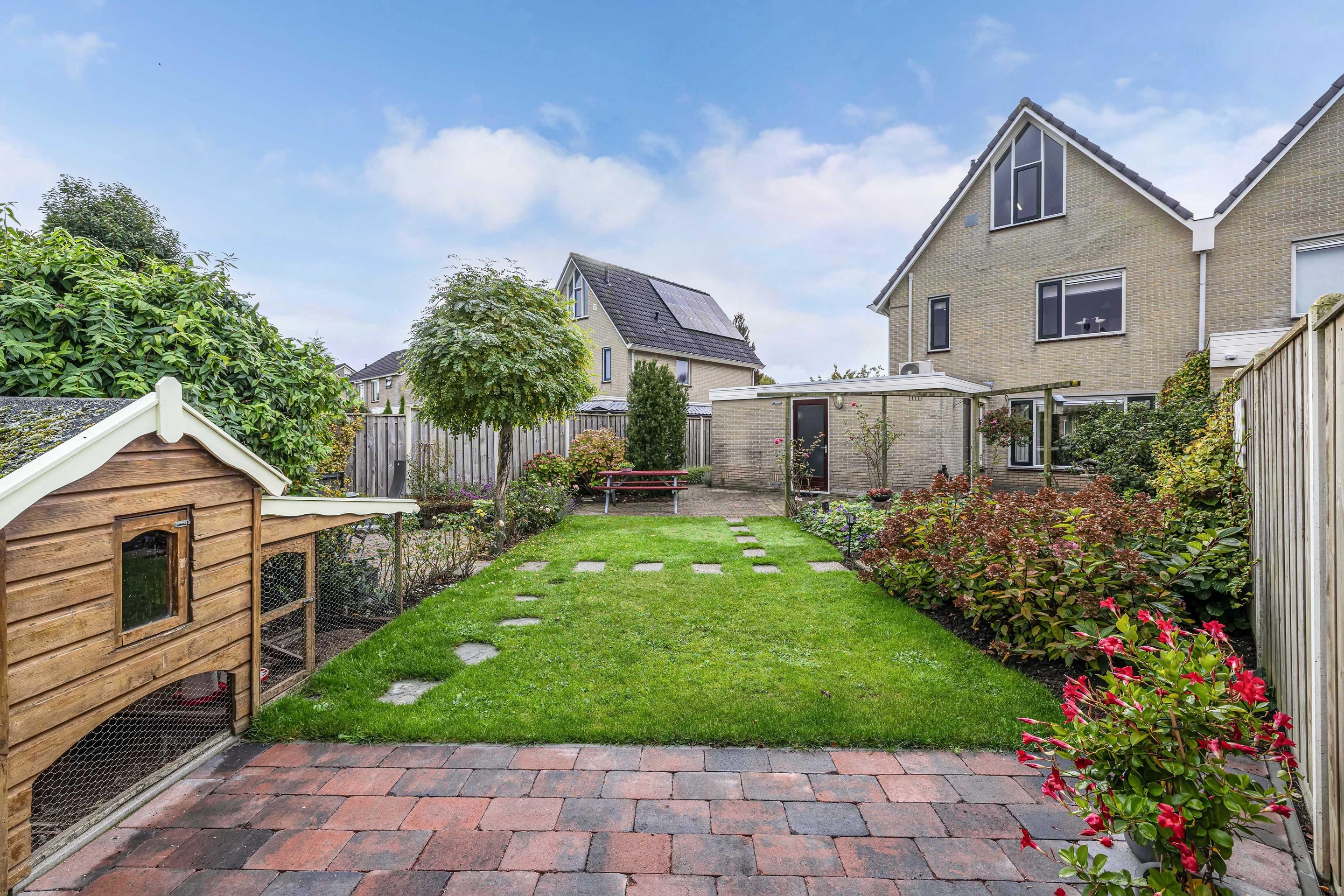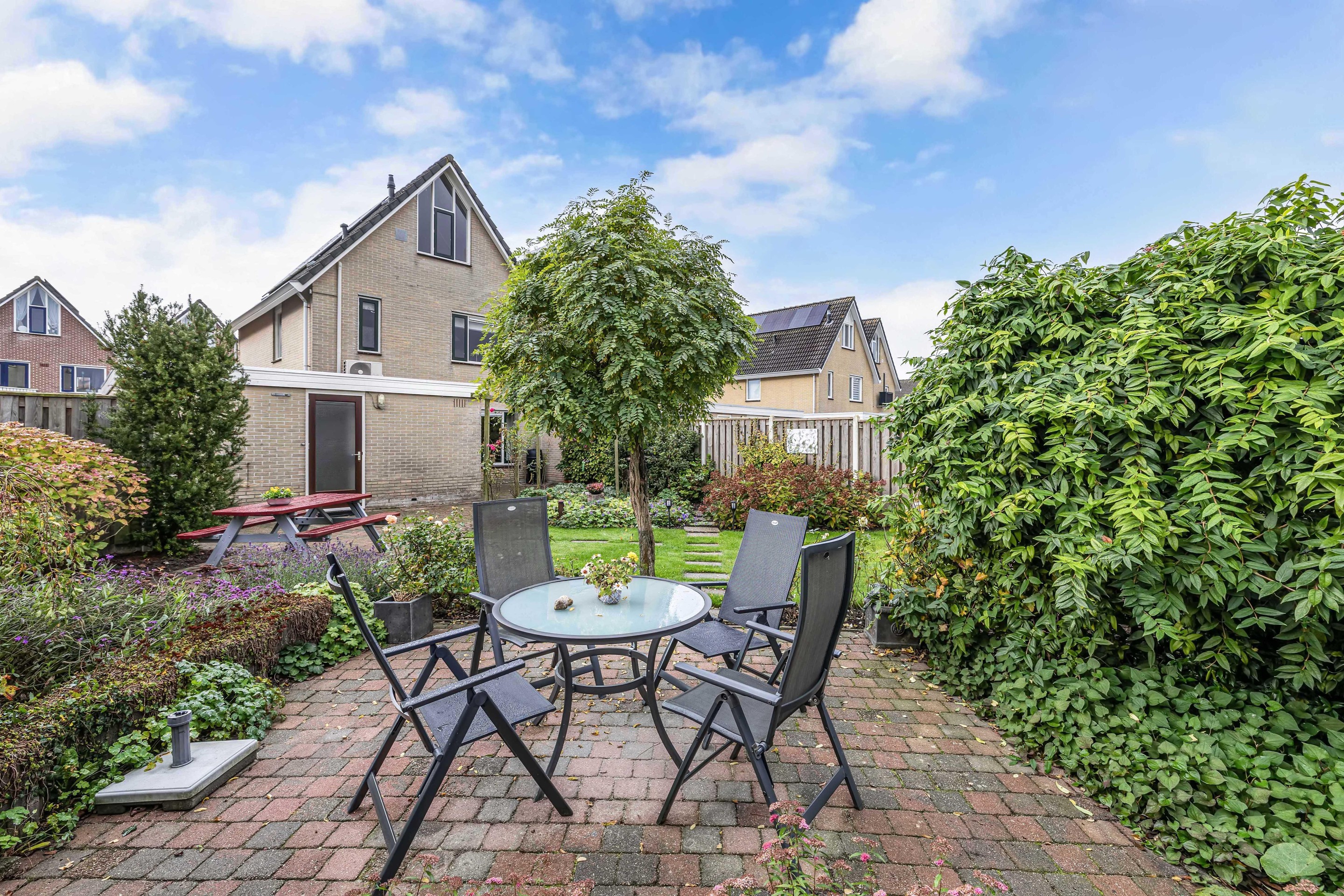 De ruime tuin is keurig aangelegd en goed onderhouden. De achtertuin ligt op het noorden, er zijn meerdere plekjes ingericht om lekker in de ochtend- of avondzon te zitten. Aan de zijkant is ook een stuk tuin waarmee je buitenom naar de voorzijde van de woning kunt gaan. Voor de garage is een oprit aanwezig waarop je twee auto’s kunt parkeren. In de straat is er ook nog genoeg parkeergelegenheid.