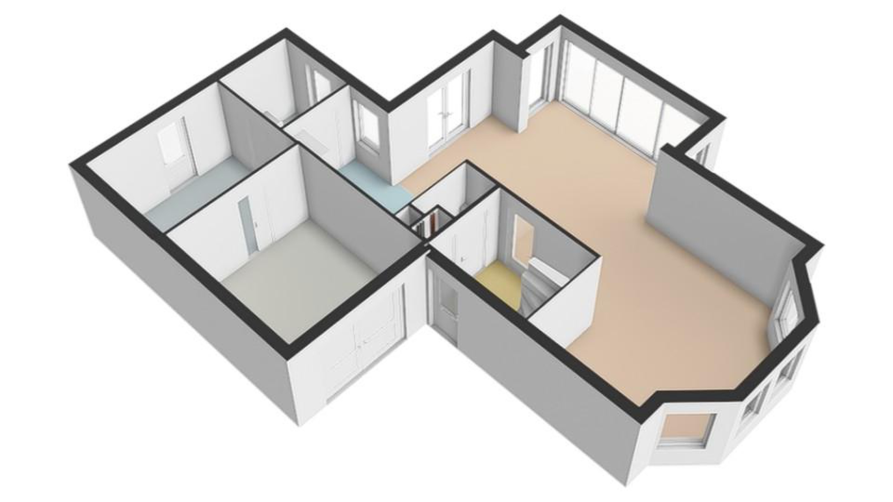 - Drie in grootte variërende slaapkamers