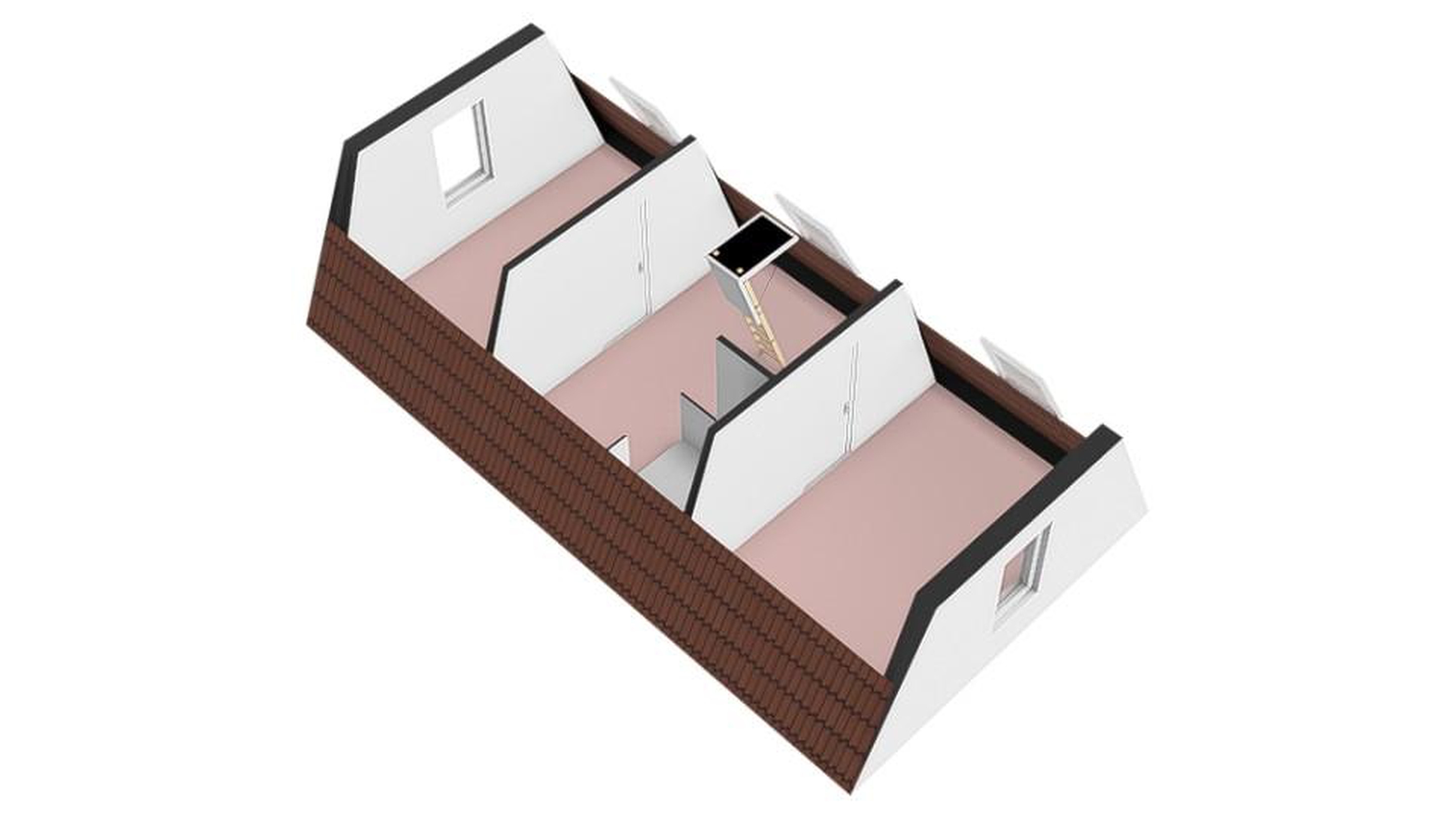 - Nieuwe dakramen geplaatst en twee slaapkamers en installatieruimte gecreëerd