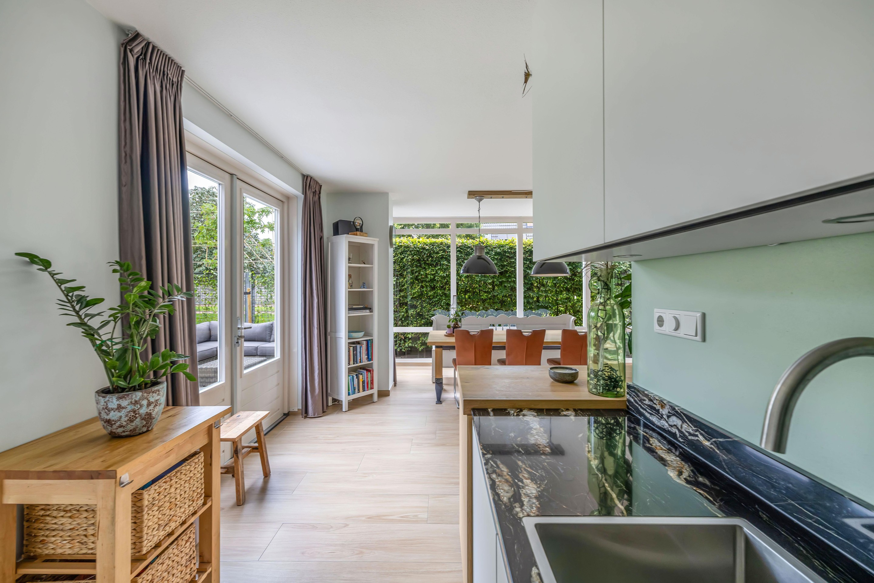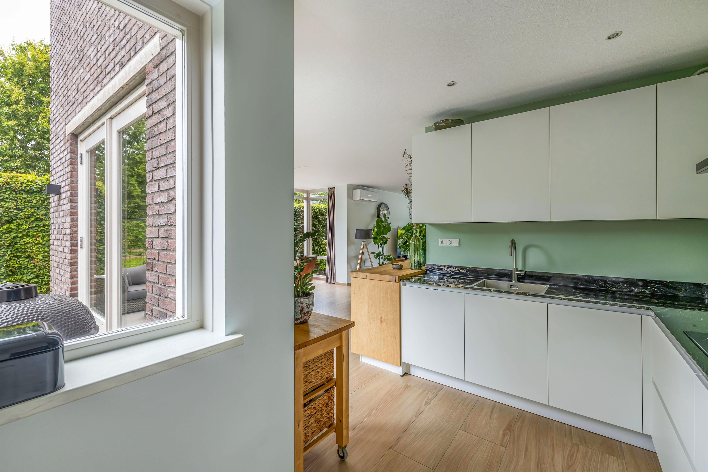 Aansluitend bieden twee praktische bijkeukens volop ruimte voor was, voorraad en opslag. Op de benedenverdieping is overal HR++ glas aanwezig.