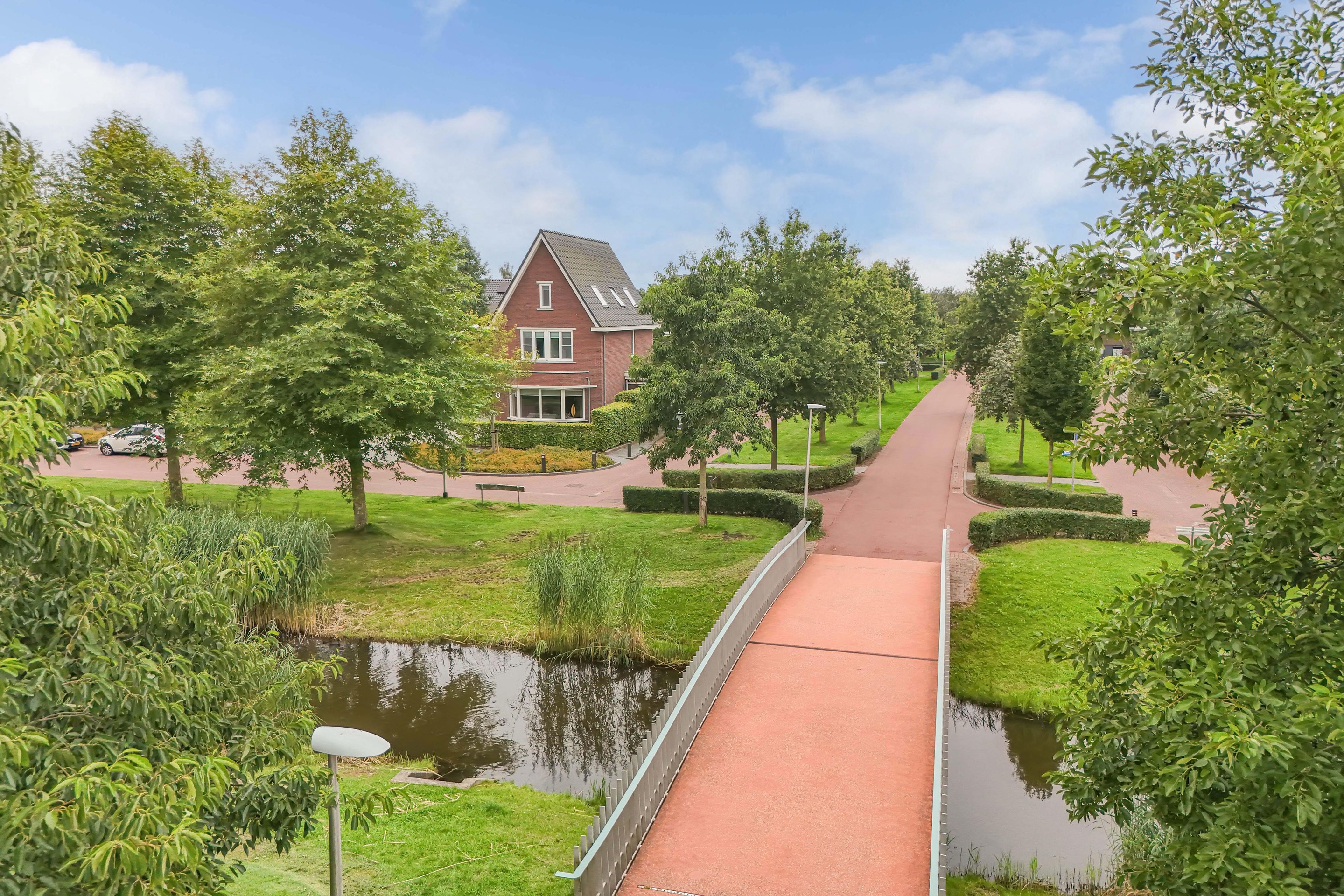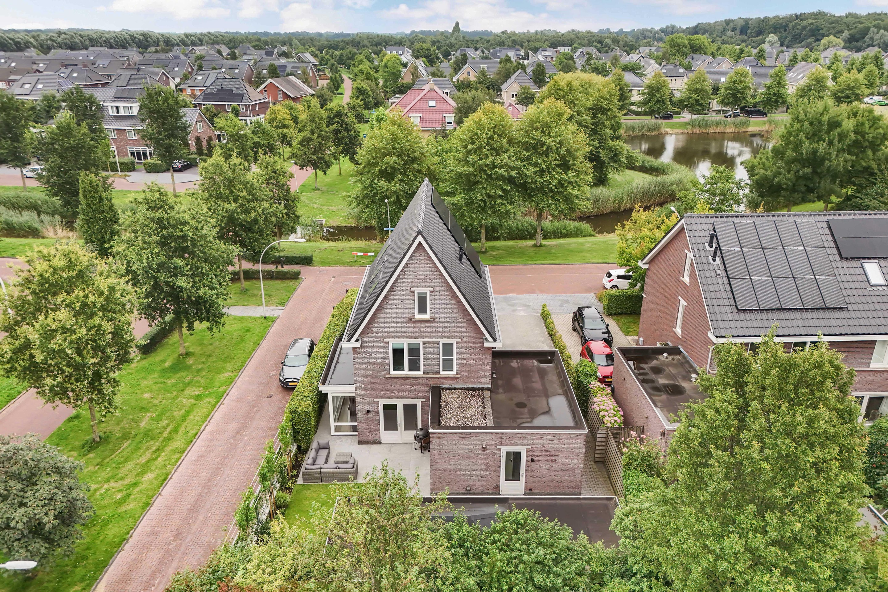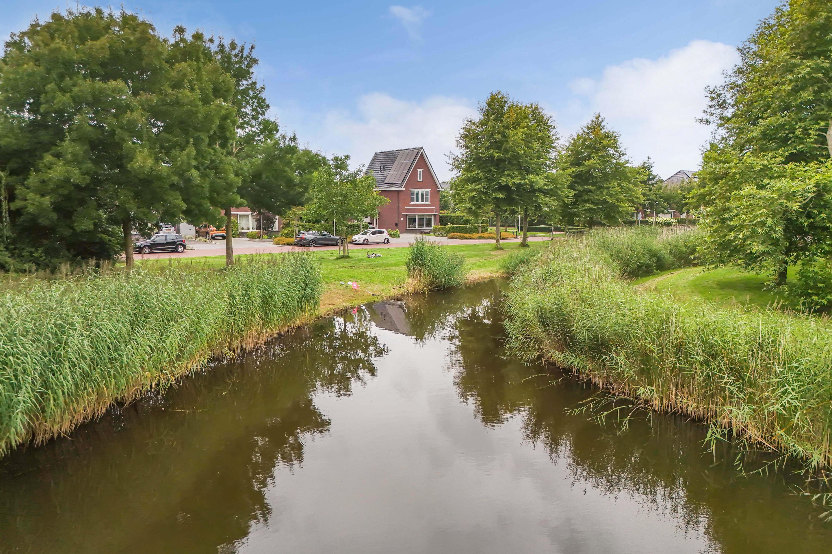Aan de voorzijde liggen groenstroken en een waterpartij. Dus ook aan deze kant volop vrijheid!
