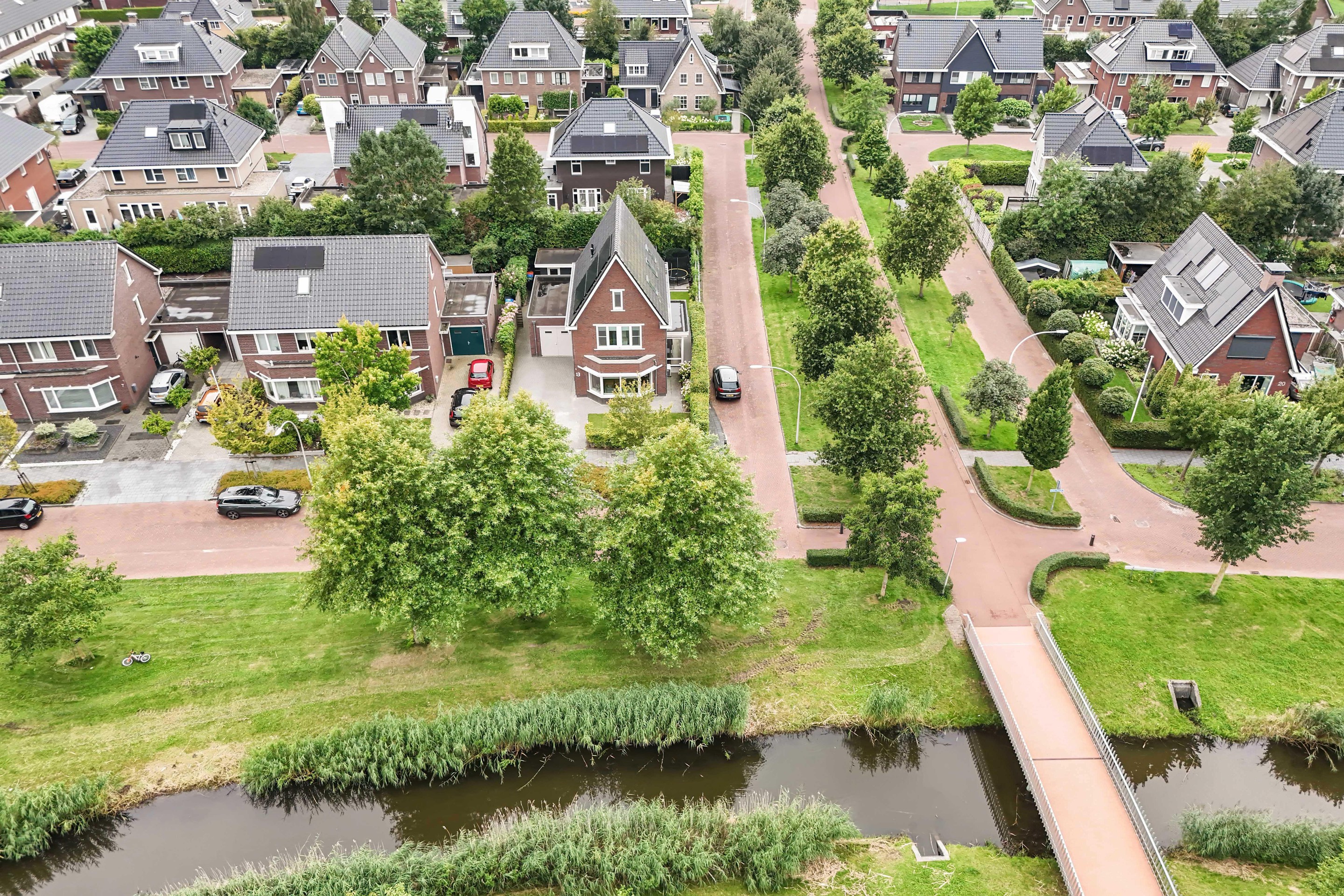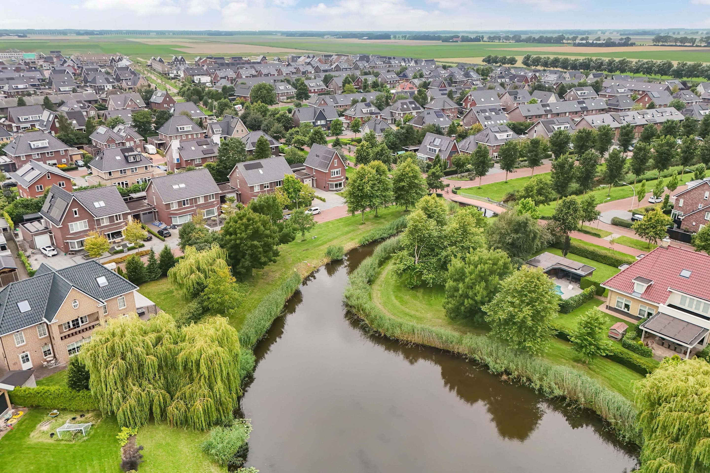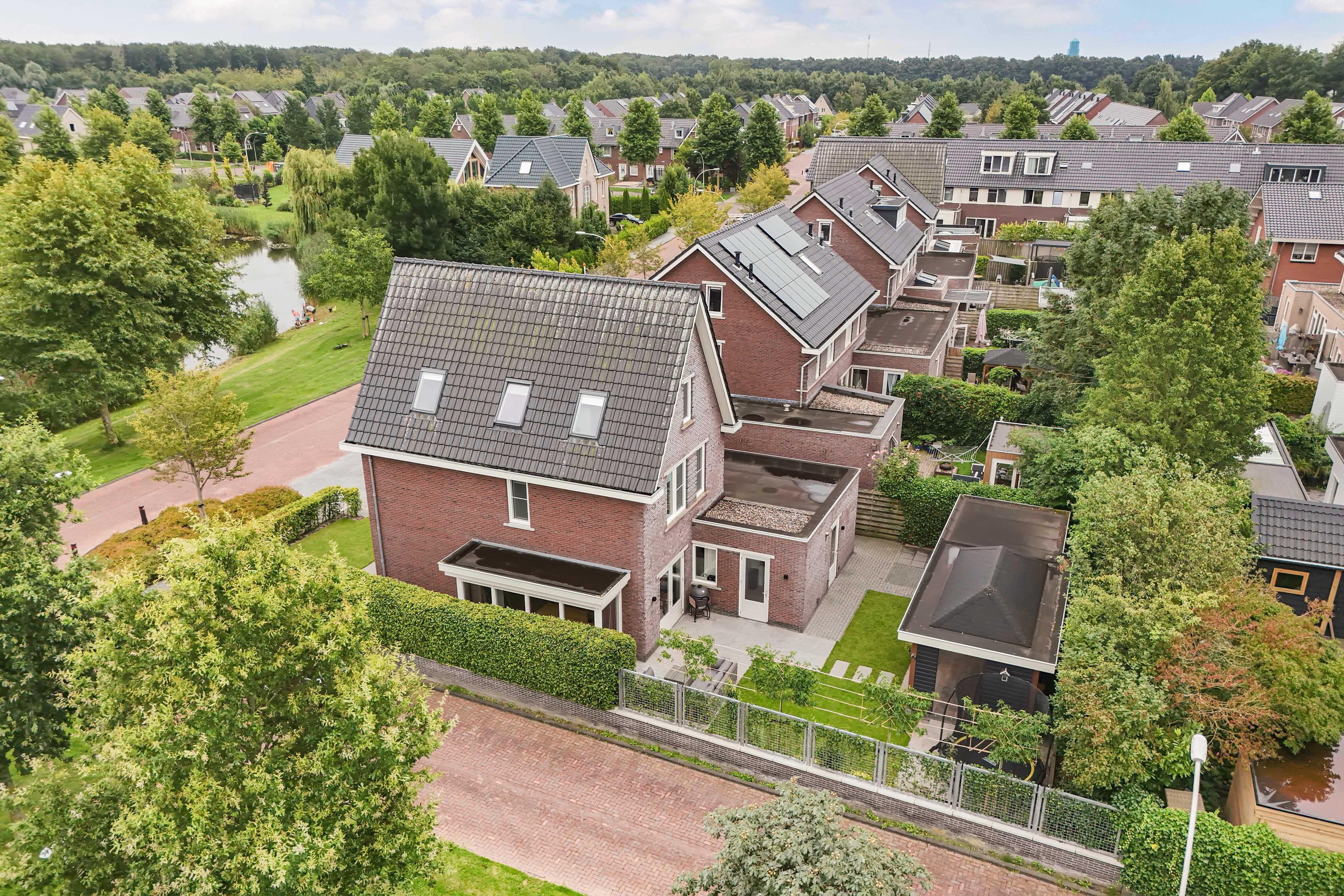 Aan de voorzijde liggen groenstroken en een waterpartij. Dus ook aan deze kant volop vrijheid!
