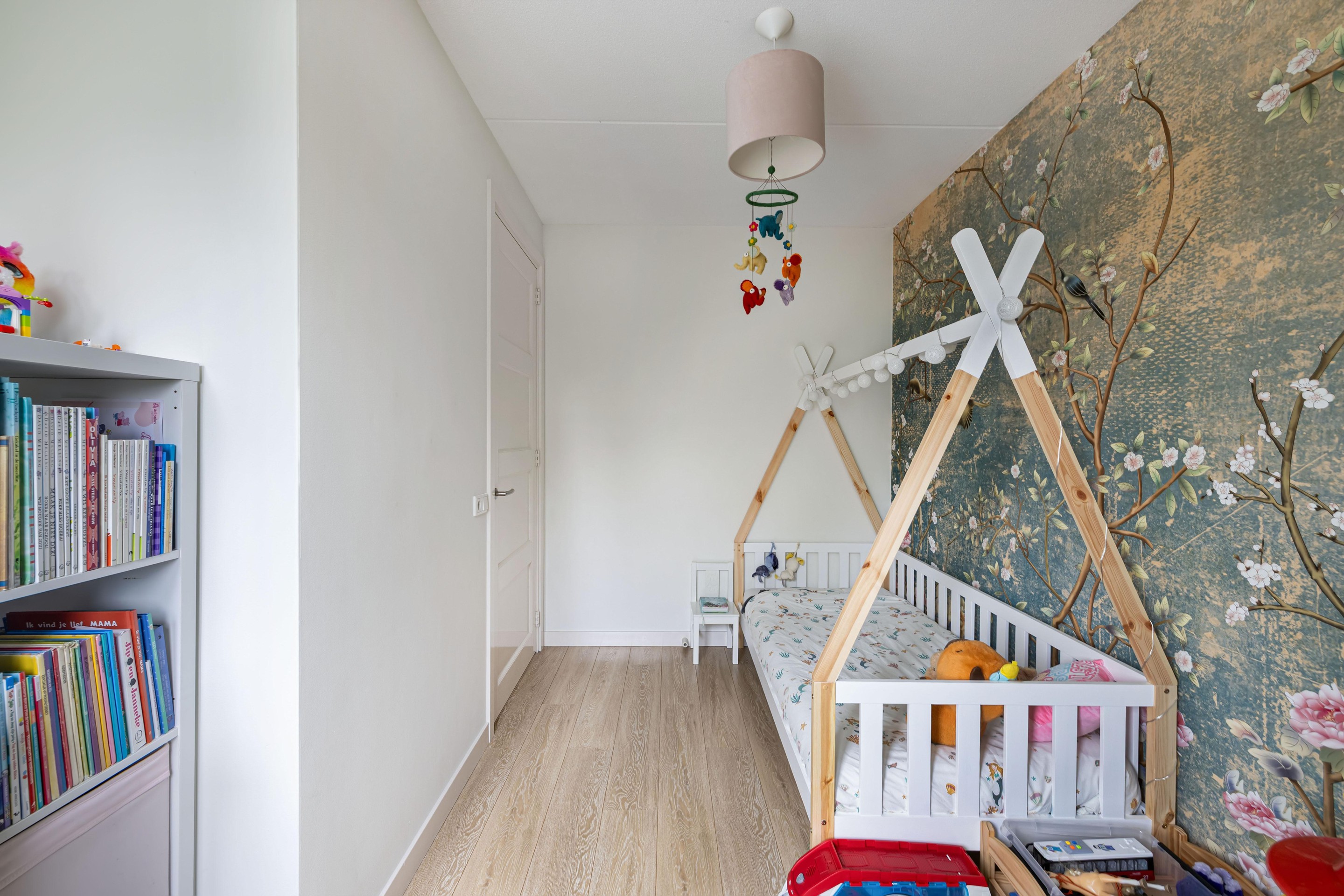 Op de eerste verdieping vind je drie slaapkamers en een moderne badkamer (2023). De badkamer is voorzien van vloerverwarming, een inloopdouche, tweede toilet en een dubbele wastafel.