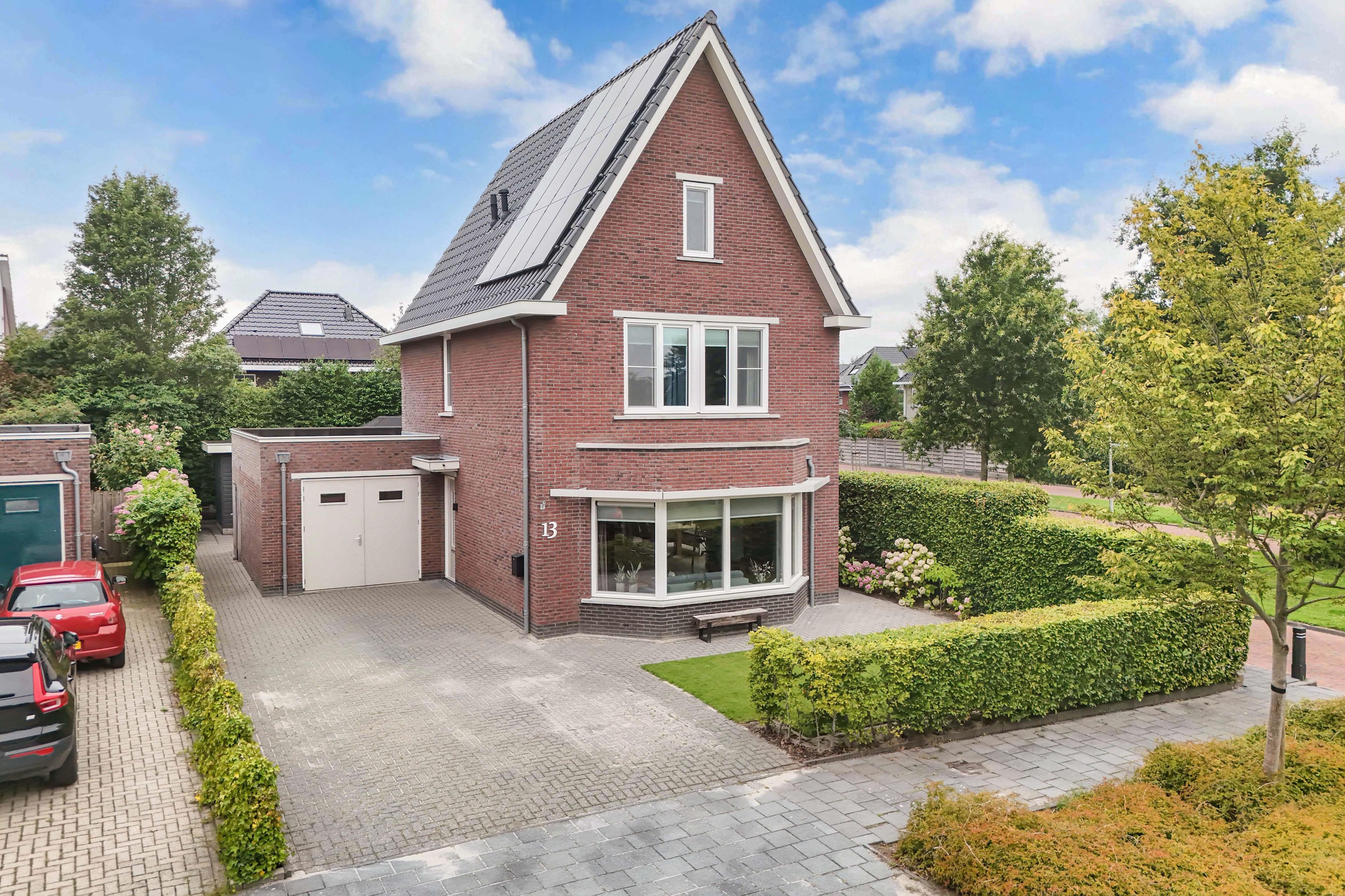 Bij aankomst valt meteen de ruime oprit op, geschikt voor twee auto’s, en de stenen garage aan huis. Dankzij de erker met grote raampartij geniet de woonkamer van veel lichtinval. De doorzonwoonkamer heeft een keramische vloer met houtlook (2023), vloerverwarming over de gehele beneden verdieping, airco en openslaande deuren naar de tuin. Er is plek voor een grote eettafel waar het hele gezin samenkomt.