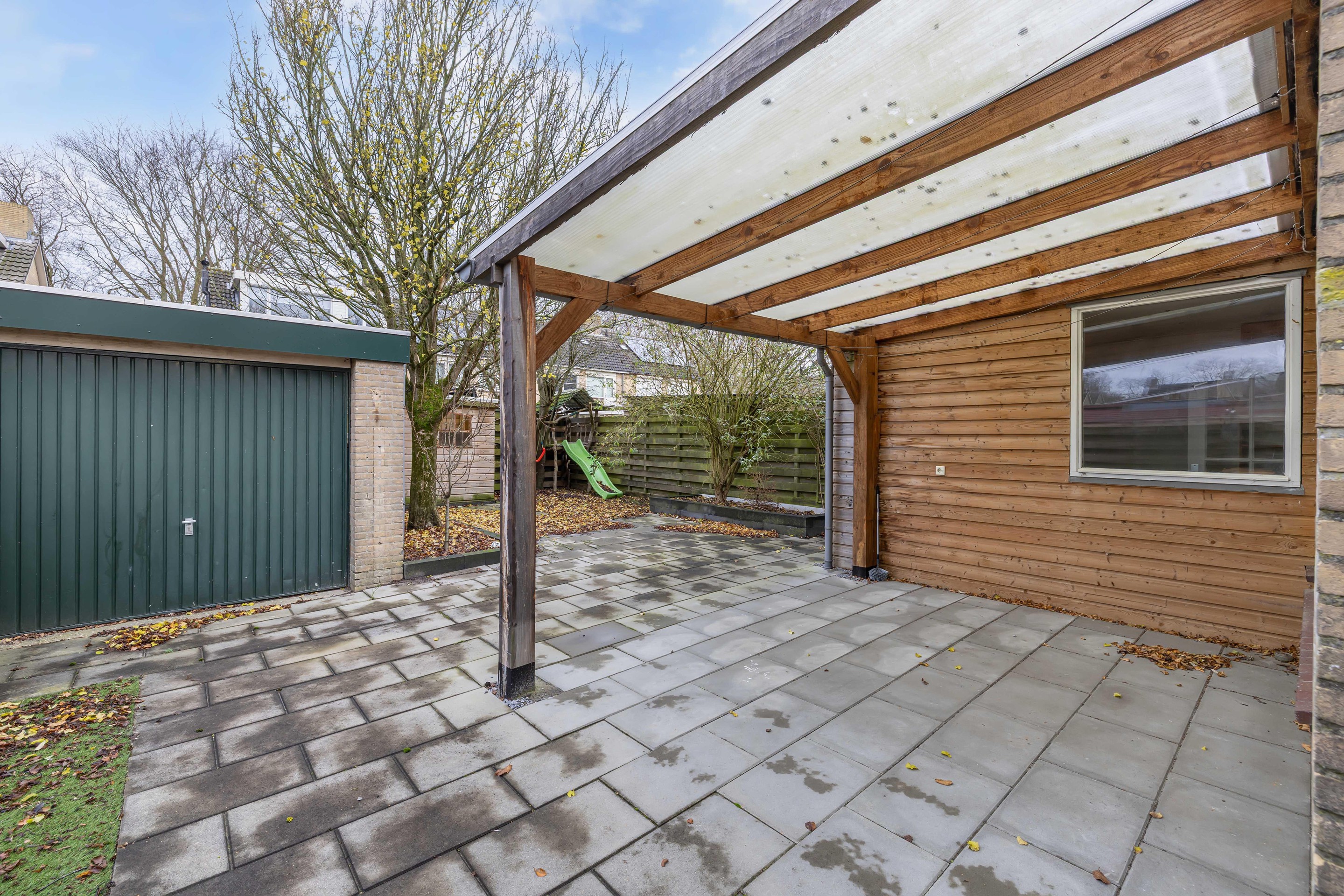 De achtertuin op het noordwesten beschikt over een overkapping, vrijstaande stenen garage, achterom en een apart fietsenhok. Dankzij de oprit aan de zijkant van het huis is er altijd een parkeerplek voor uw auto. De ligging is ideaal voor gezinnen. De straat is ruim en breed, er is een speelplein voor de deur en de supermarkt is op korte afstand.