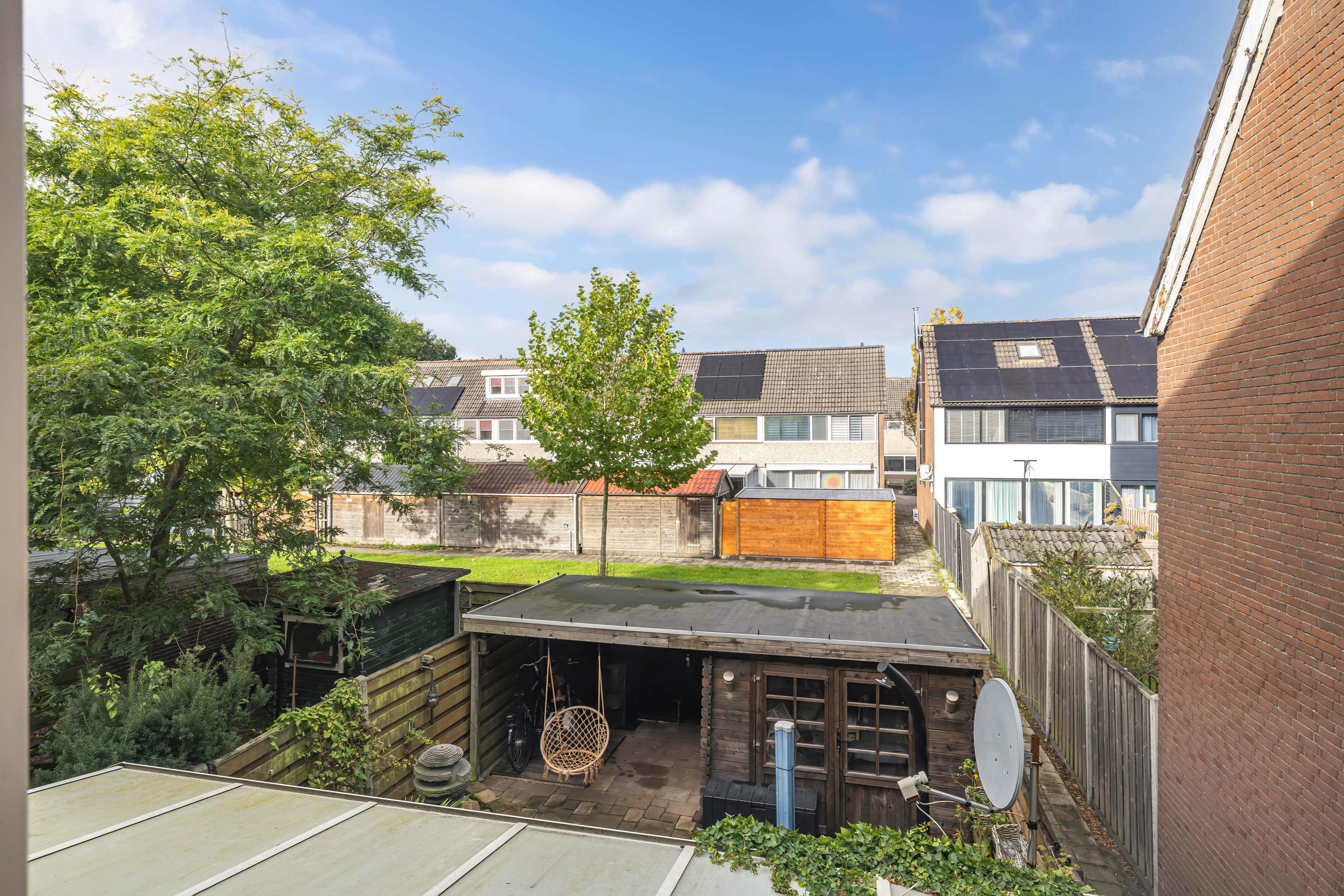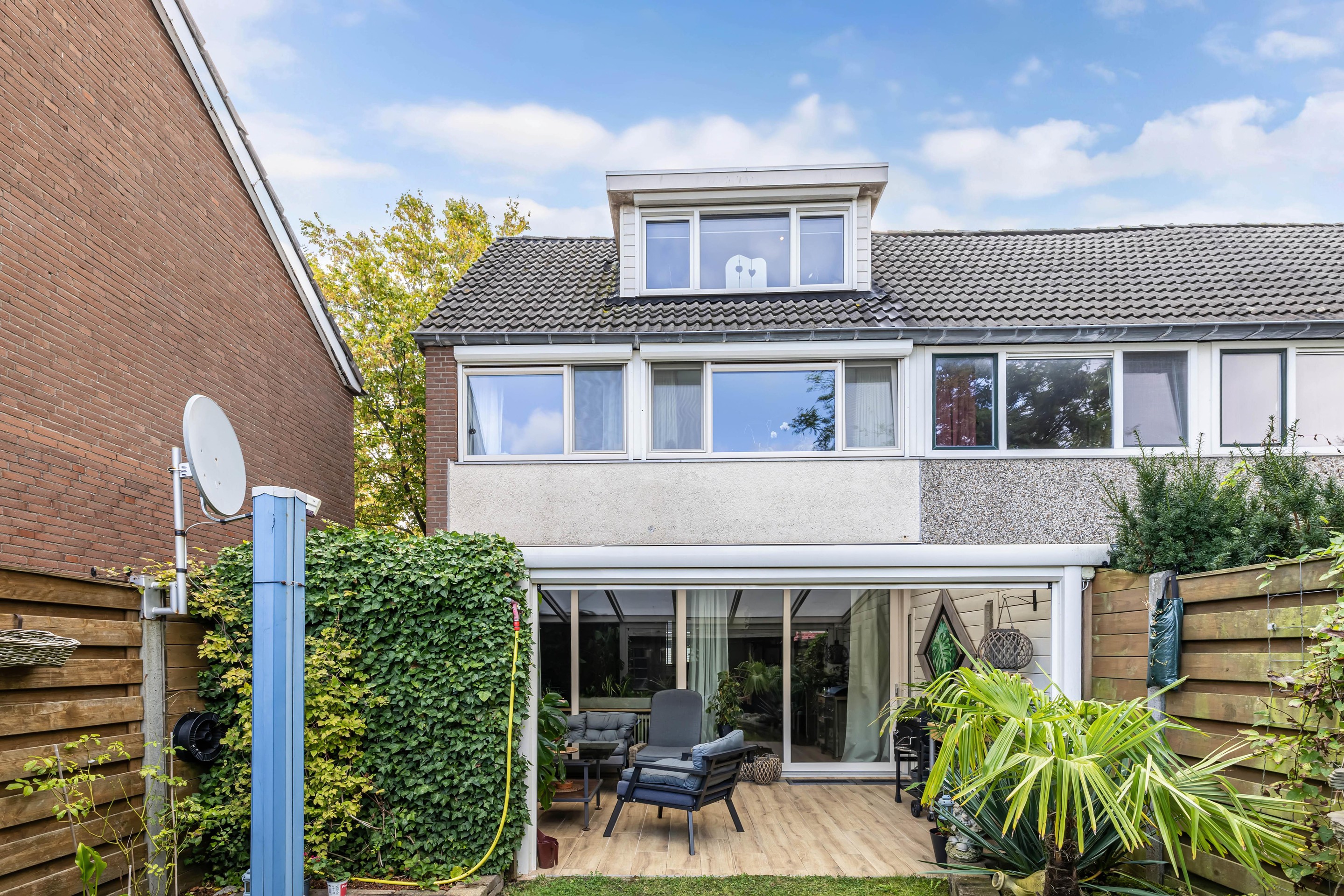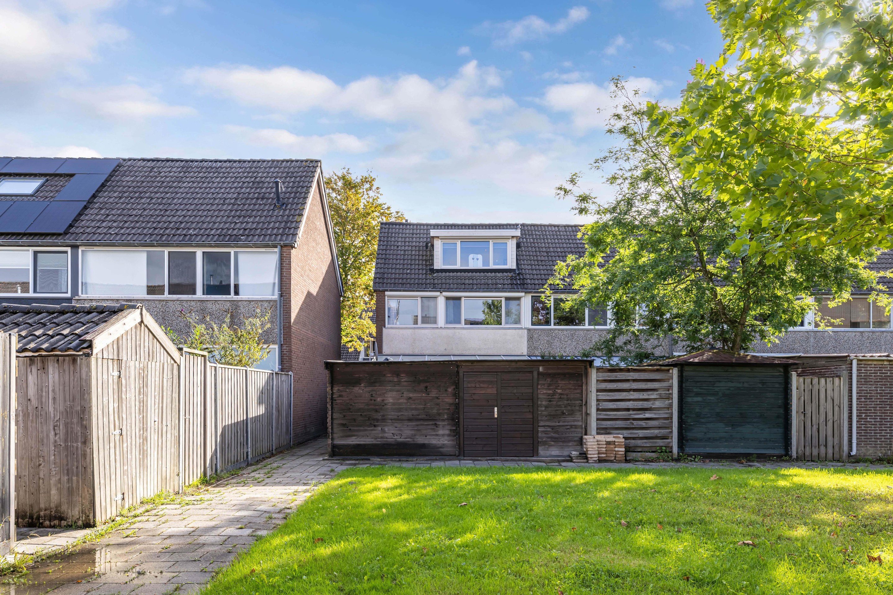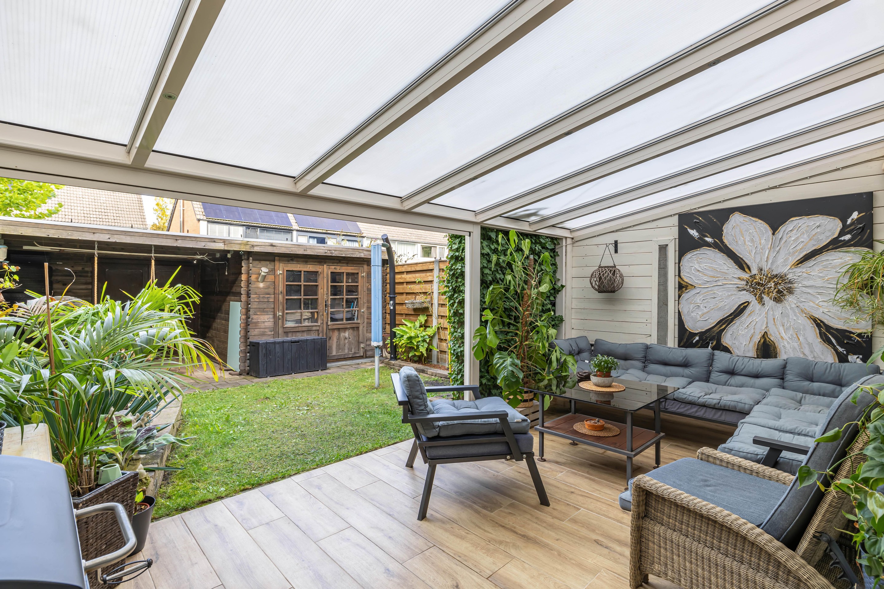 Via de schuifdeur bereik de je nette achtertuin op het westen. Hier is een luxe overkapping aanwezig waar je het grootste deel van het jaar heerlijk kunt zitten, ook is er een houten berging aanwezig. Aan de voorzijde is een kleine tuin op het oosten. Hier kun je in de ochtendzon genieten van een kopje koffie. De buurt is erg kindvriendelijk. Er zijn veel speeltuinen in de buurt.