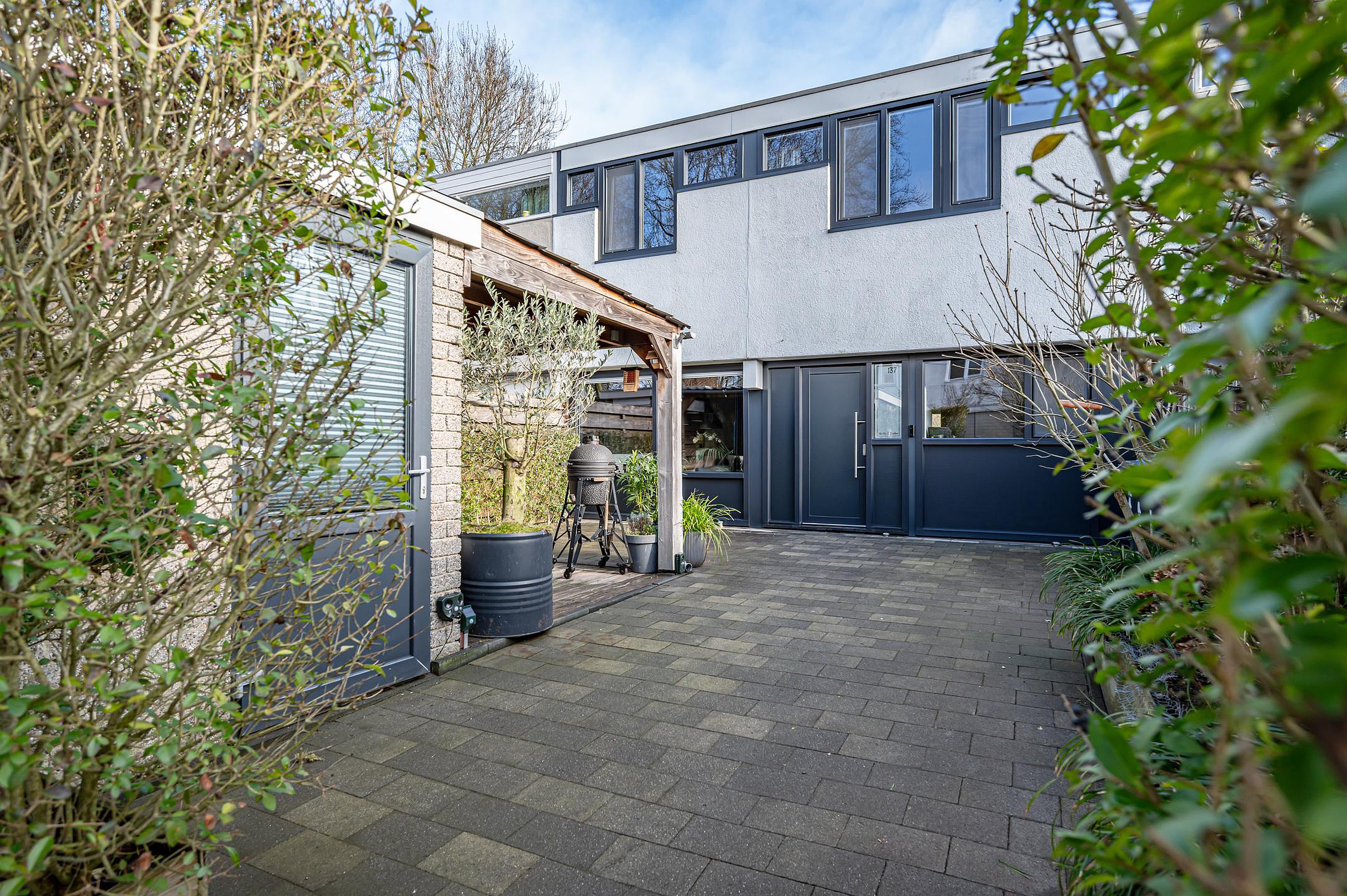 Aan de achterzijde geniet je van vrij uitzicht over een groenstrook, terwijl de voortuin is voorzien van een ruime fietsenberging en een sfeervolle houten overkapping met vlonderterras. De woning is volledig voorzien van kunststof kozijnen en deuren met HR++ beglazing (2021) en is daardoor comfortabel én onderhoudsarm.