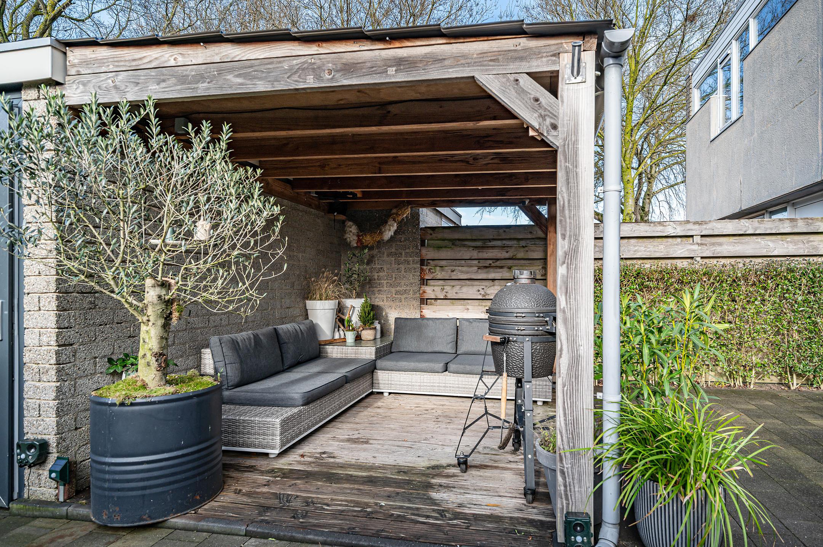 De woning beschikt over een verzorgde voortuin en een ruime achtertuin met terras, kunstgazon en beplanting. Dankzij de ligging in een autovrij hofje woon je hier heerlijk rustig, terwijl er voldoende parkeergelegenheid aanwezig is in de directe omgeving. In de voortuin bevindt zich tevens een houten overkapping met vlonderterras.