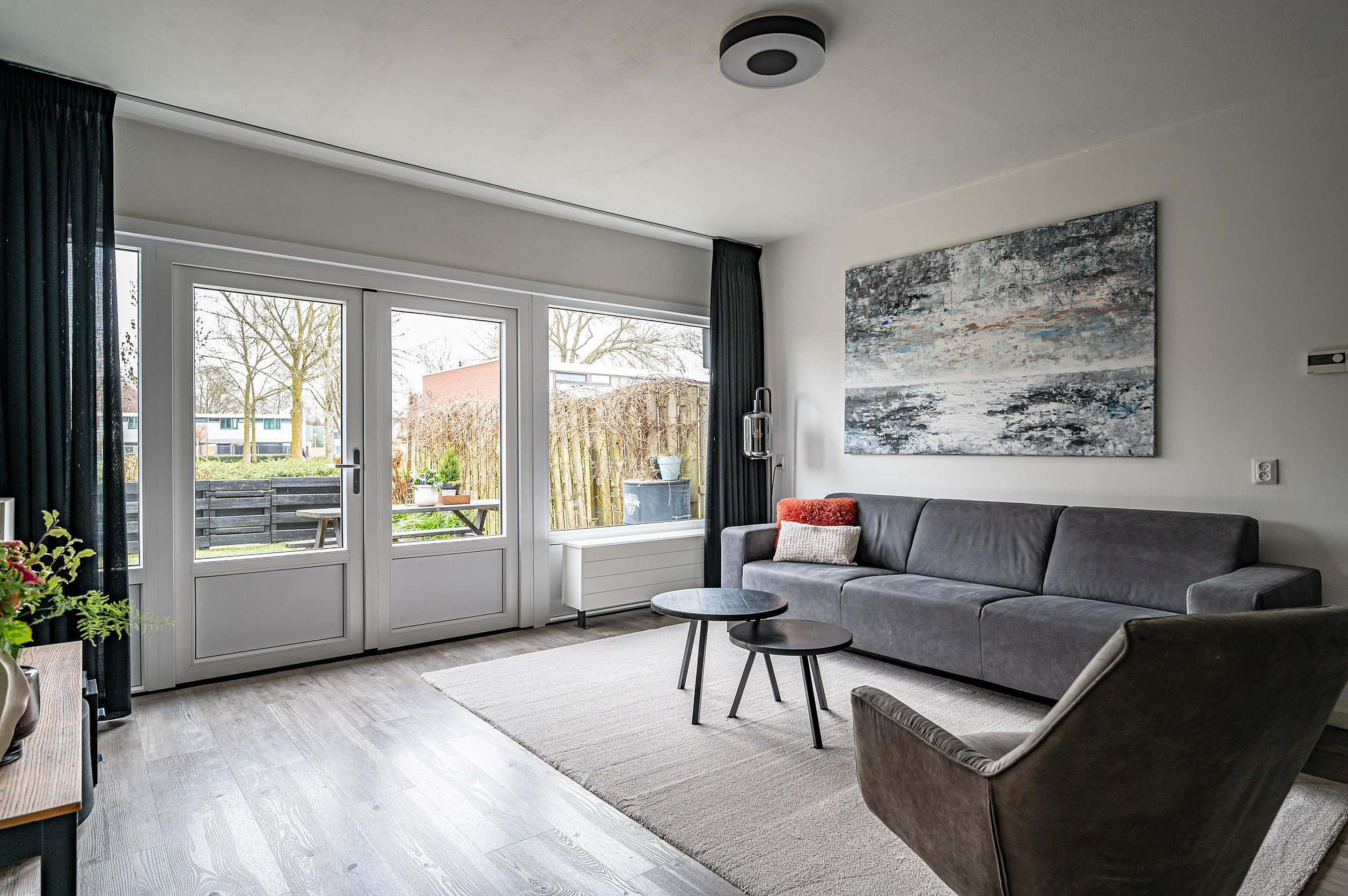 - Lichte woonkamer met vrij uitzicht over groen en speeltuintje