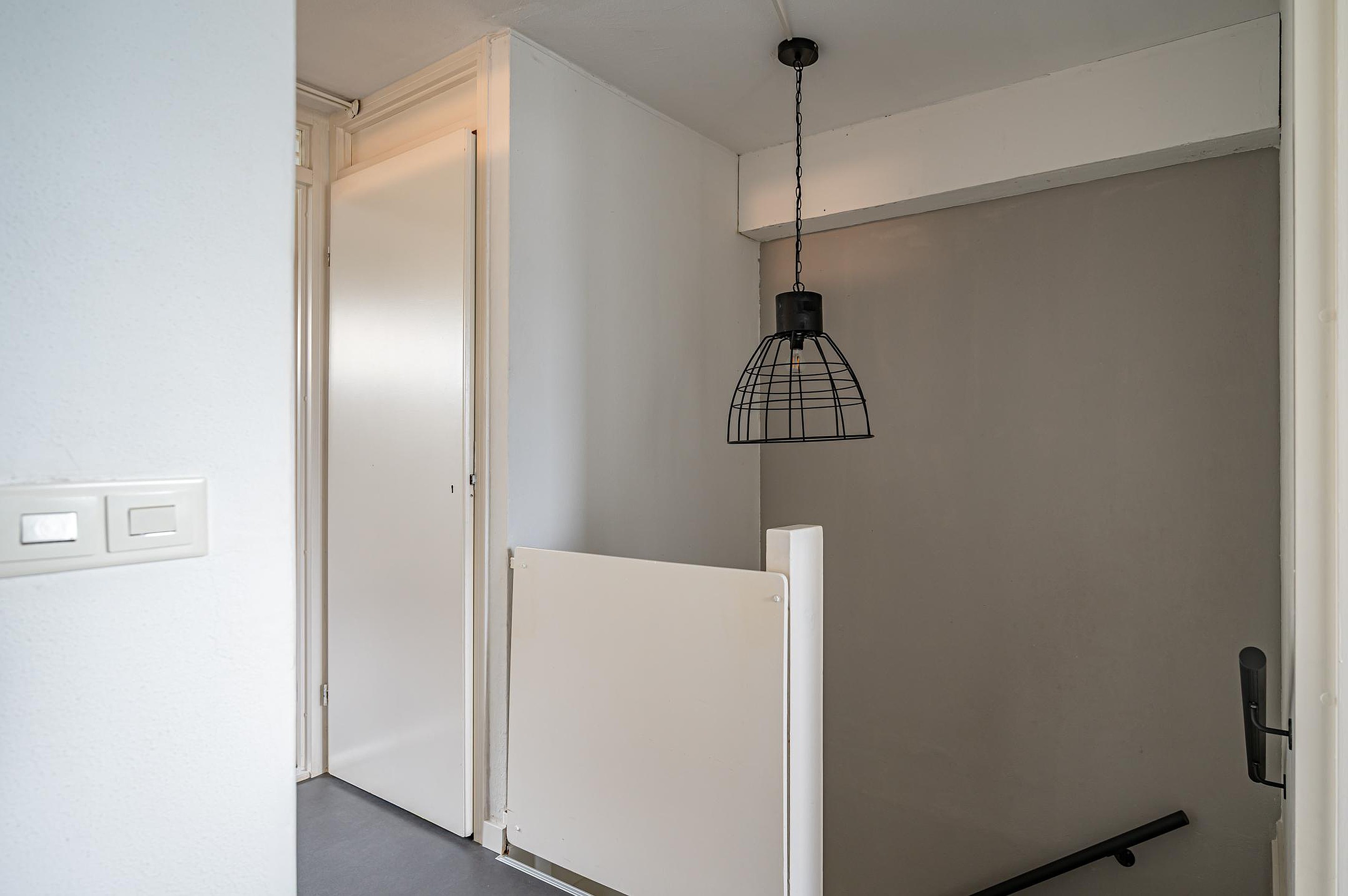 Overloop met toegang tot vier slaapkamers. Eén kamer is momenteel in gebruik als waskamer. De hoofdslaapkamer beschikt over op maat gemaakte inbouwkasten. De lichte, deels betegelde badkamer is voorzien van een ligbad/douchecombinatie, wastafel en tweede toilet.