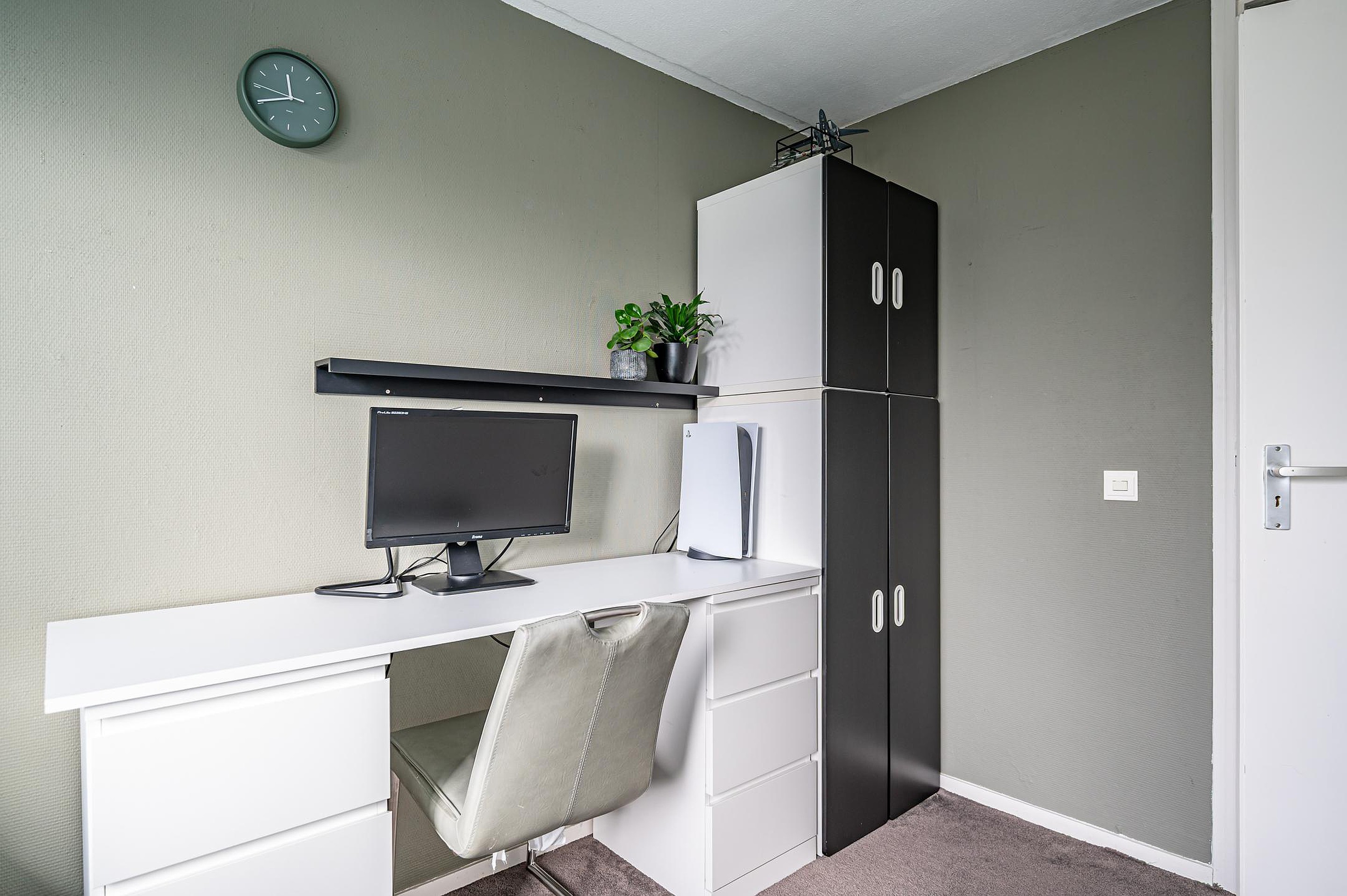 Daarnaast is er een aparte kast met cv-ketel (Nefit, 2009) en witgoedaansluitingen, waardoor de waskamer eenvoudig weer als slaapkamer in gebruik kan worden genomen.