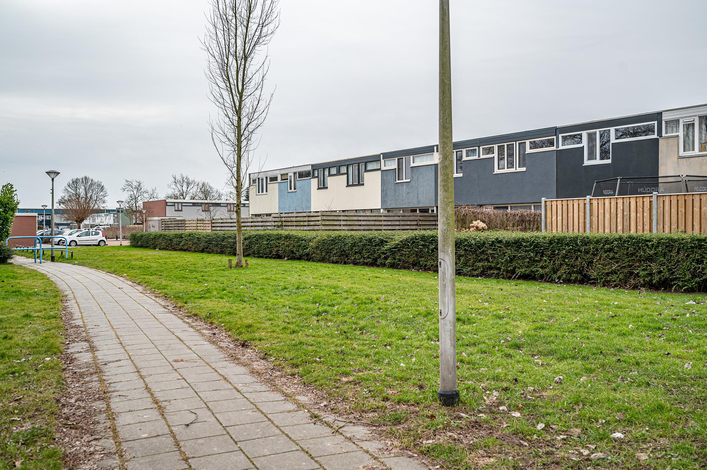 In een rustige, kindvriendelijke woonwijk staat deze verzorgde tussenwoning uit 1972, gelegen in een autovrij hofje met veel groen en speelgelegenheden op loopafstand. De woning beschikt over een praktische indeling met vier slaapkamers, een lichte woonkamer met openslaande tuindeuren en een aparte eetkamer aan de voorzijde.
