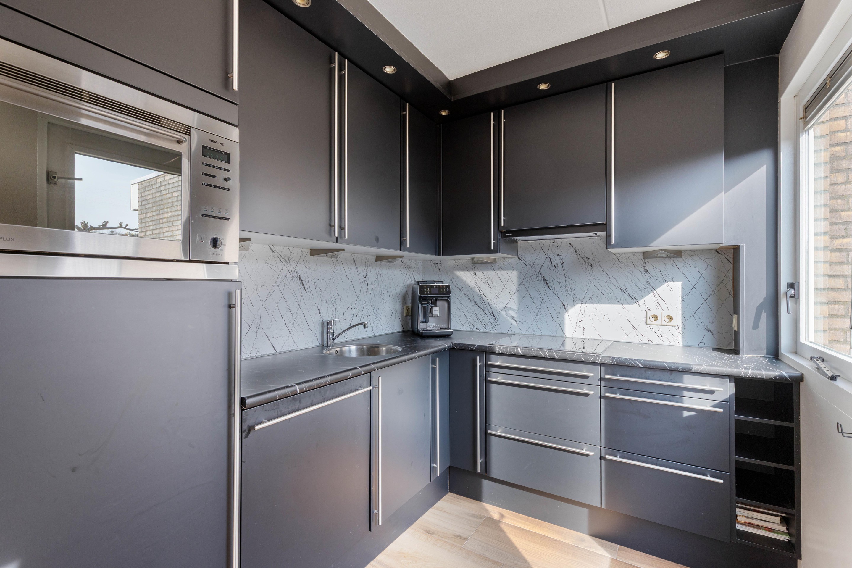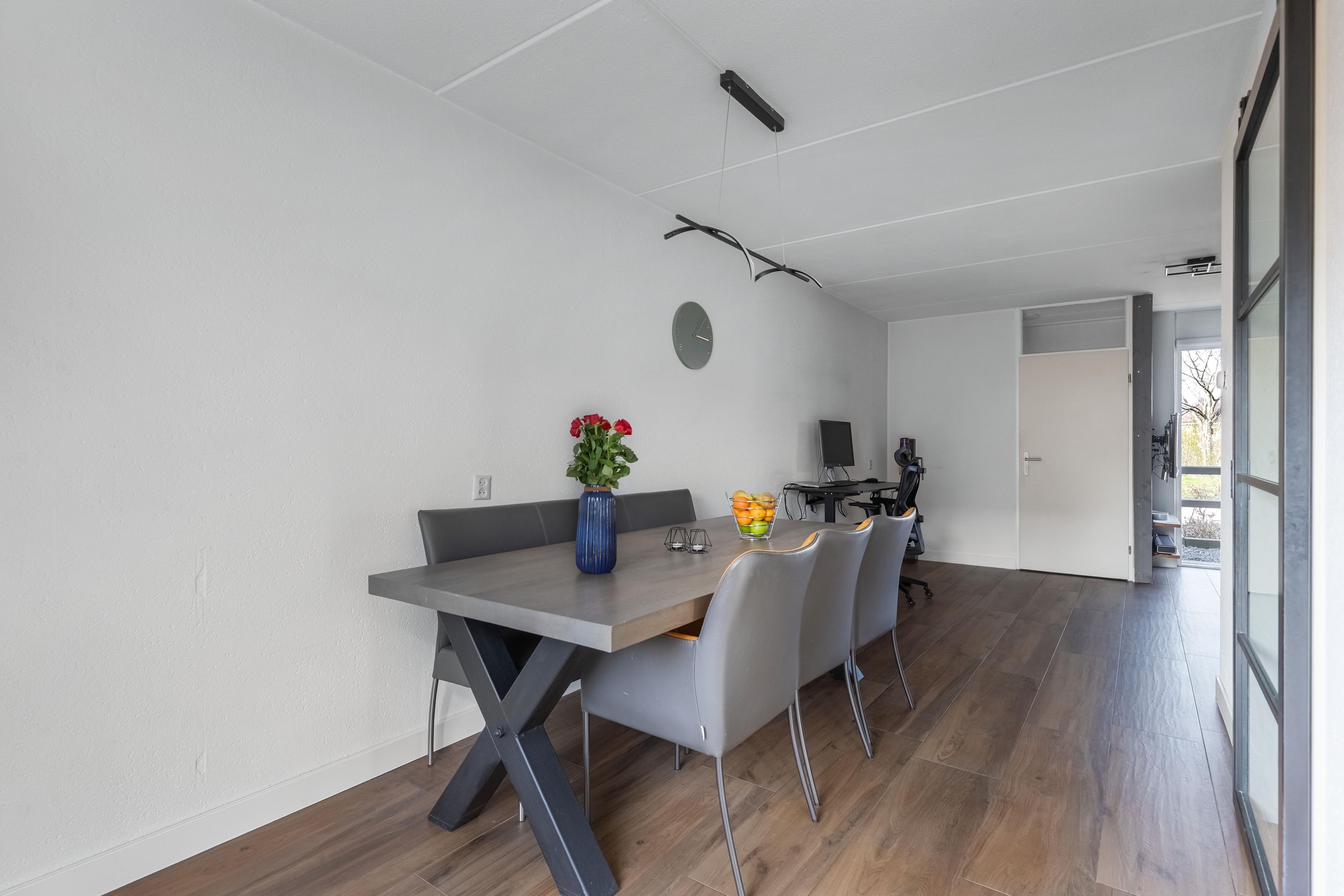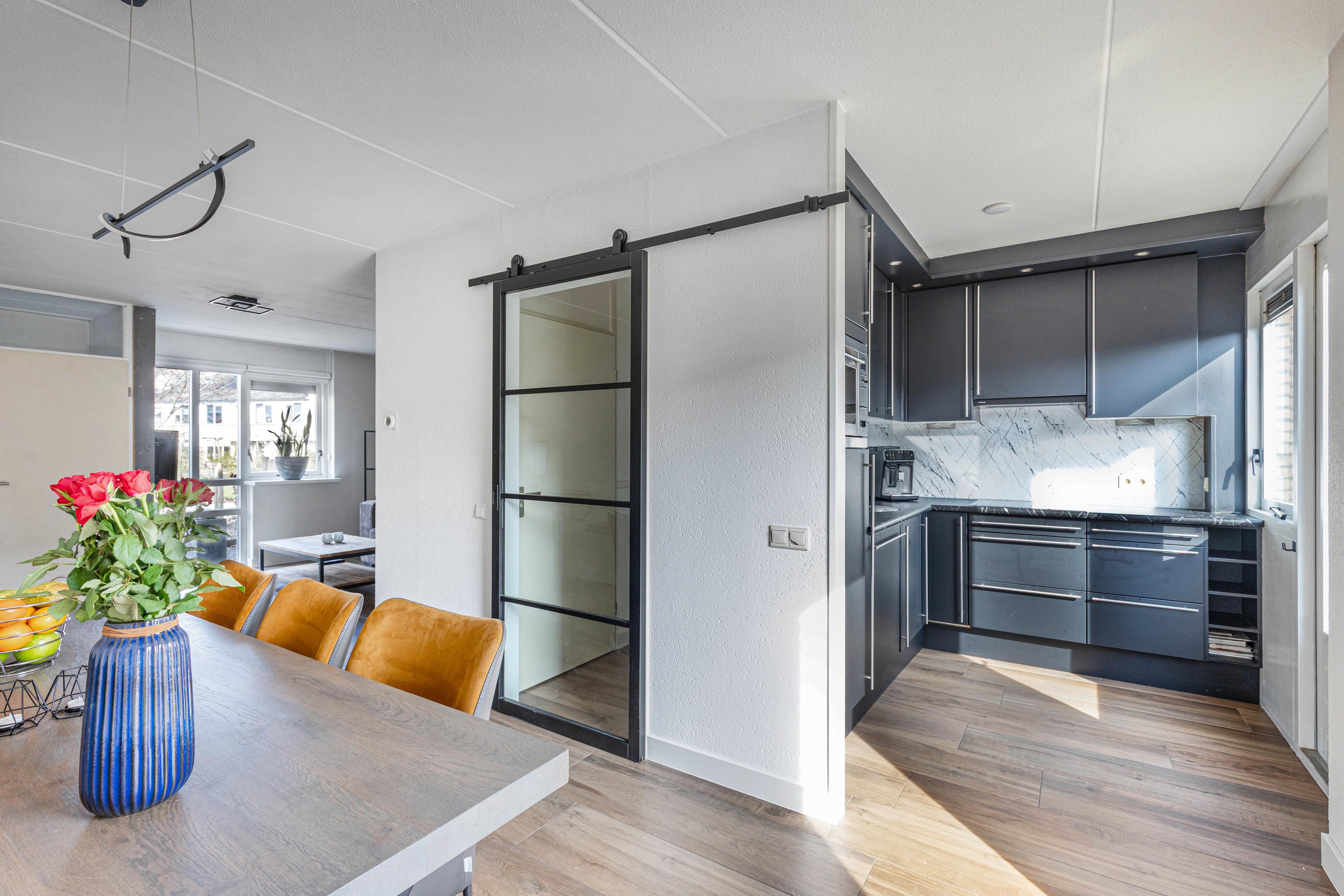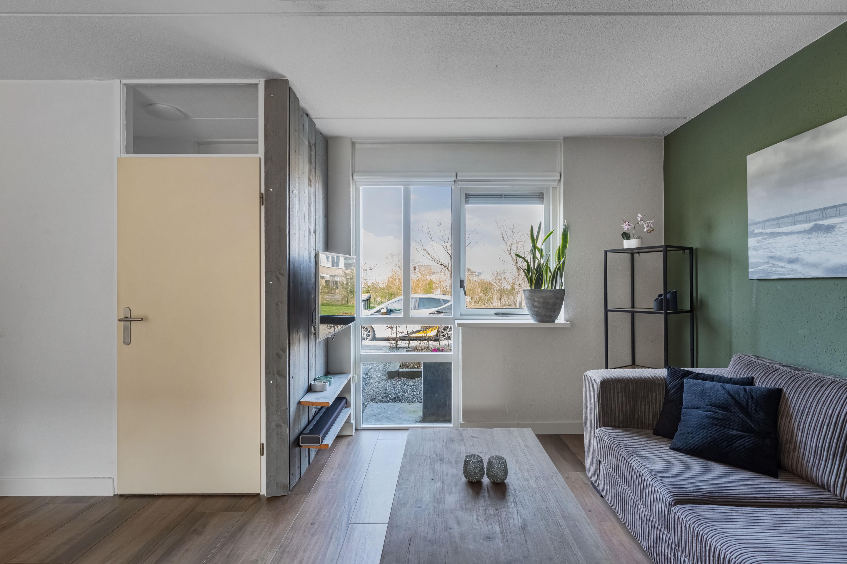 U komt binnen via de entree, vanuit daar heeft u toegang tot de doorzon woonkamer. De woonkamer is licht vanwege de mooie ramen die tot aan de vloer reiken. Er is voldoende plaats voor een eethoek. De halfopen keuken is uitgerust met diverse inbouwapparatuur, zoals een combi-oven, vaatwasser en koelkast. Onder de plavuizen in de woonkamer, keuken en hal ligt vloerverwarming.