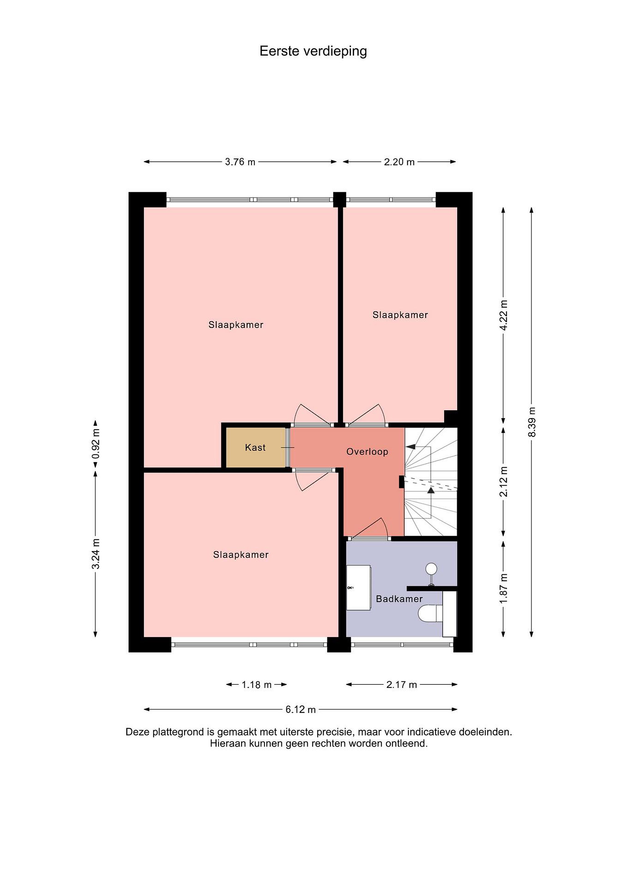Op de eerste verdieping zijn drie ruime slaapkamers en een nette badkamer.